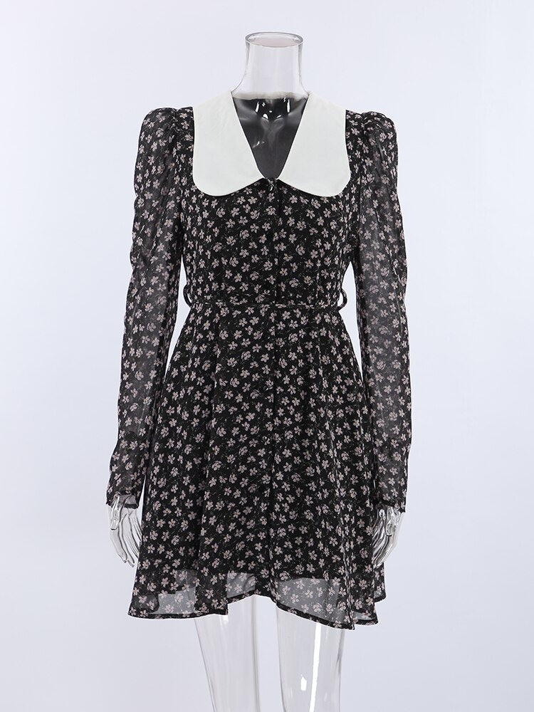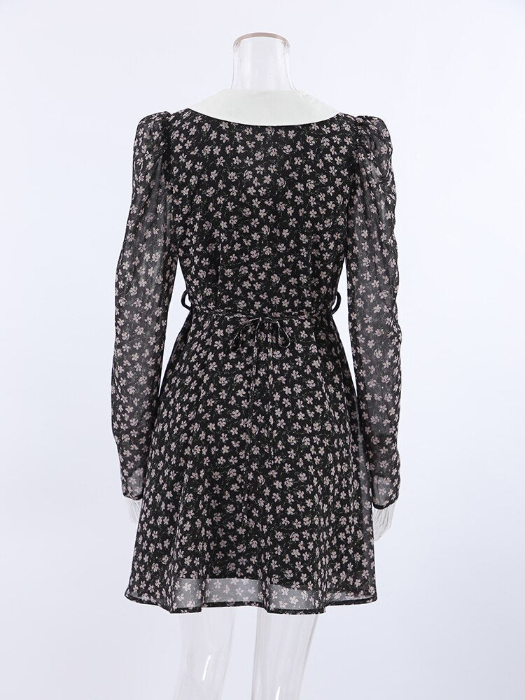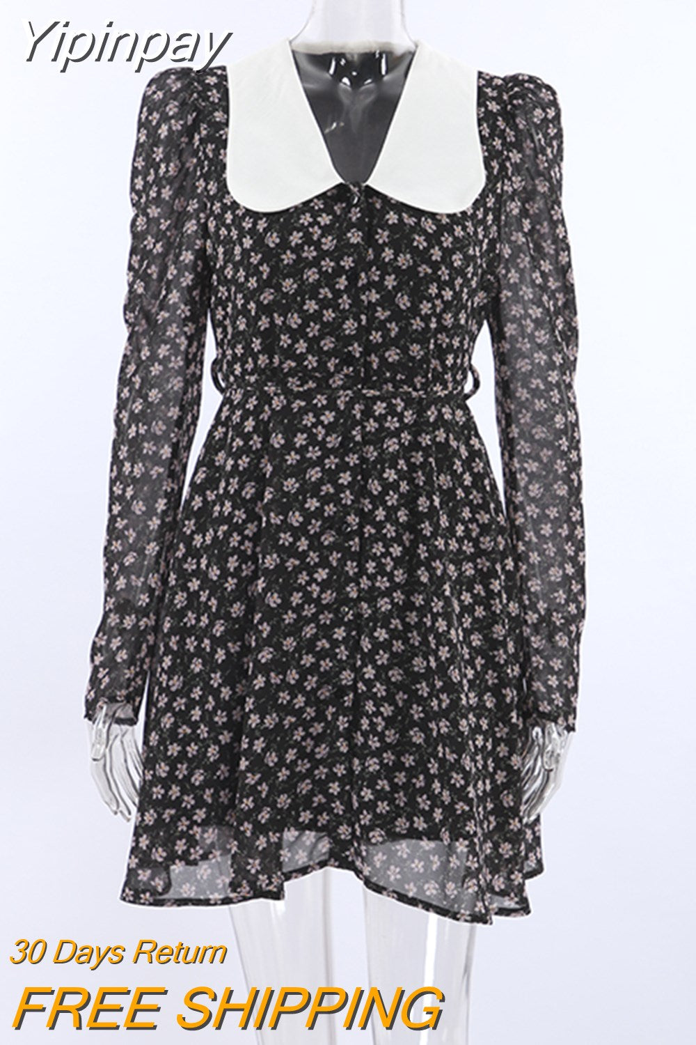 Yipinpay Elegant Patchwork Print Dress Puff Sleeve Chic Women A-Line Floral Dress Spring 2023 Office Lady Belt Button Dress