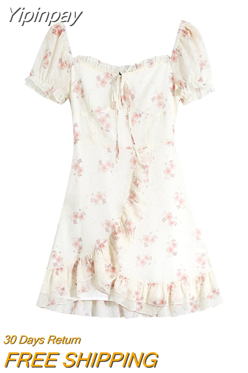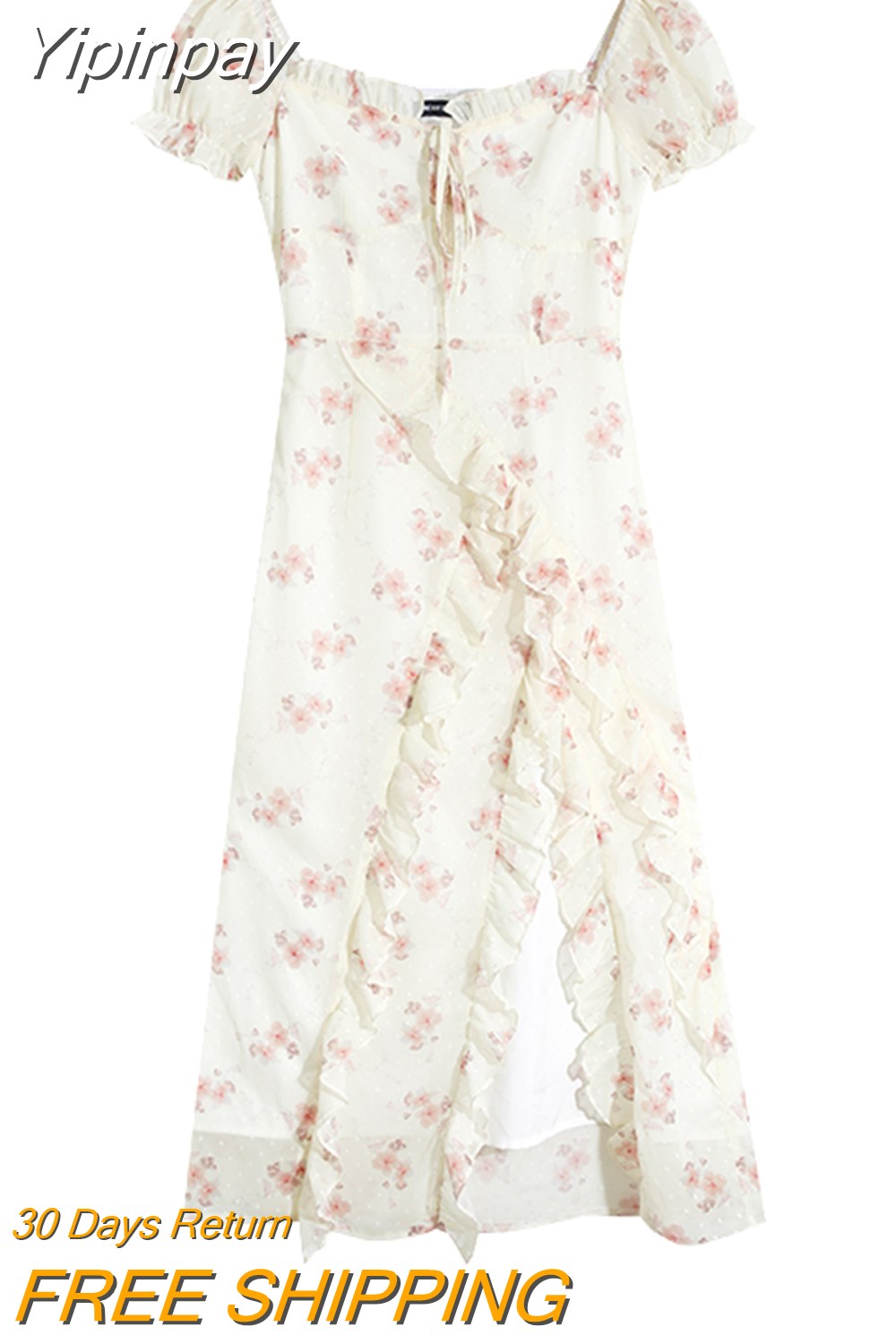 Yipinpay Elegant Short Sleeve Dress Woman Casual 2023 Summer Sexy Party One Piece Dress Korean Fashion Beach Vintage Midi Dress 0406
