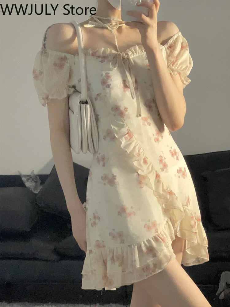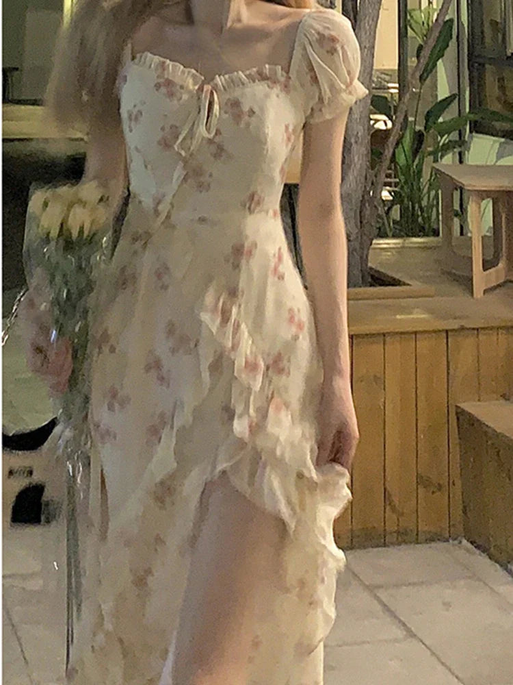 Yipinpay Elegant Short Sleeve Dress Woman Casual 2024 Summer Sexy Party One Piece Dress Korean Fashion Beach Vintage Midi Dress