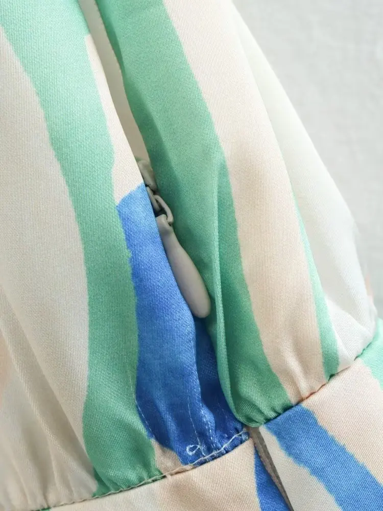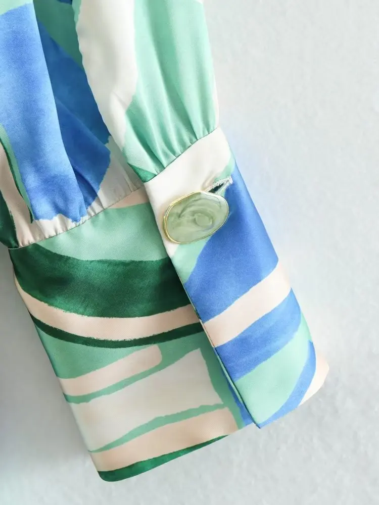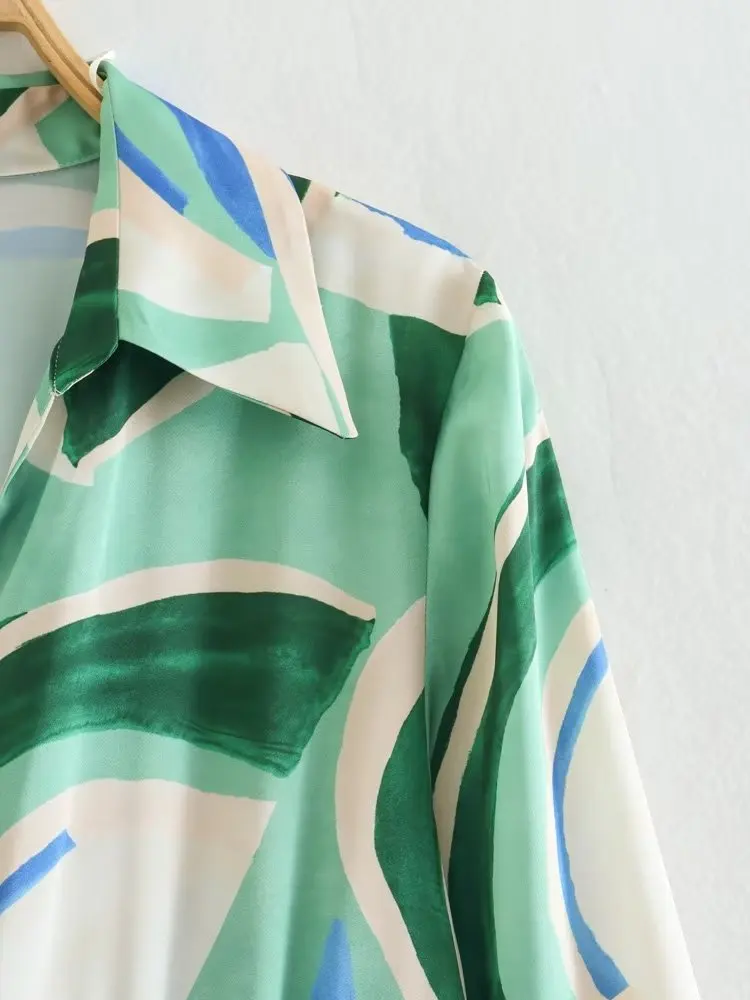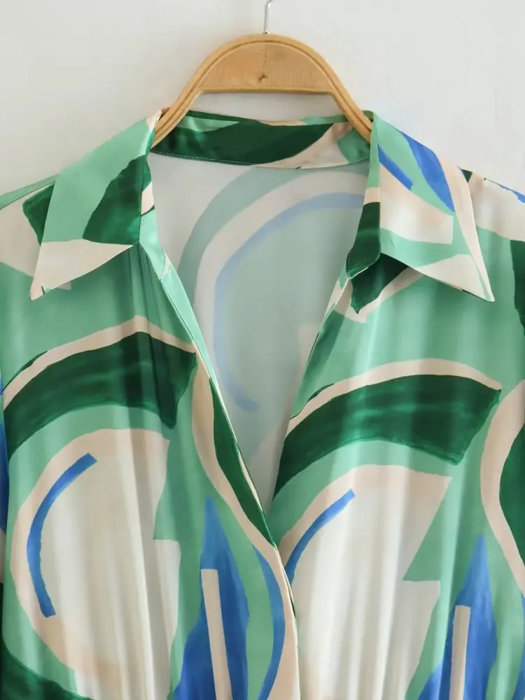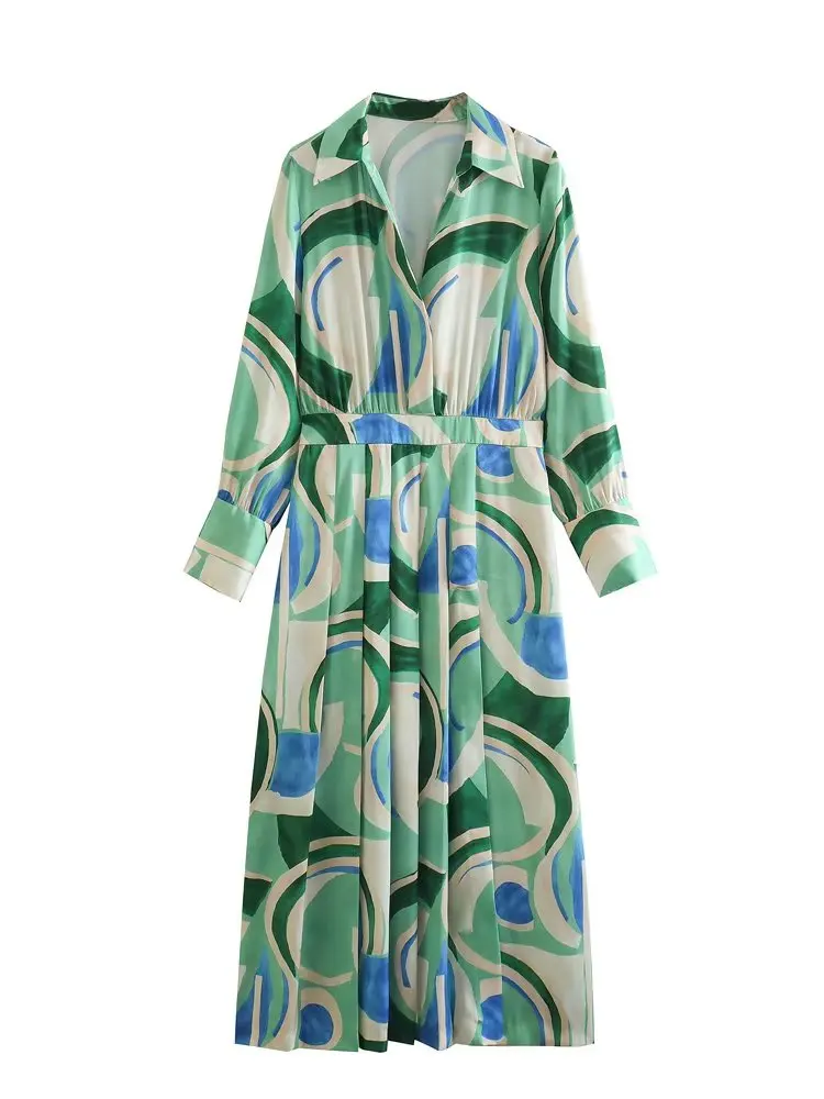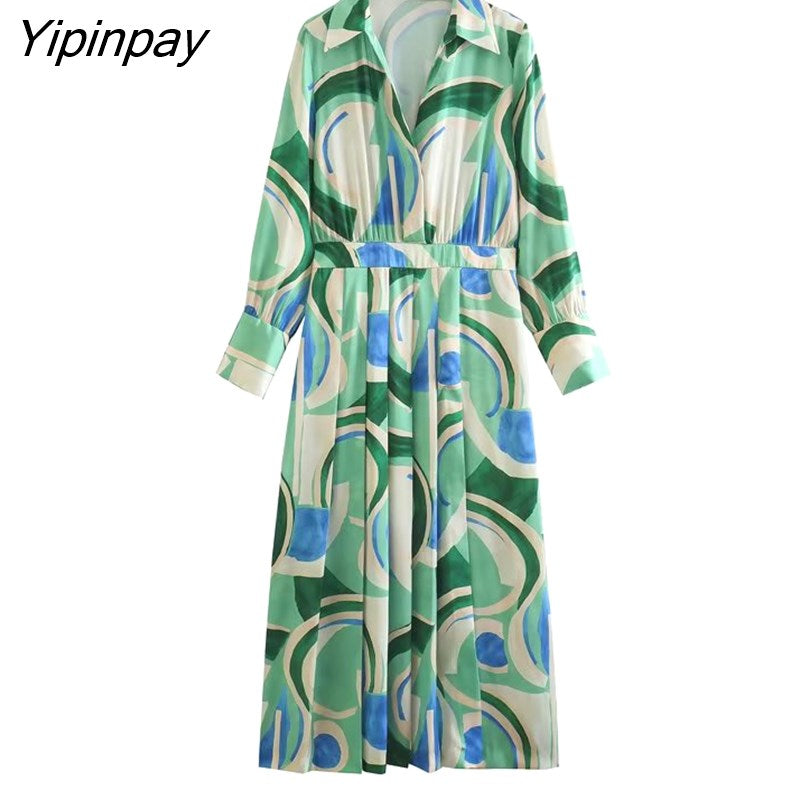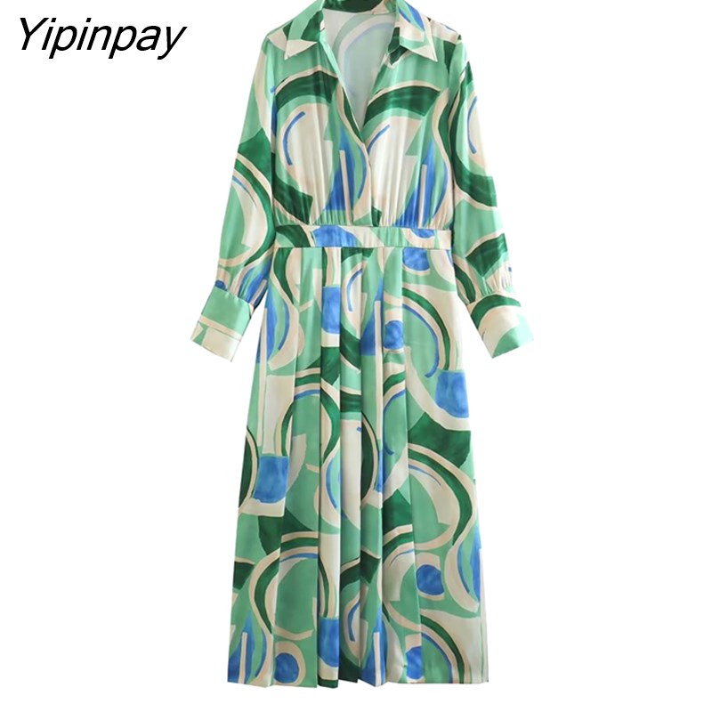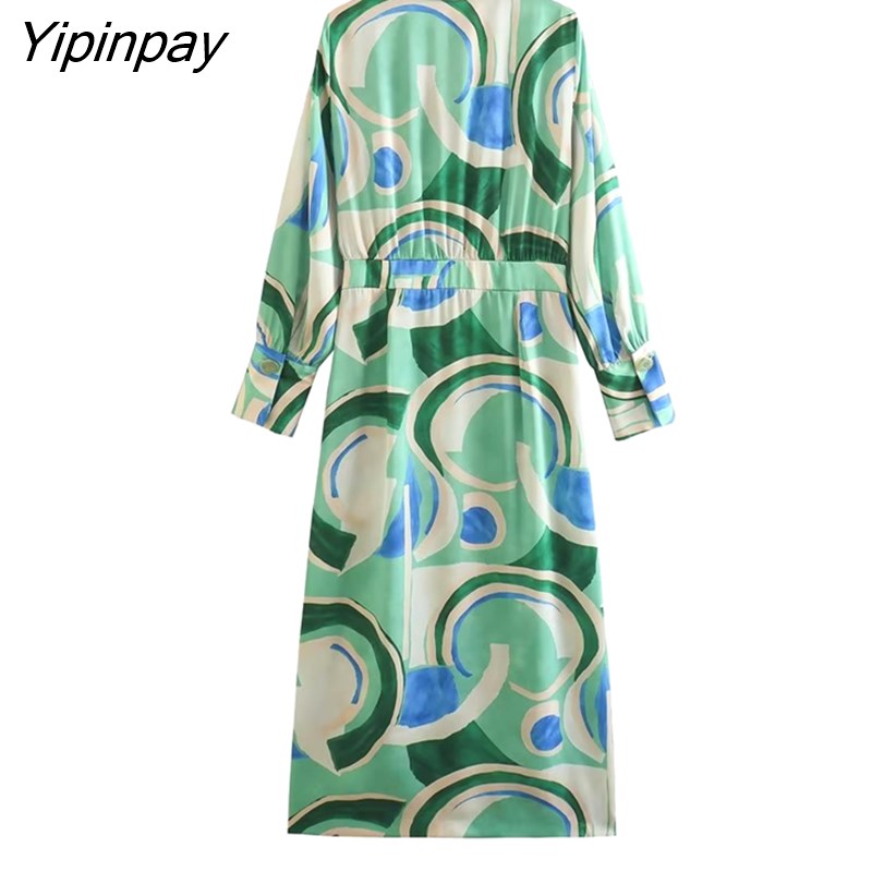 Yipinpay Elegant Summer Women Printed Mid-Calf Dresses 2023 Fashion Ladies Turn Down Collar Party Dress A-line Long Sleeve Vestidos