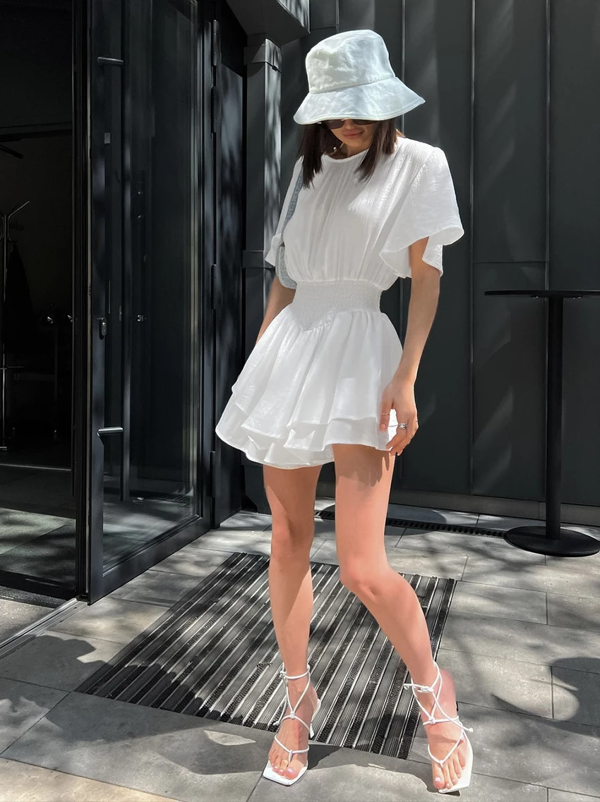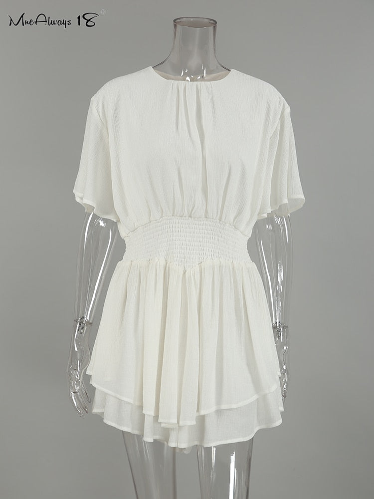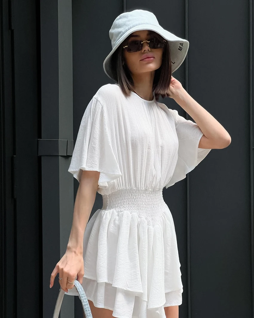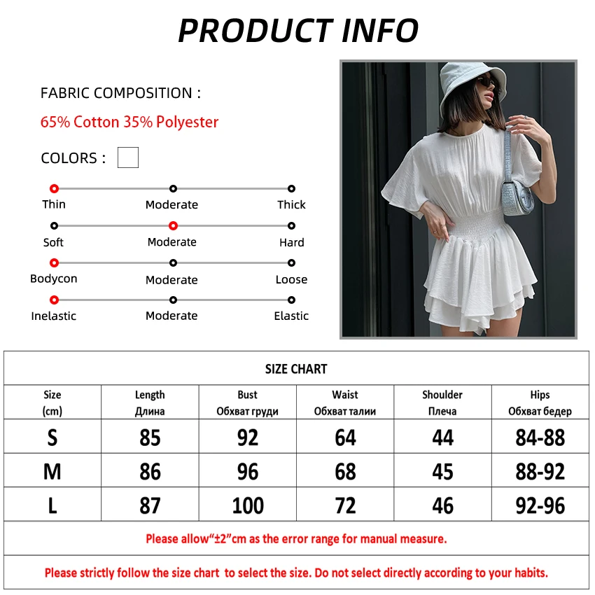 Yipinpay Elegant White Culottes Women Dress Flare Sleeve Soft Ruffled Shorts Dress Office Ladies Slim Crepe Mini Dress 2023