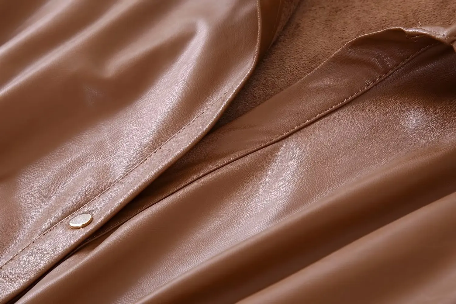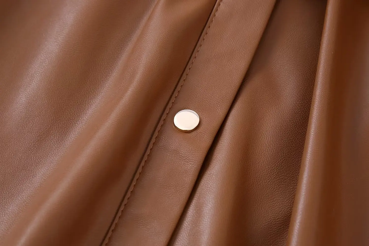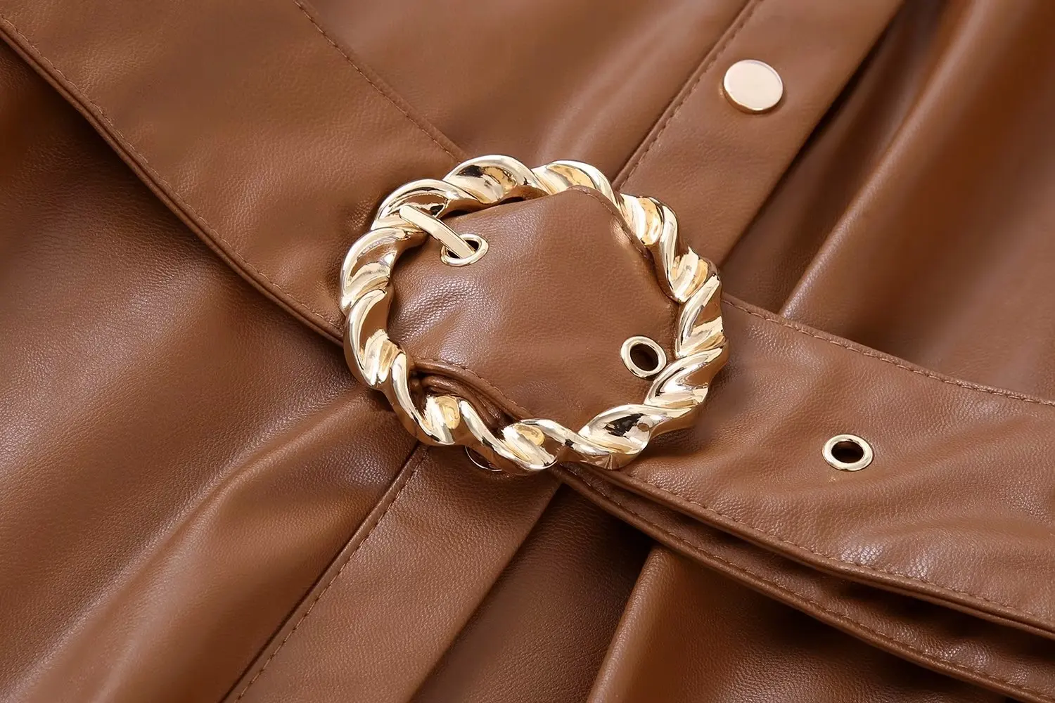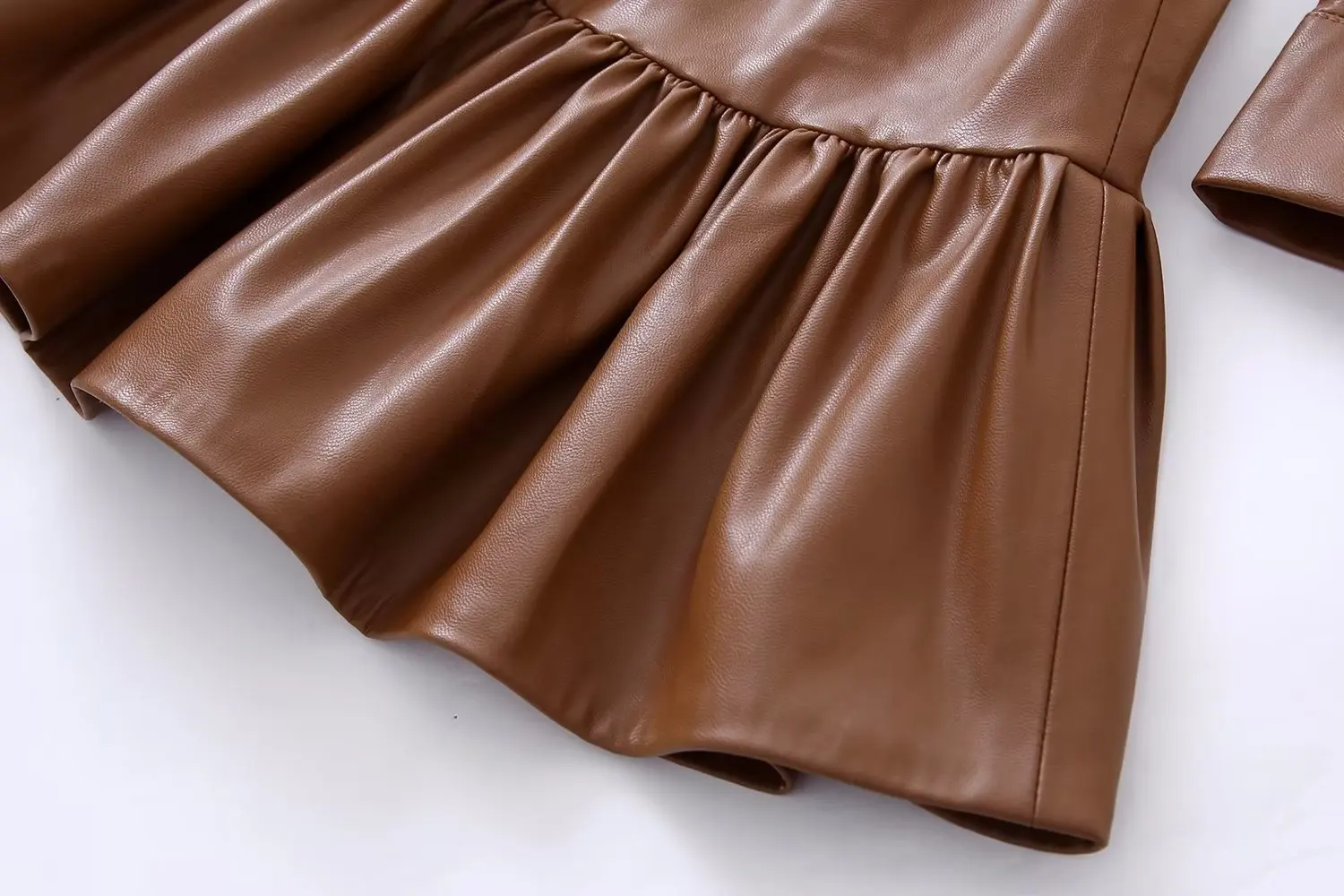 Yipinpay Elegant Women Faux Leather Mini Dresses With Belt Solid Turn Down Collar Dresses Fashion Vintage Long Sleeve Vestidos