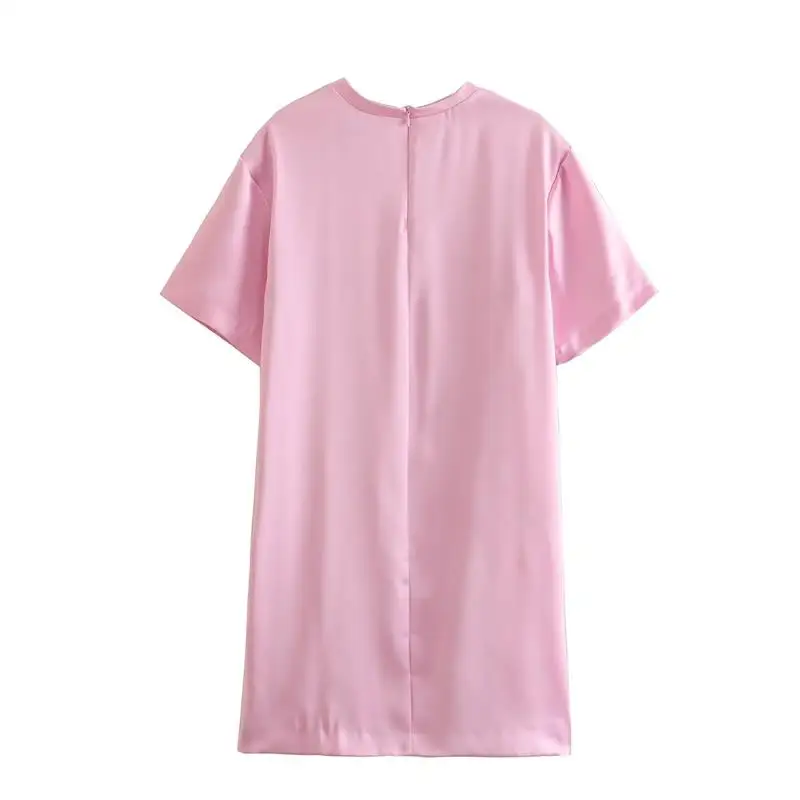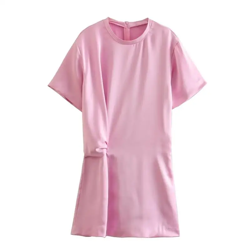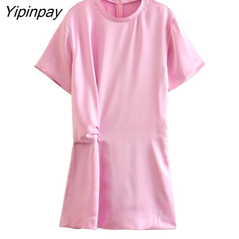 Yipinpay Elegant Women Silk Soft Dresses 2023 New Summer O-neck Sexy Mini Dresses Short Sleev Sheath Folds Vestidos