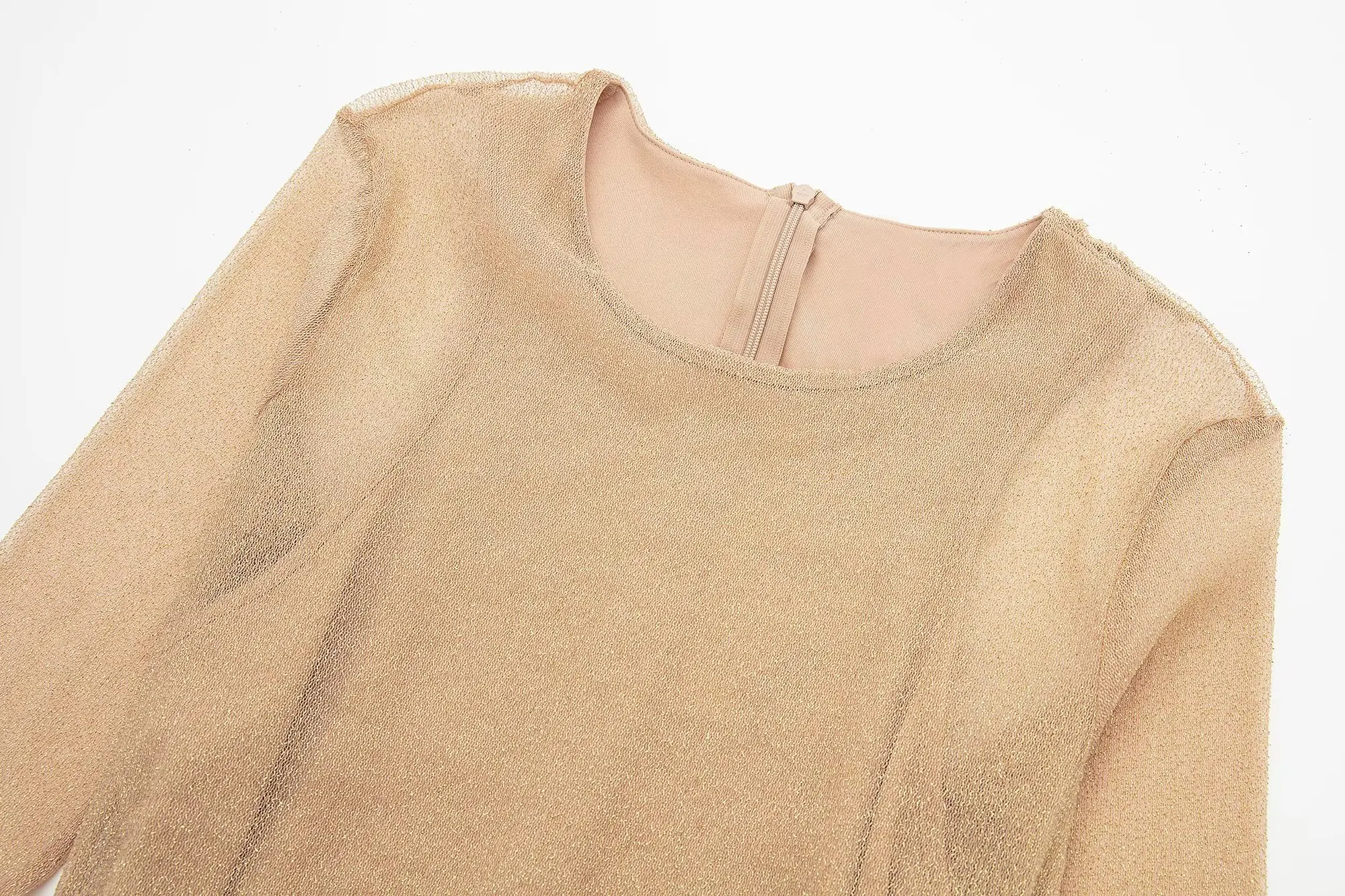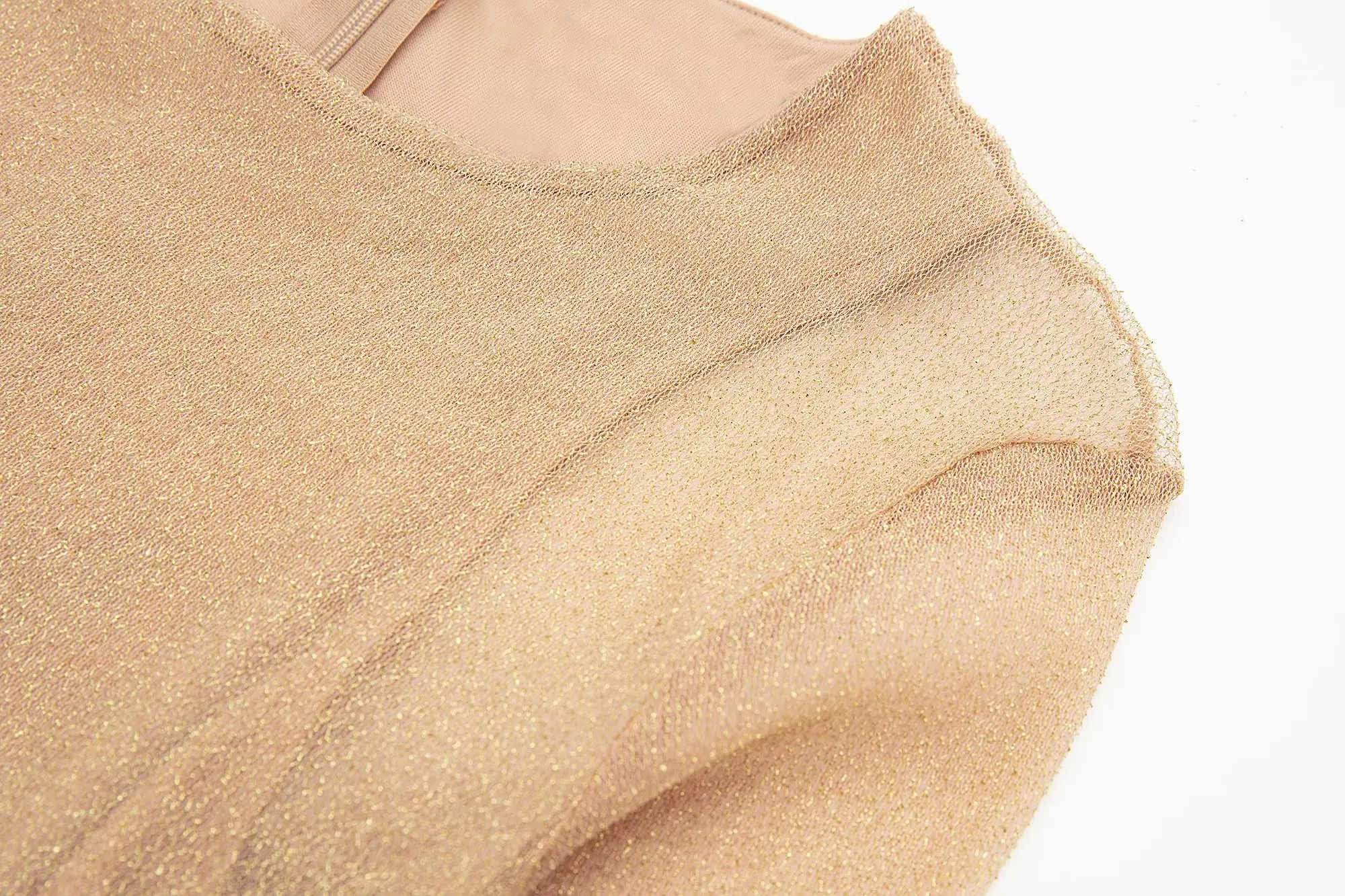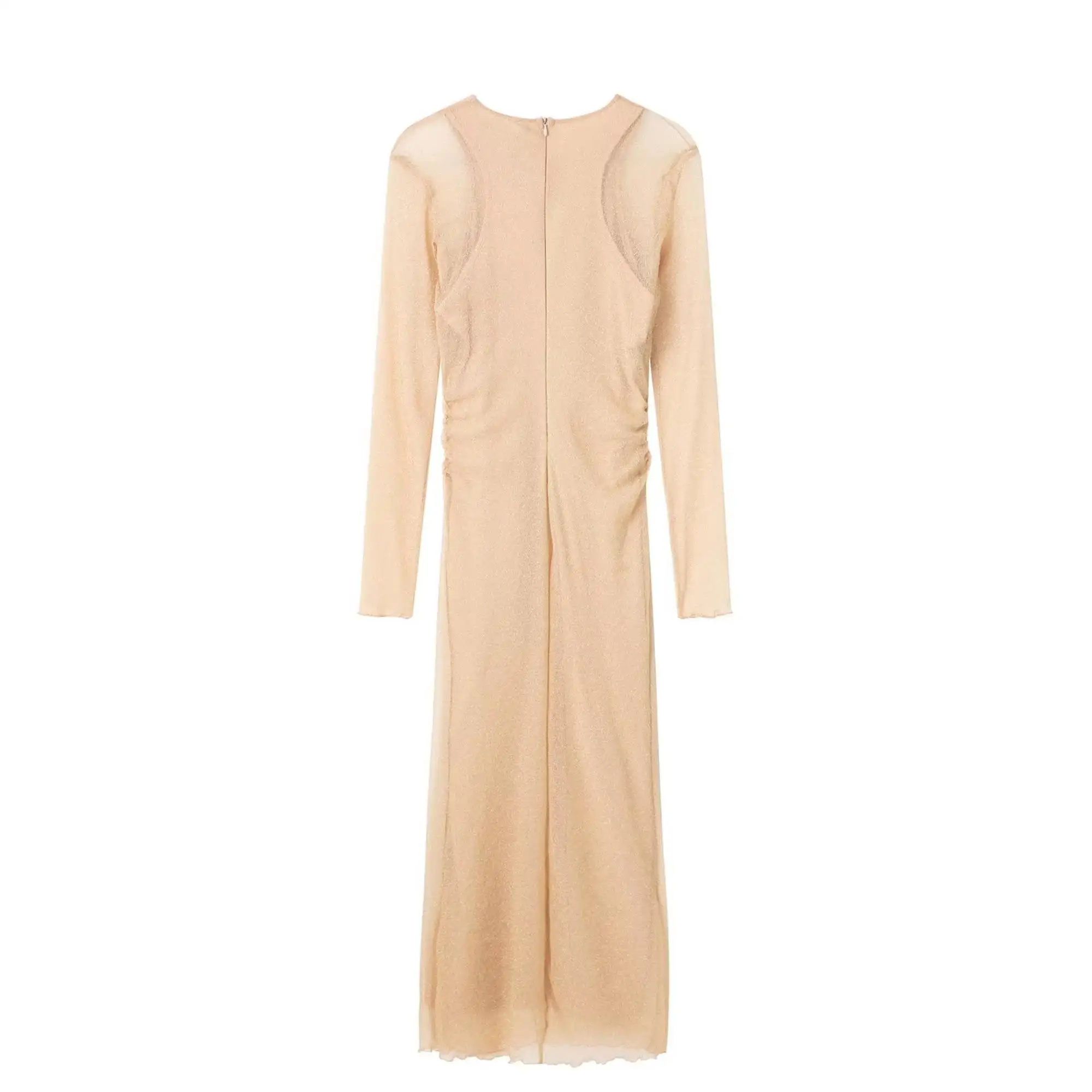 Yipinpay Elegant Women Solid Tulle Dresses Vintage Party Sheath Mid-Calf Dress Long Sleeve Vestidos 2023 Spring Autumn