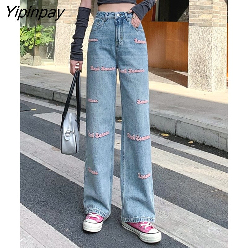 Yipinpay Embroidered High Street Loose Wide Leg Jeans Woman