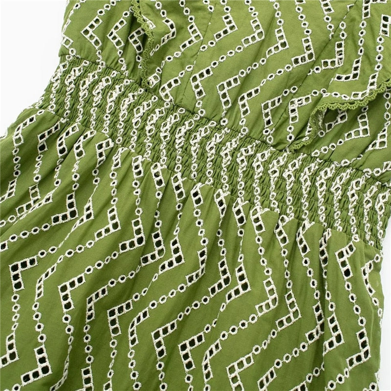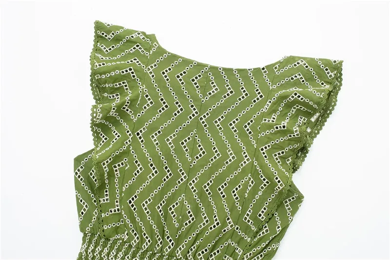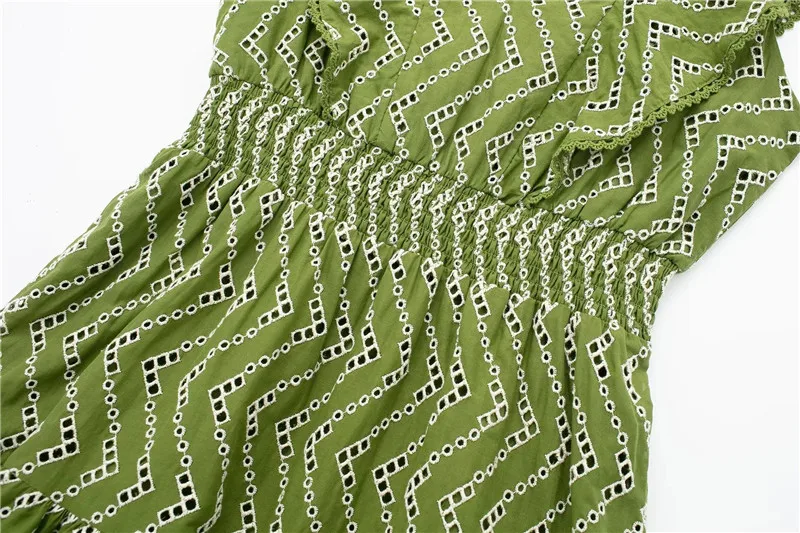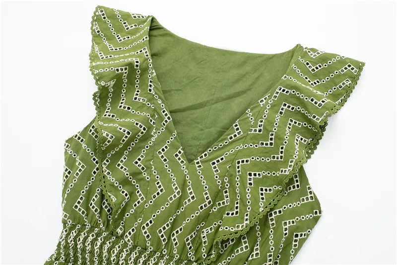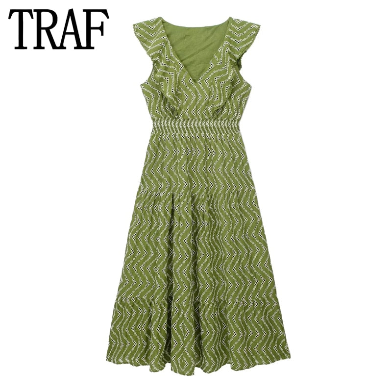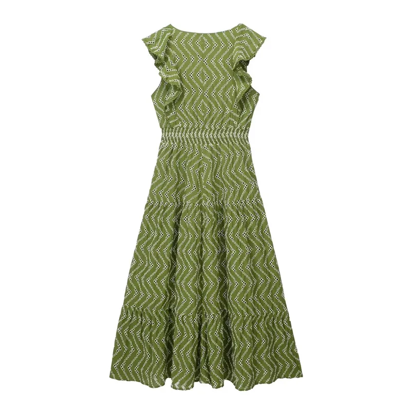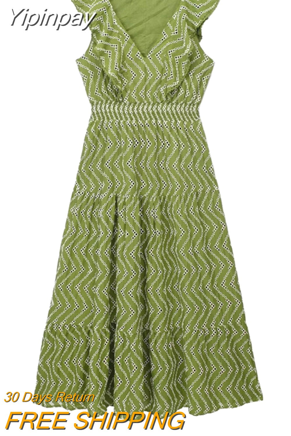 Yipinpay Embroidered Long Dress Women Green Ruffle Summer Woman Dress 2023 Cut Out Midi Dresses Sleeveless Elegant Women's Dresses