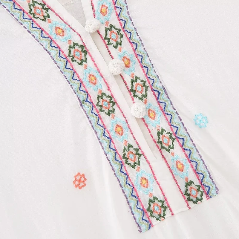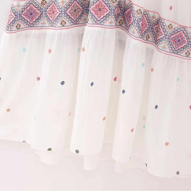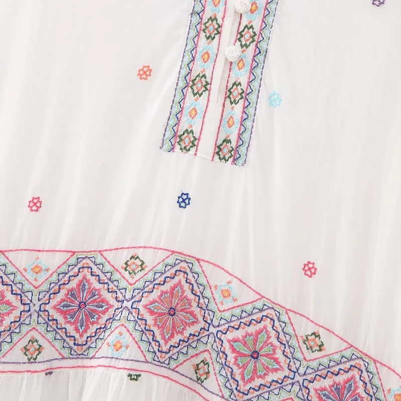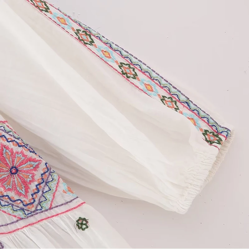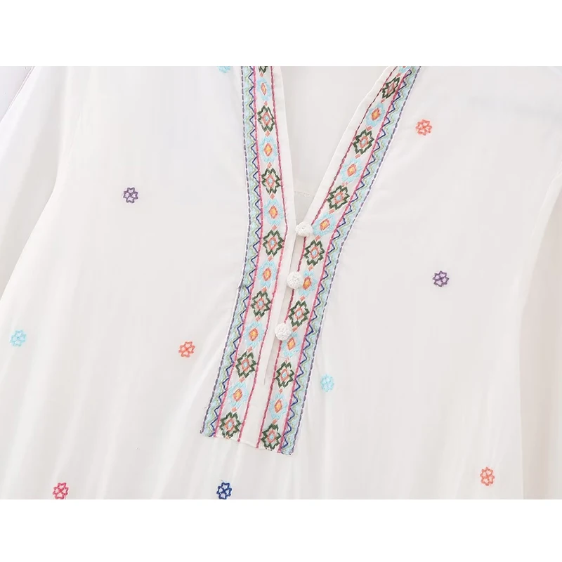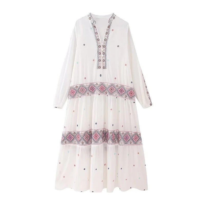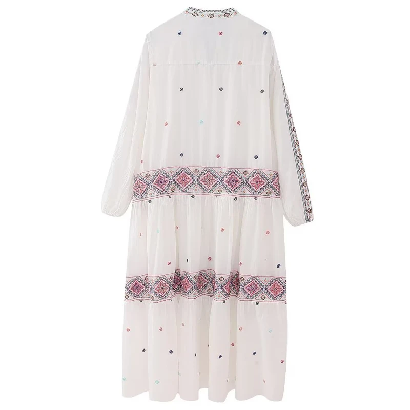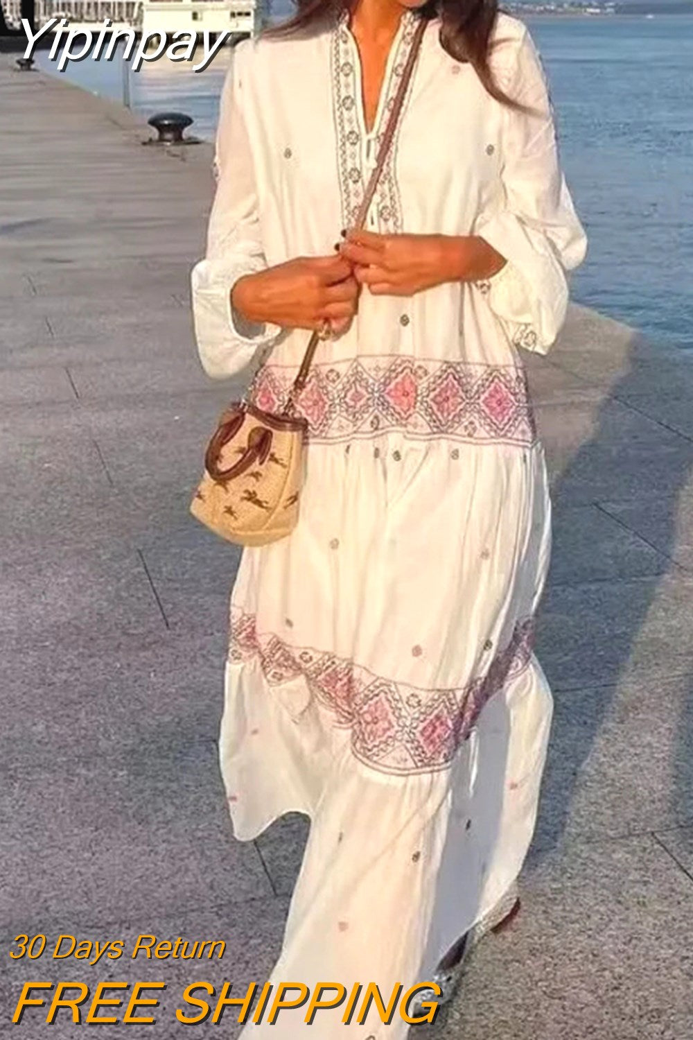 Yipinpay Embroidery Long Dress Women Summer Boho Loose Women's Dress 2023 Long Sleeve Beach Casual Dresses Ruched Elegant Dresses
