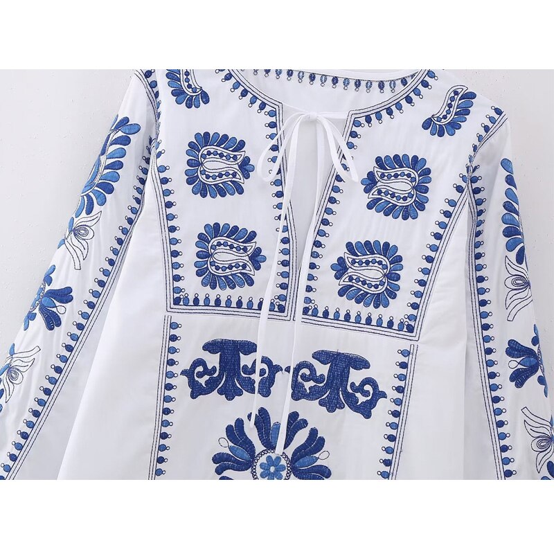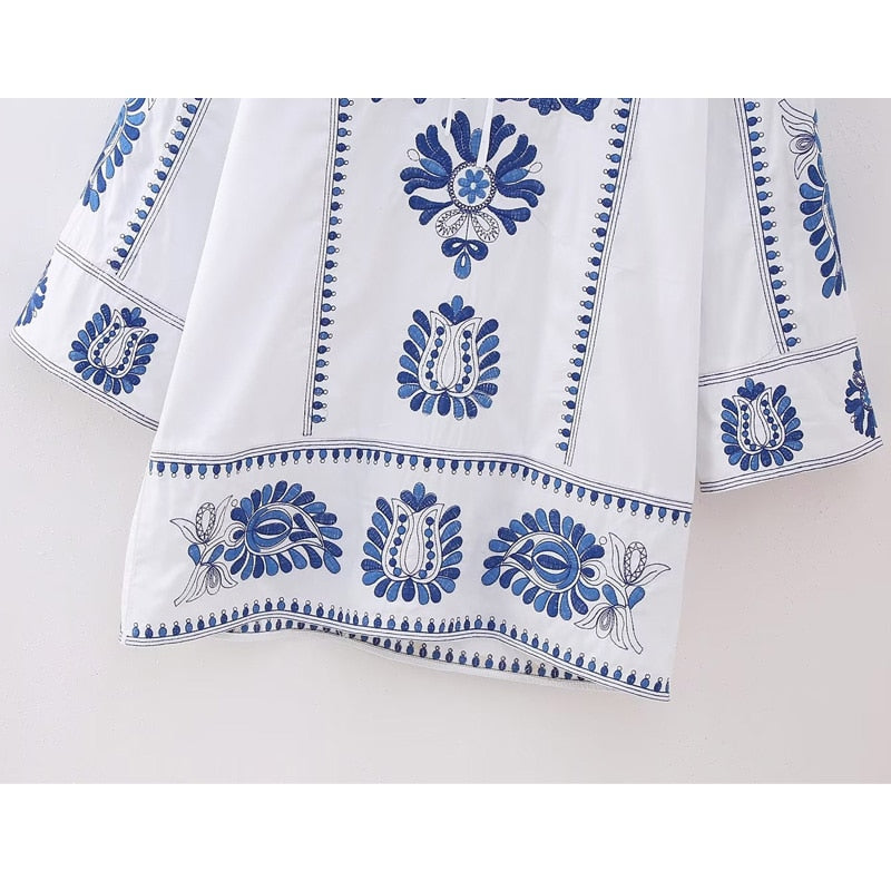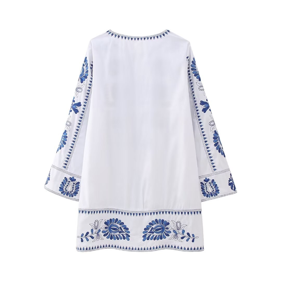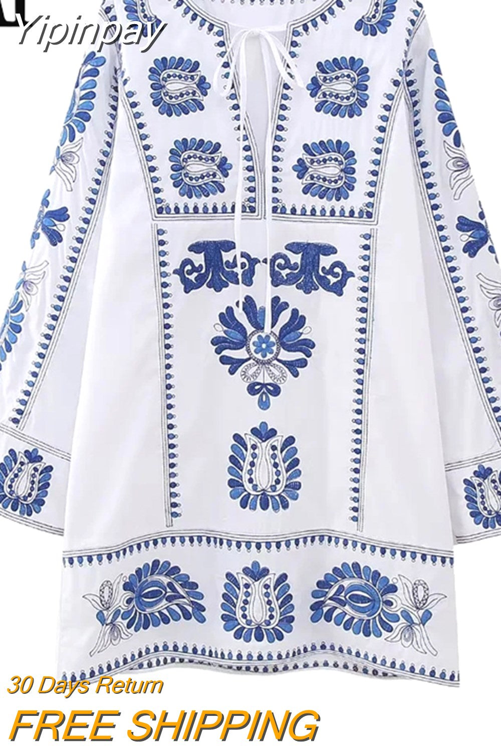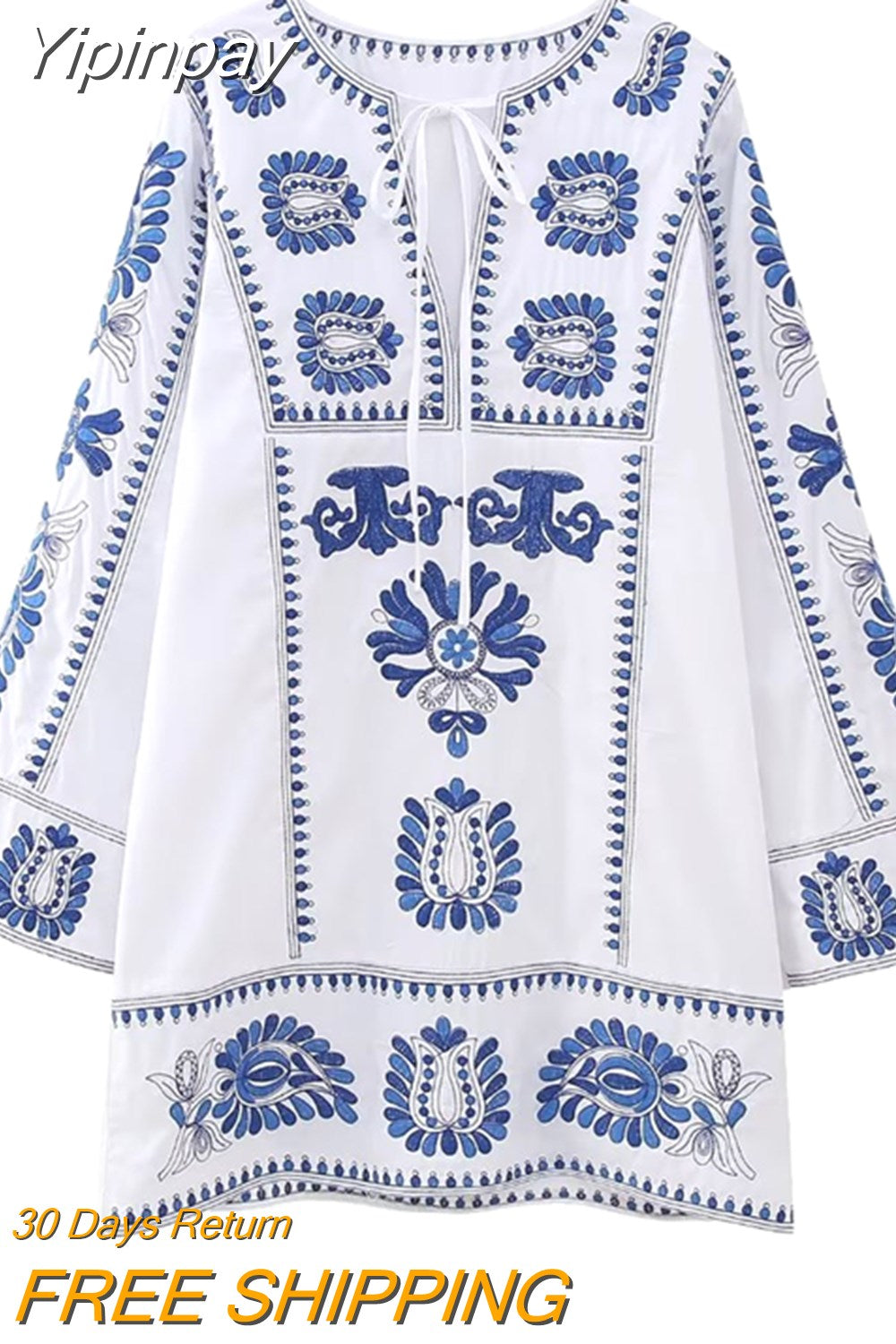 Yipinpay Embroidery Short Dresses For Women 2023 Vintage Boho White Dress Woman Mini Loose Summer Dress Long Sleeve Casual Dresses