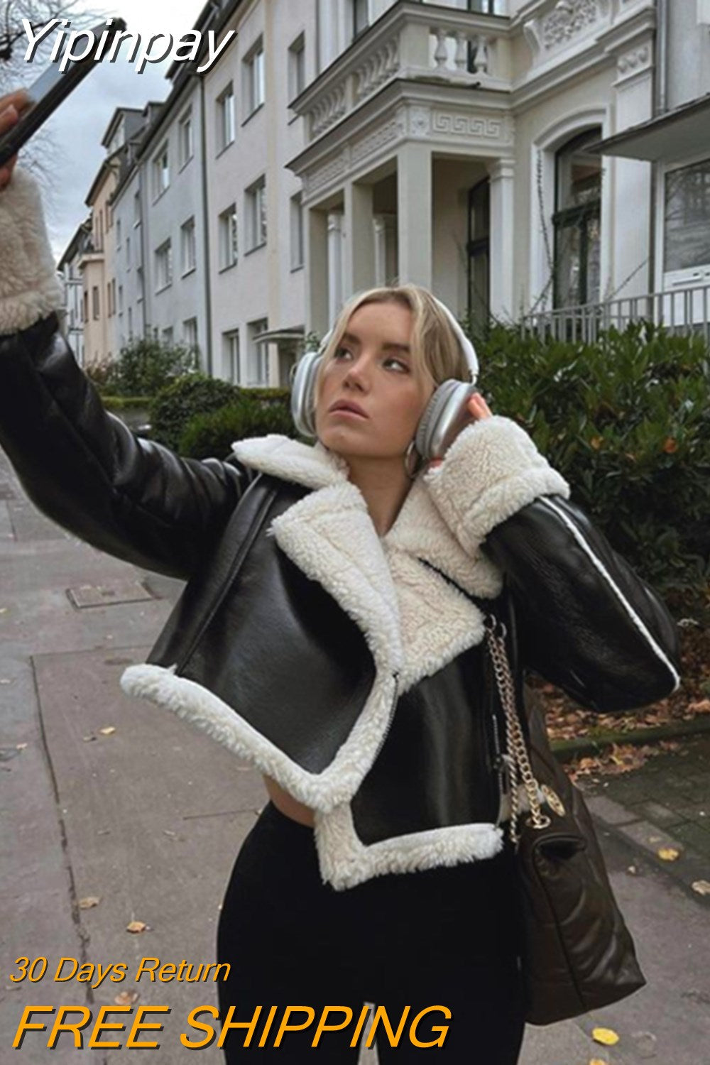 Yipinpay Fashion Double Sided Short Jacket Women Warm Thick Lapel Lambswool Coat Autumn Winter Vintage Female Fleece Chic Tops 920