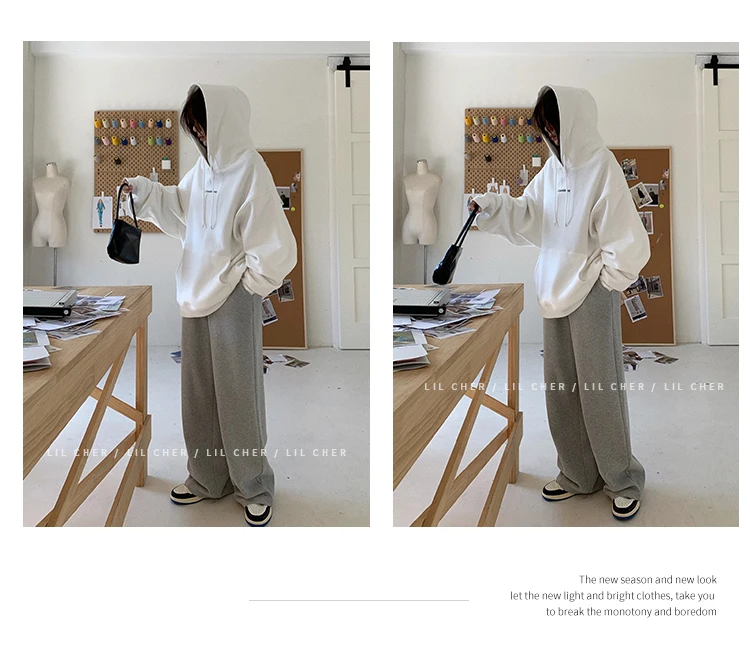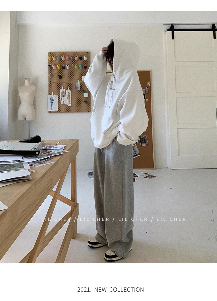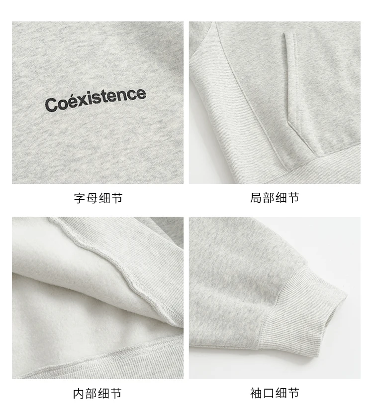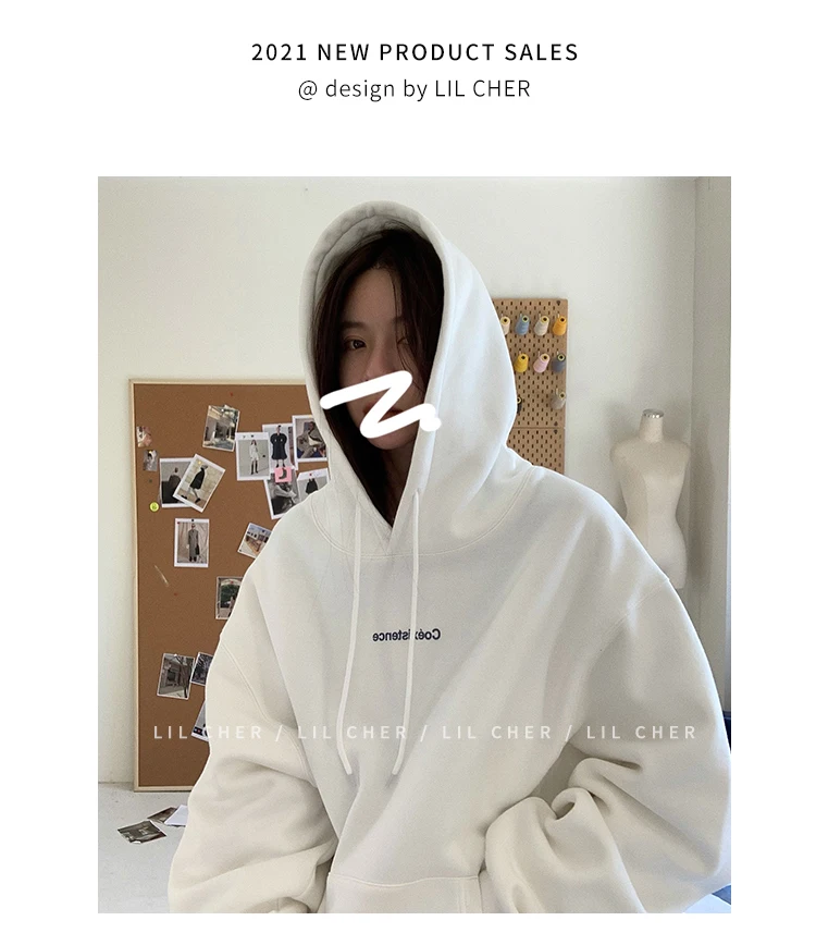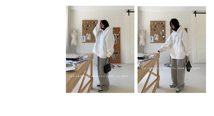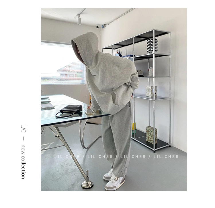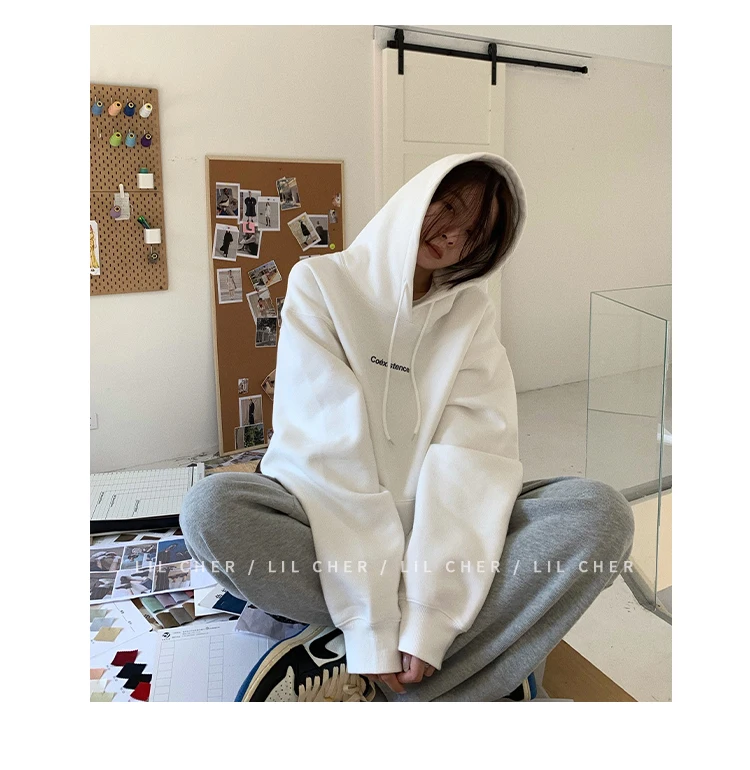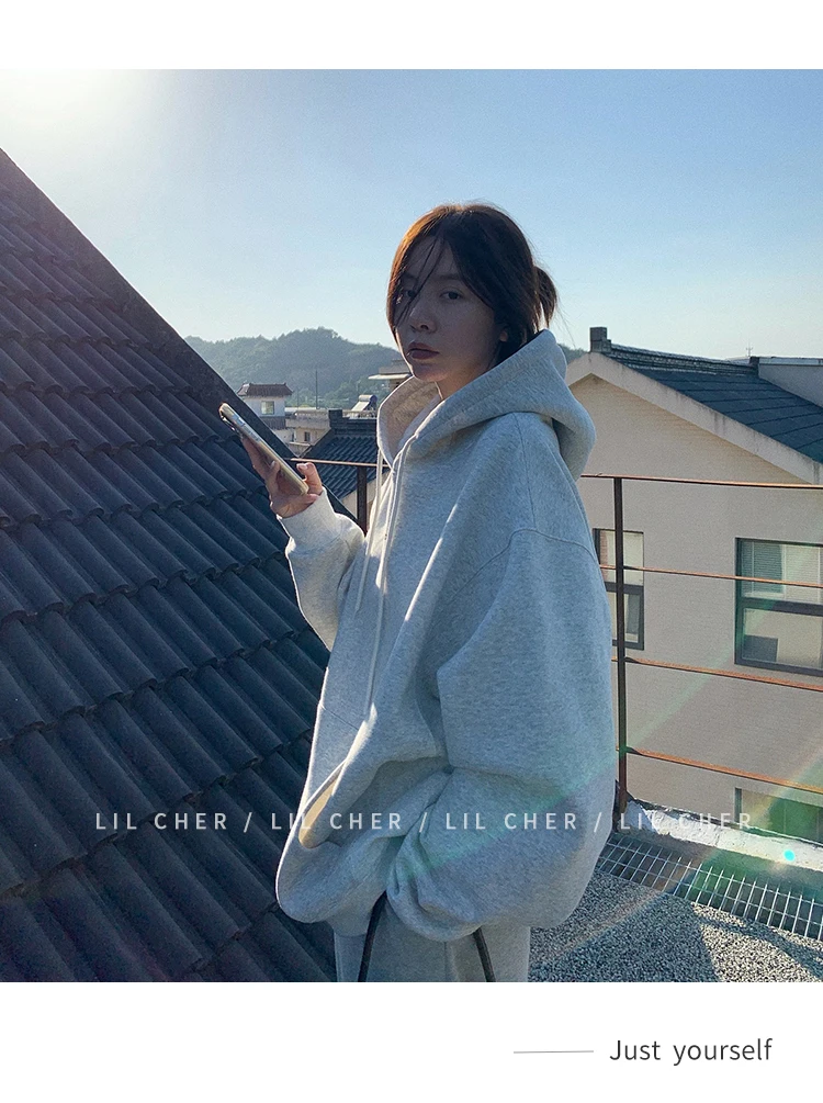 yipinpay Fashion Grey Fleece Thicken Baggy Pullover Pocket Letter Printing Sweatshirt Lazy Casual Raglan Sleeves Hoodie Autumn