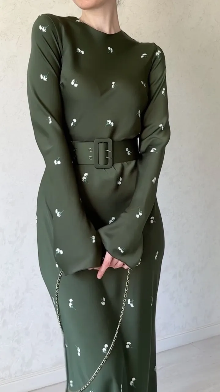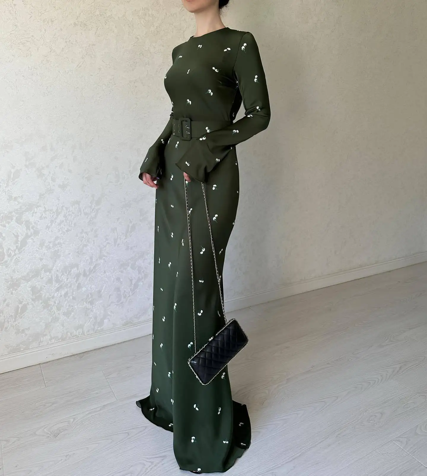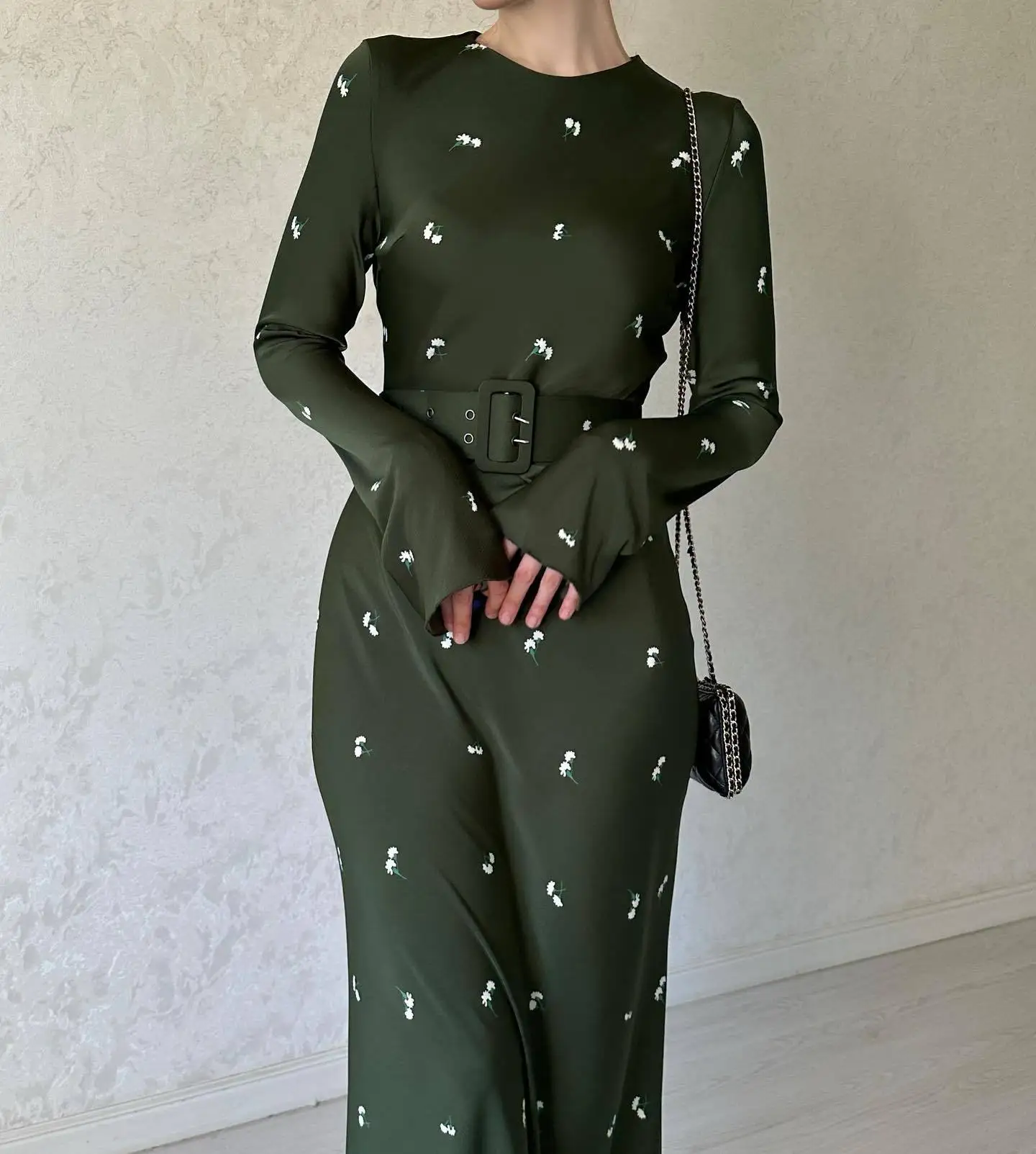 Yipinpay Fashion High Waist Long Dress Ladies Long Sleeve Slim Ruffled Patchwork Elegant Party Dress Printed Casual Maxi Dress 2024