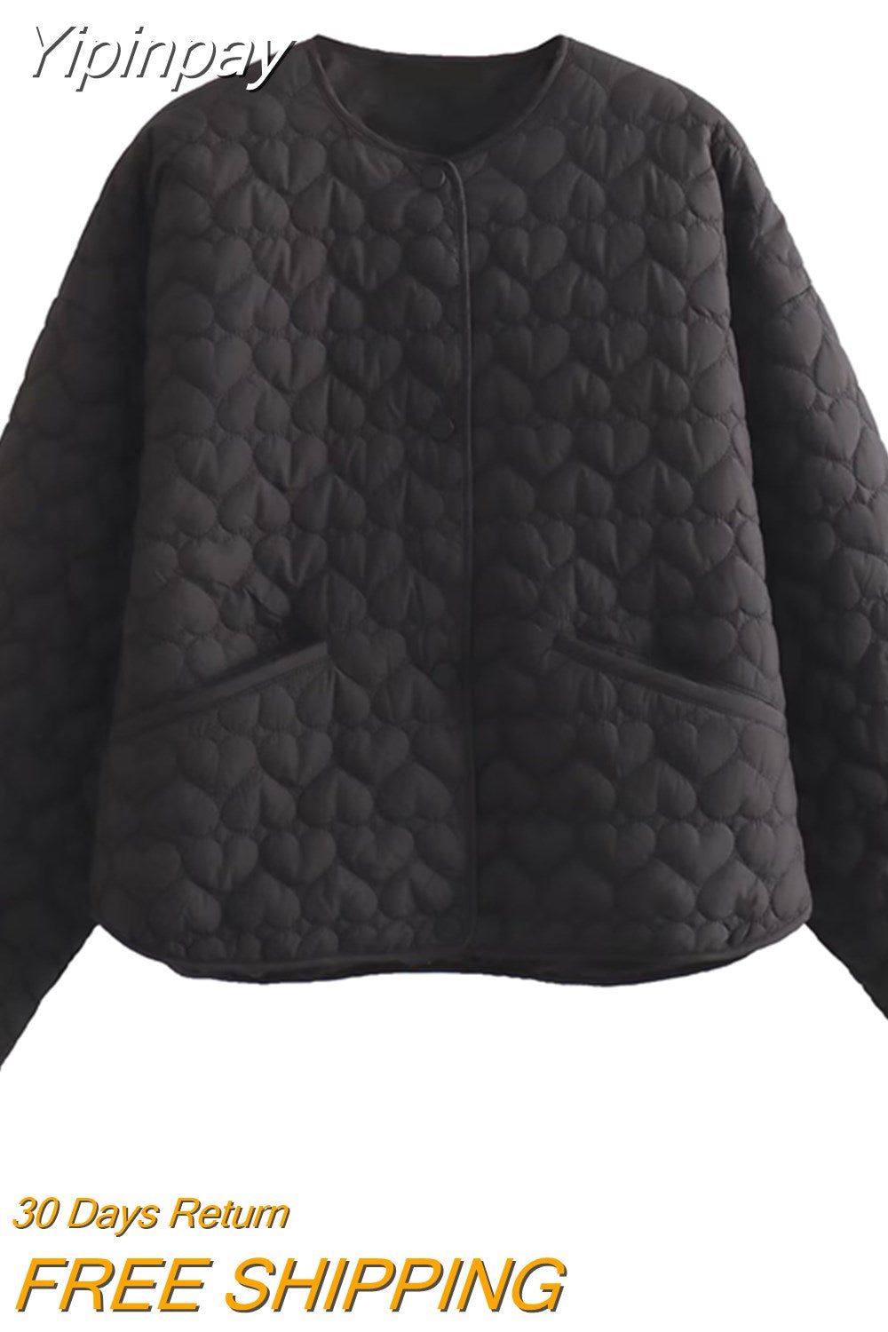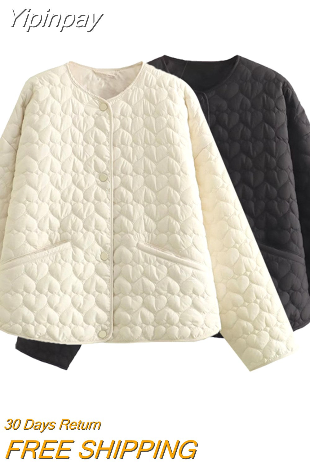 Yipinpay Fashion Jackets for Women 2023 Autumn Quilted Coat Woman O-Neck Chic Single-breasted with Pockets Cotton Jacket Outerwear