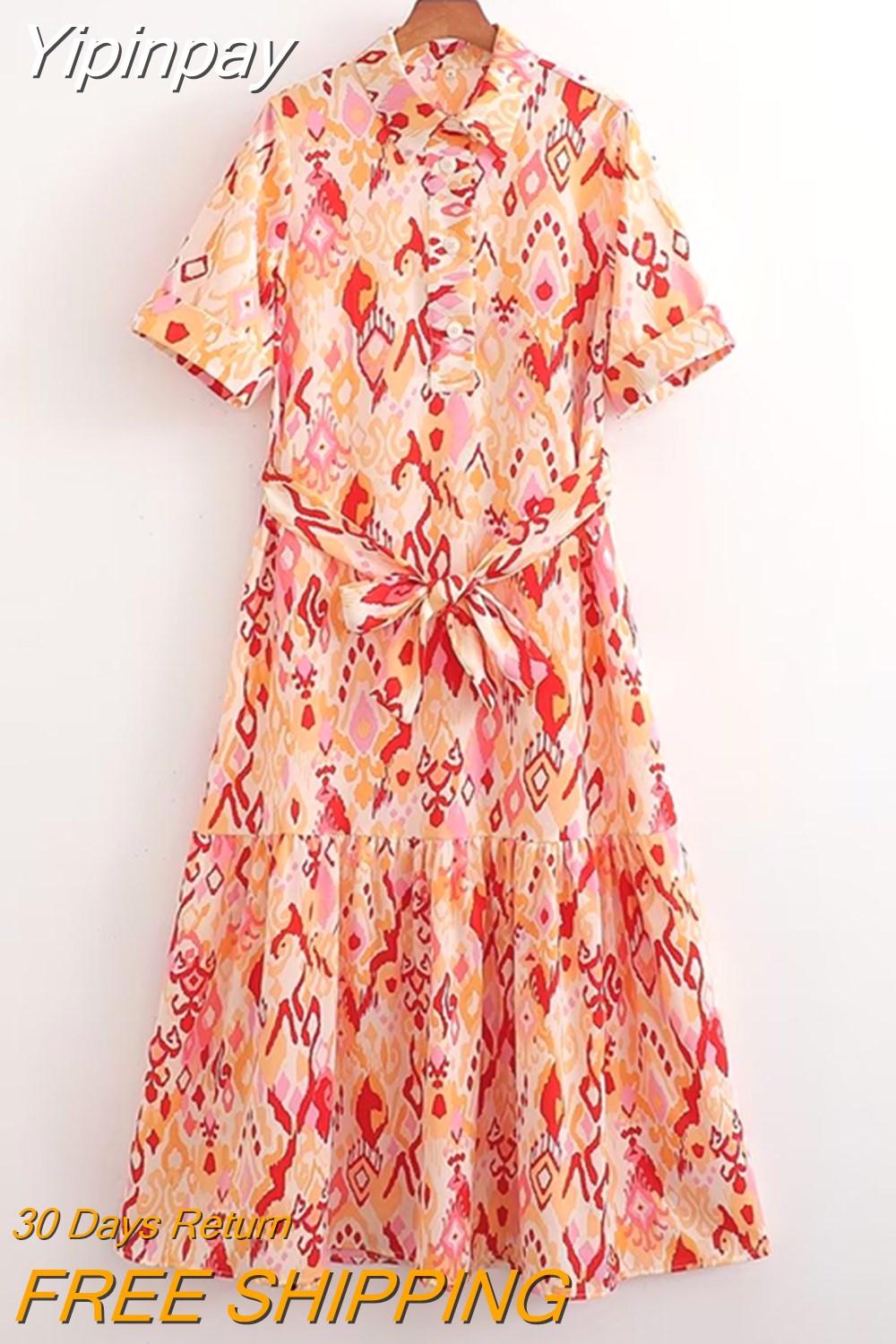 Yipinpay Fashion Print Women's Dress Formal Dresses for Women 2023 Summer Chic and Elegant Casual Dress Ladies Belt Long Dresses
