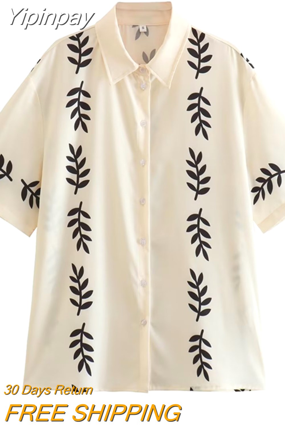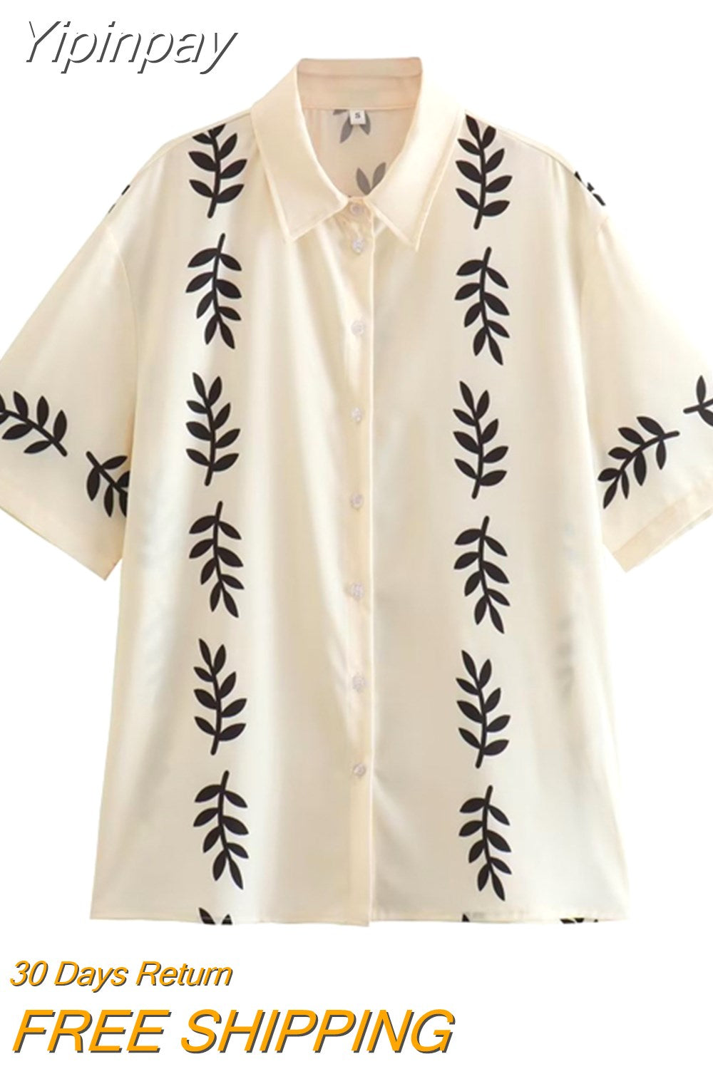 Yipinpay Fashion Print Women's Shirt 2023 Summer Casual Loose Blouse Tops Female Chic Elegant Single-breasted Shirts & Blouses
