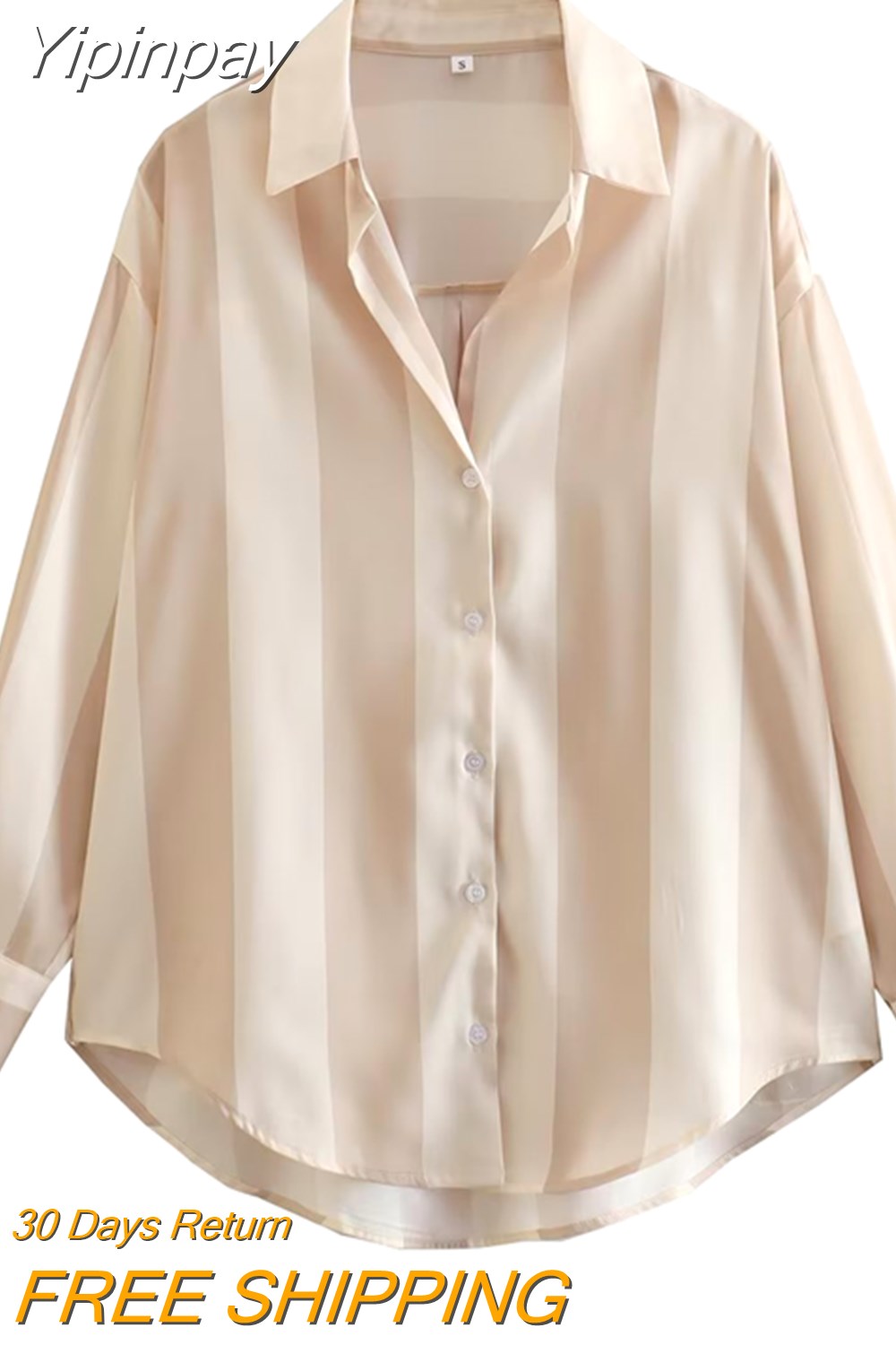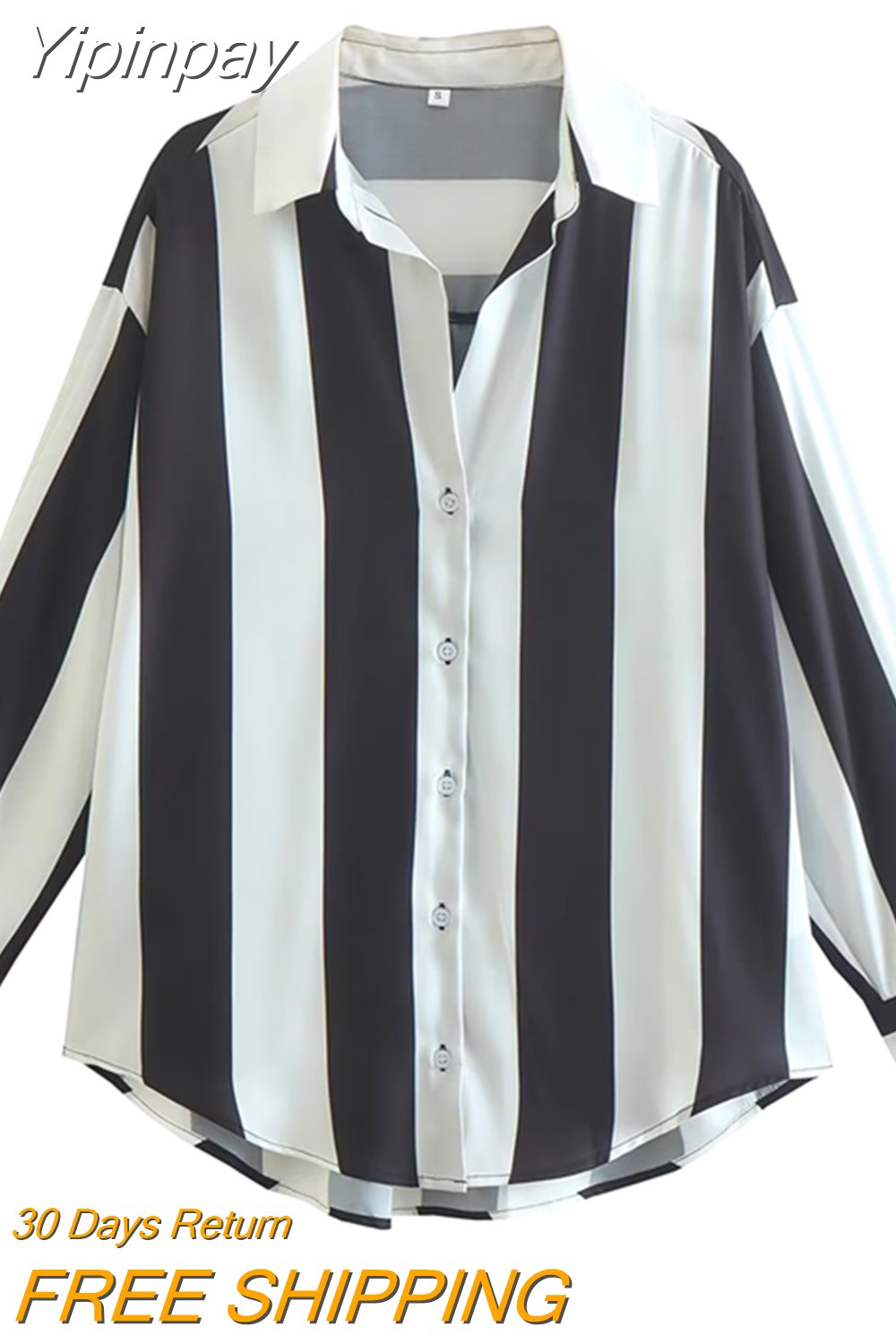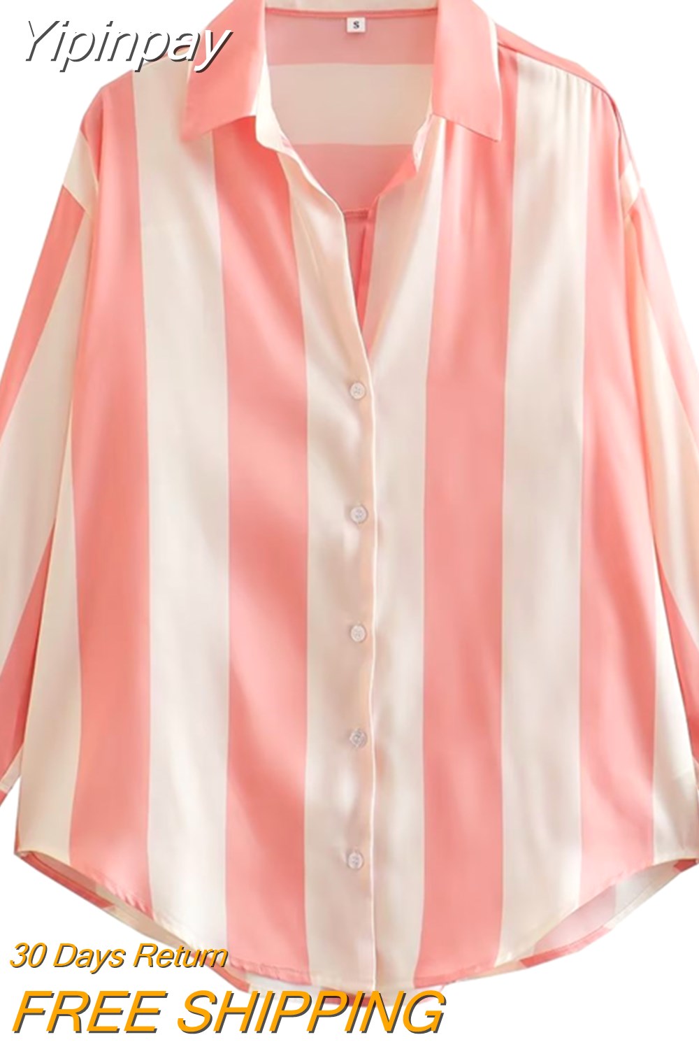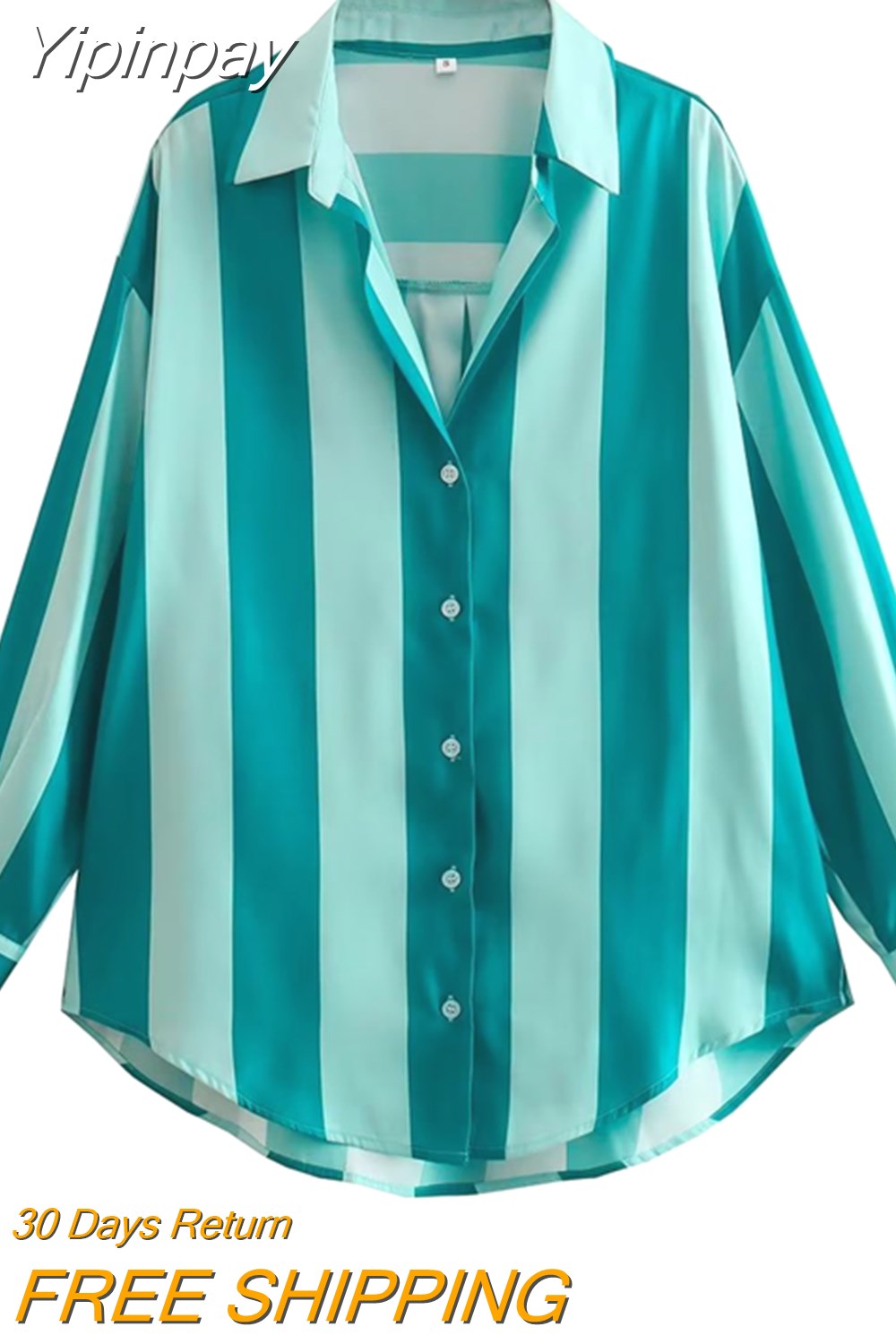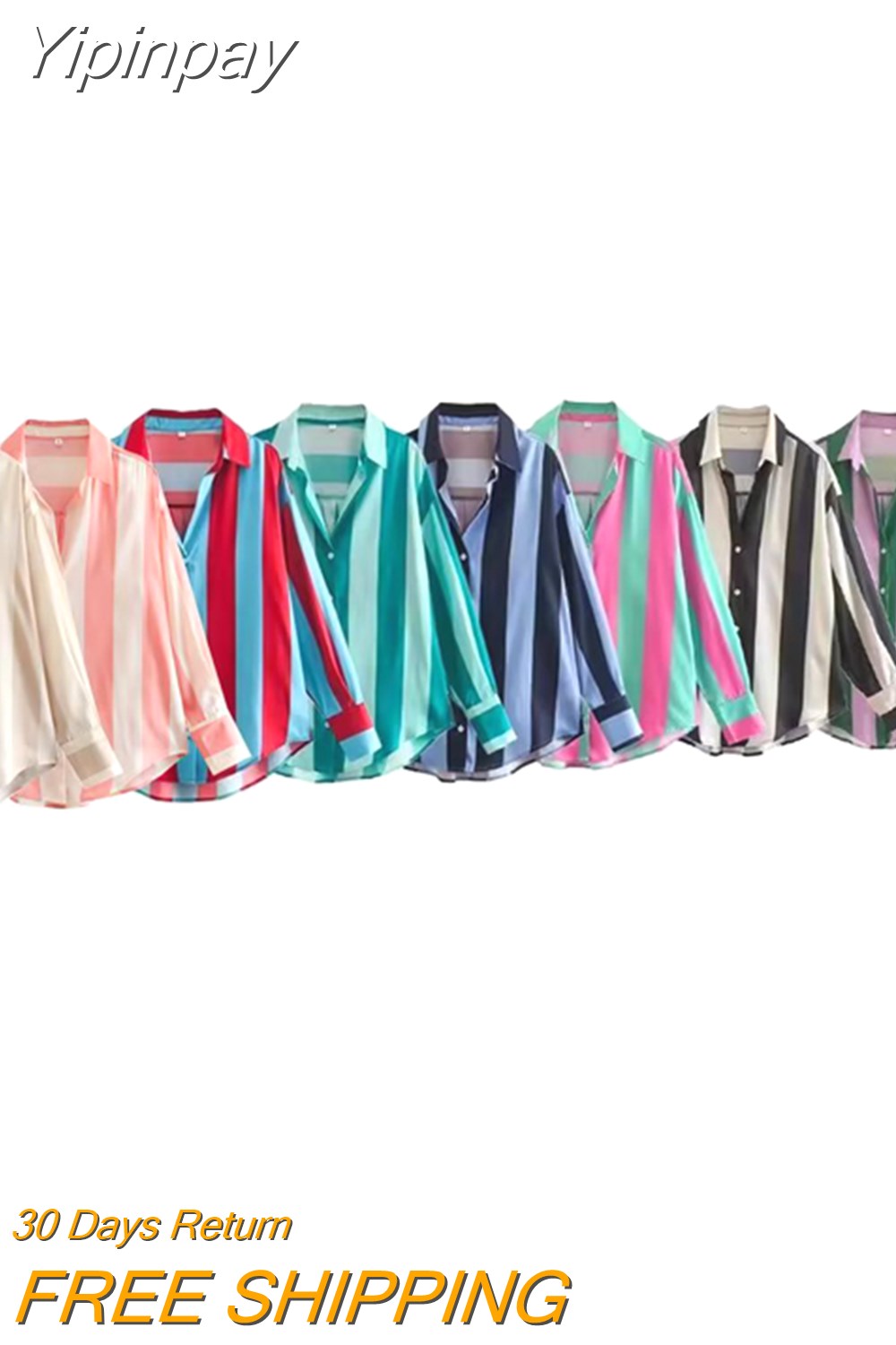 Yipinpay Fashion Stripe Spliced Women's Shirt 2023 Summer Long Sleeve Women Tops Blouse Ladies Chic Casual Shirts & Blouses New In