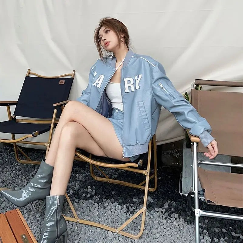 Yipinpay Fashion Two Piece Set Women Letter Print Solid Zipper Loose Coat Pockets High Waist Mini Skirt Spring Autumn Elegant Sets