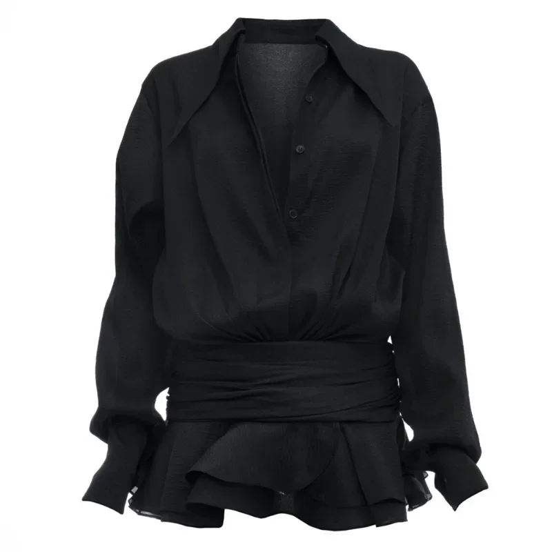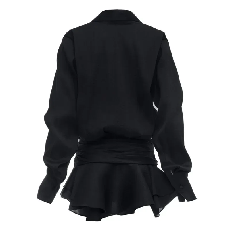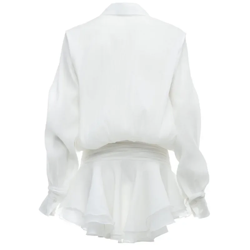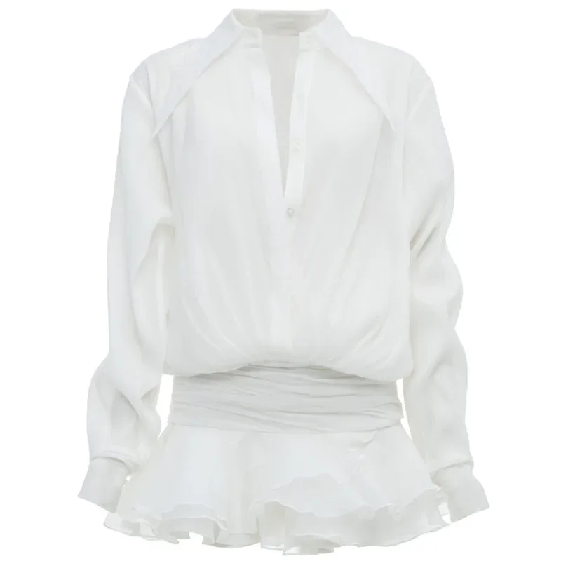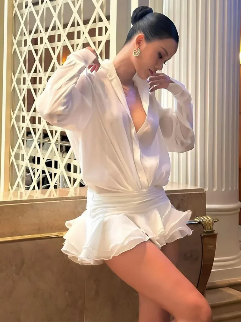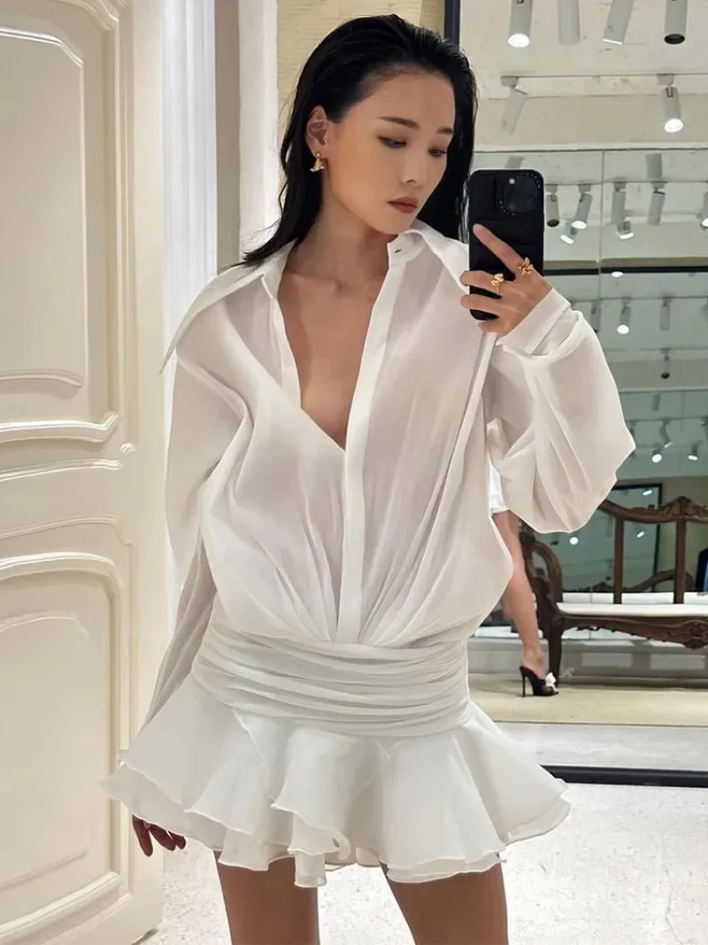 Yipinpay Fashion White Ruffled Mini Dress For Women Cardigan Patchwork See-Through Long Sleeve Sexy Night Club Party Dress Women's