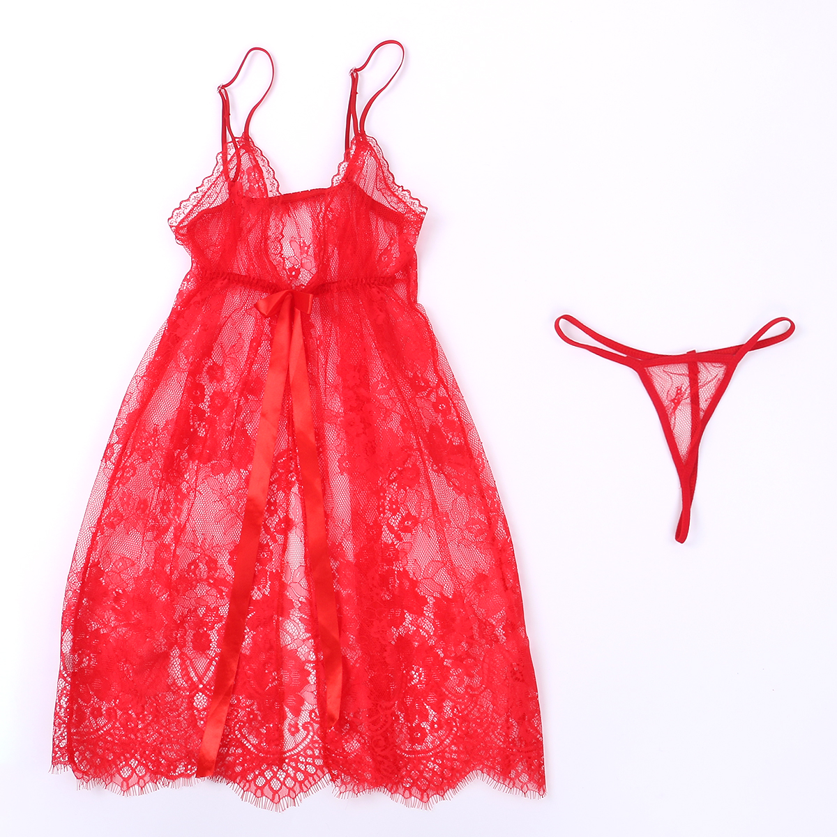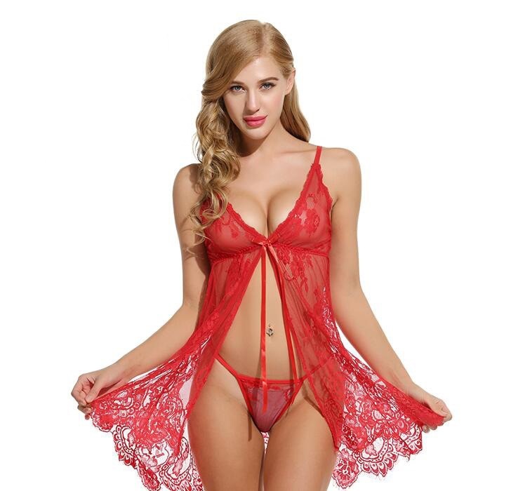 Yipinpay Fashion Women Lingerie Set See Through Floral Sling Cardigan Lace Dress+Sexy Thong Underwear Skin Friendly Hot Sale S-3XL