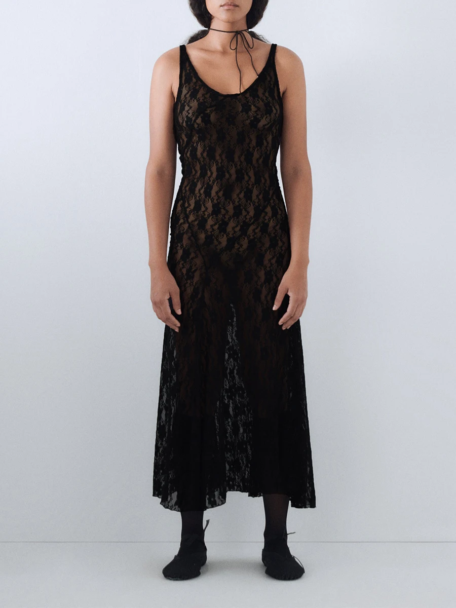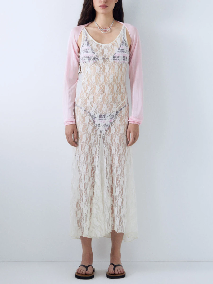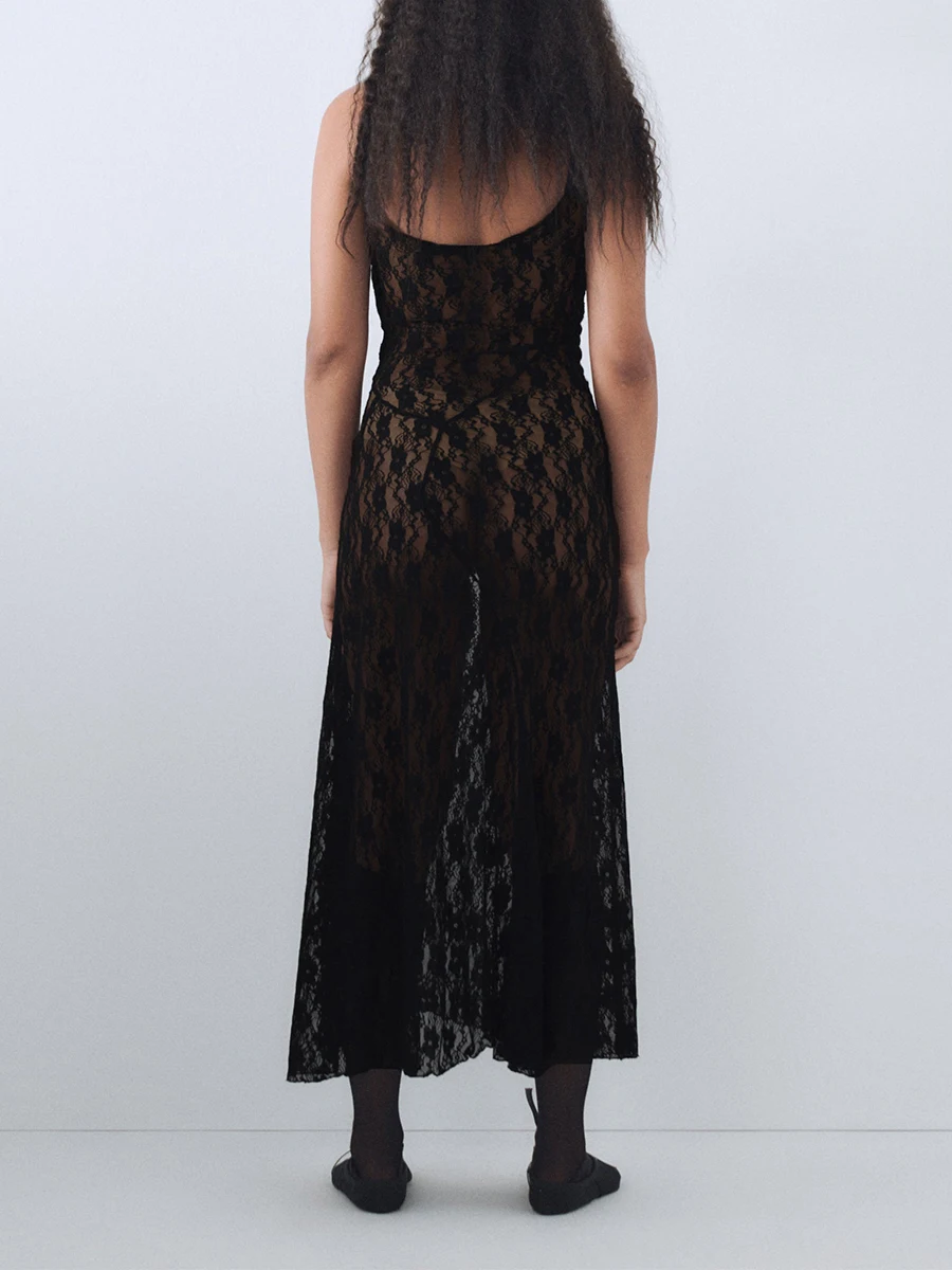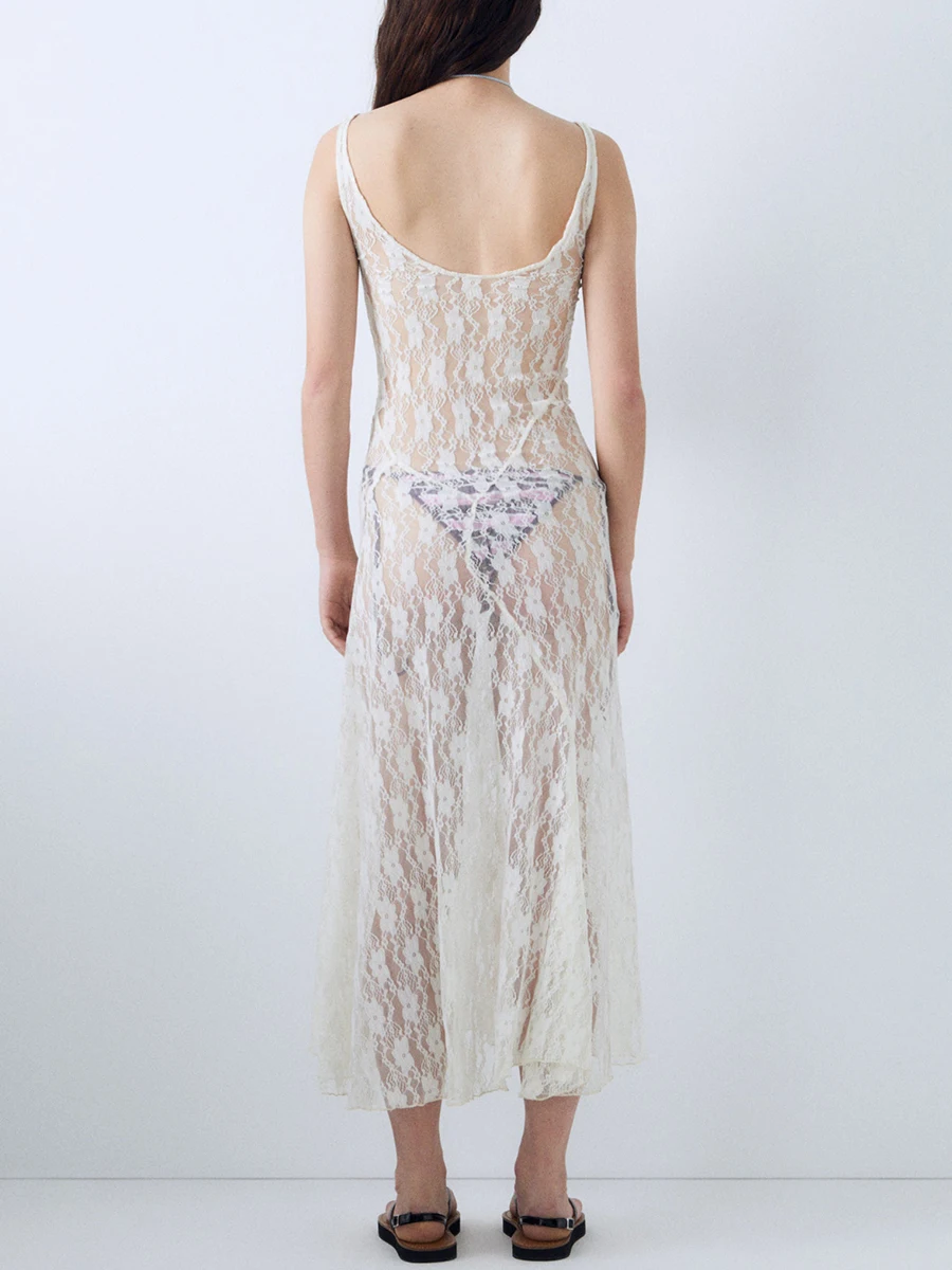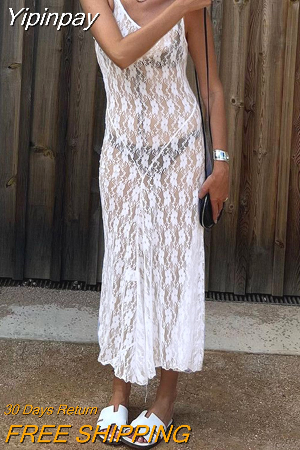 Yipinpay Fashion Women Sleeveless Tank Dress Summer Casual Backless Sheer Lace Party Dress For Club Streetwear Hot Sale S-XL