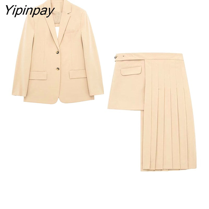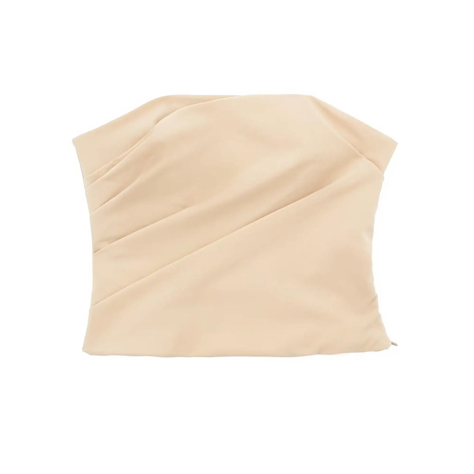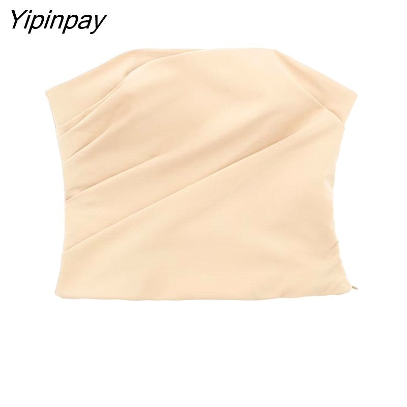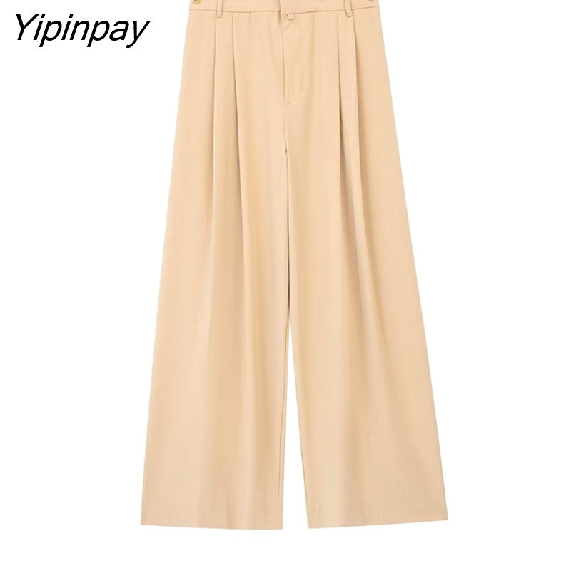 Yipinpay Fashion Women Solid Pant Sets 2023 Spring Summer Strapless Tops Women High Waiste Casual Zipper Wide Leg Pants Set