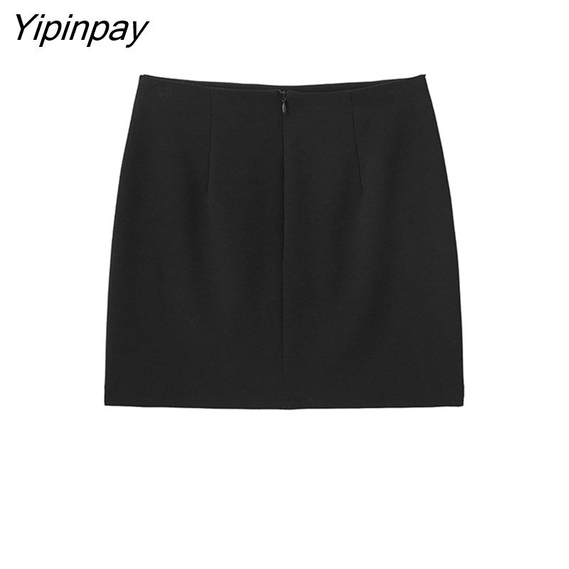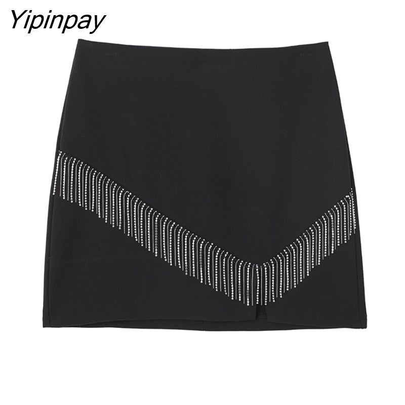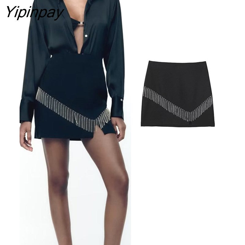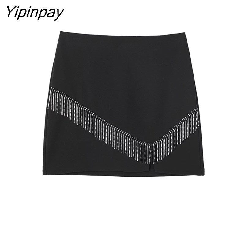 Yipinpay Fashion Women Tassel Mini Skirt 2023 Spring Autumn Causal Solid Vintage A-line Back Zipper Sexy Skirt Streetwear
