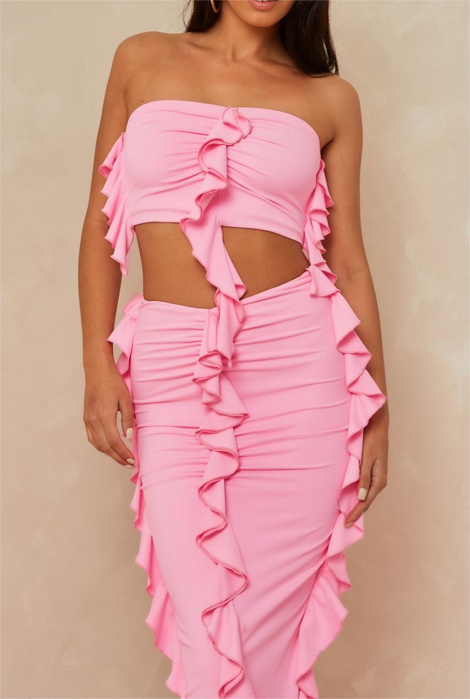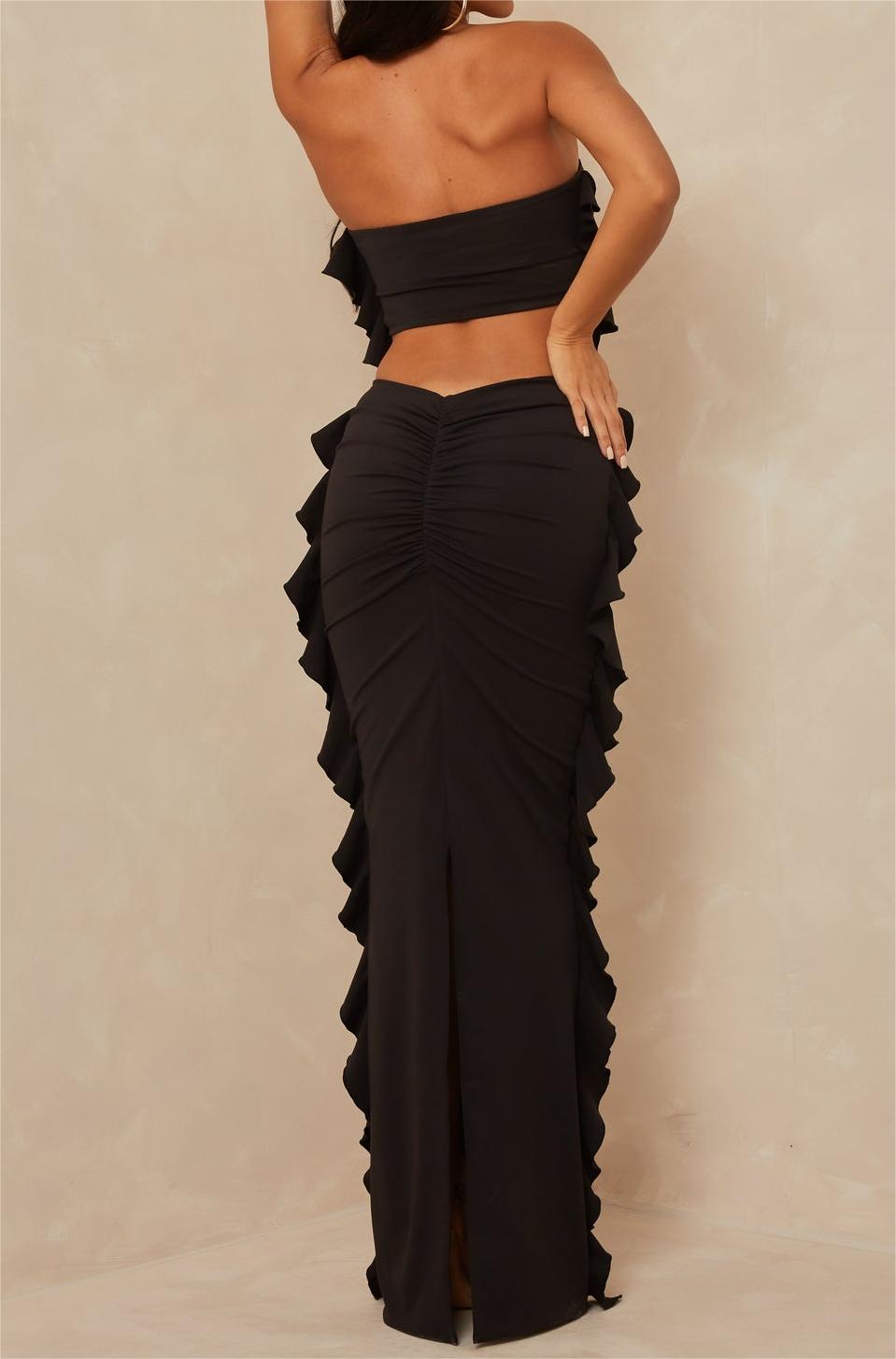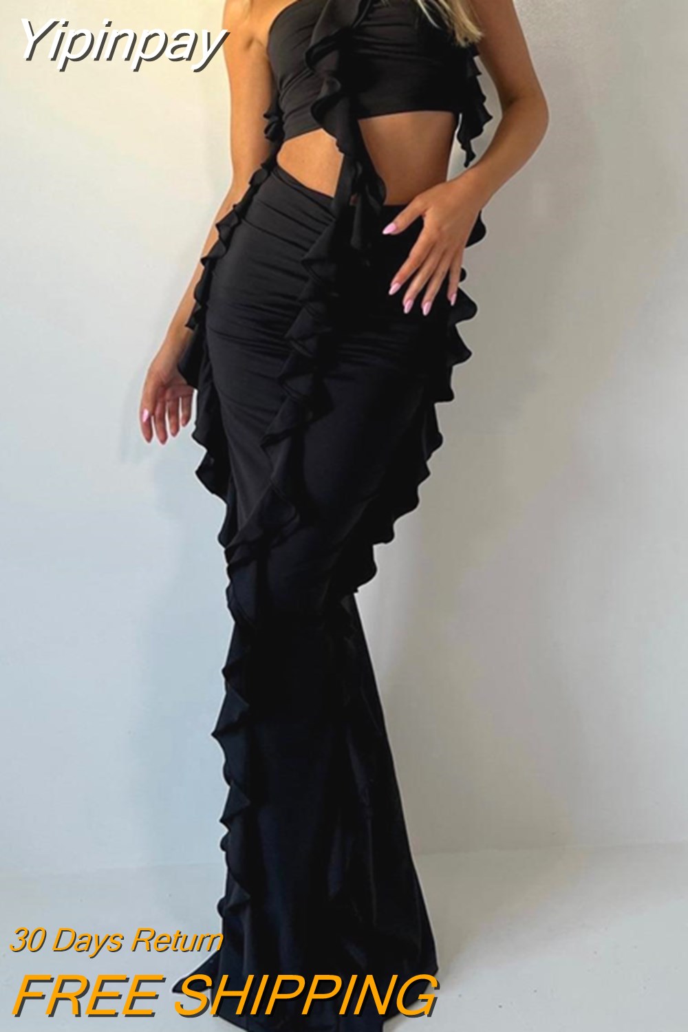 Yipinpay Fashion Womens 2 Piece Summer Outfits Off Shoulder Ruffle Tube Tops Long Bodycon Skirt Set Club Street Style Skin-Friendly