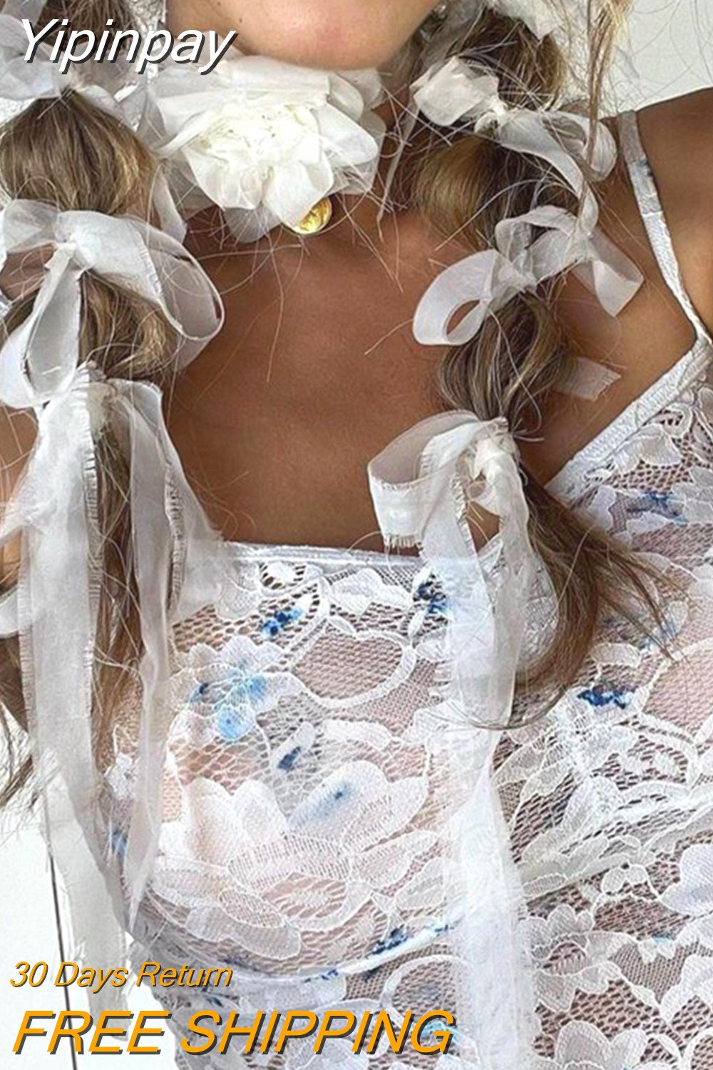 Yipinpay Fashion Womens Summer Clothes 2Pcs Suit Lace Flower Perspective Sleeveless Camisole + Elastic Waist Shorts Hot Sale S M L