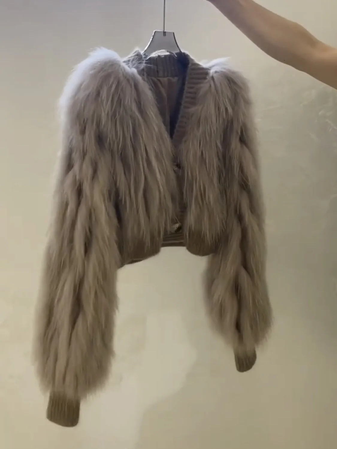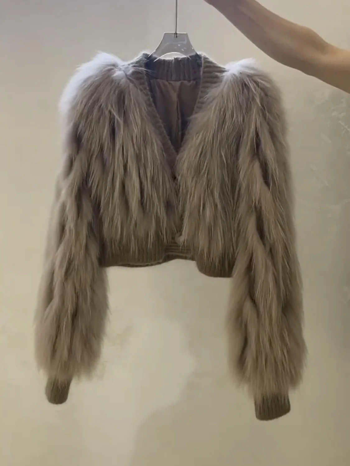 Yipinpay & Faux Fur Winter Jacket Women V Neck Faux Fur Short French Cardigan Coat Fluffy Jacket Chaquetas Mujer Elegant Vintage