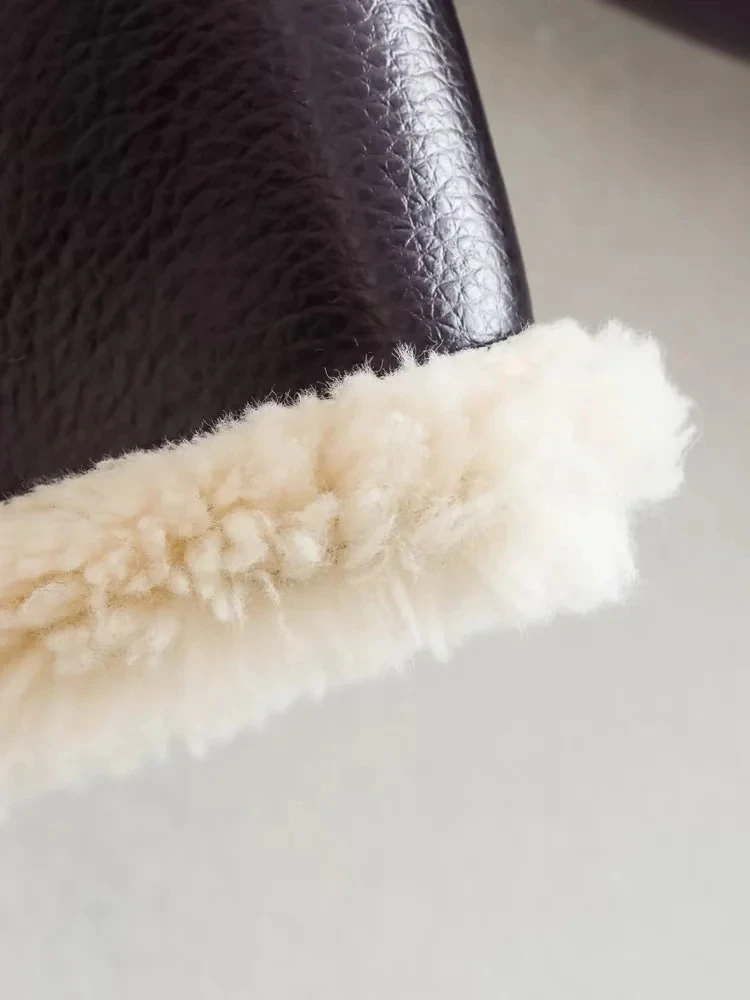 Yipinpay Faux Leather Cropped Jacket Woman Fleece Jacket Women Double Faced Zip Up Short Teddy Coat Warm Winter Women's Jackets