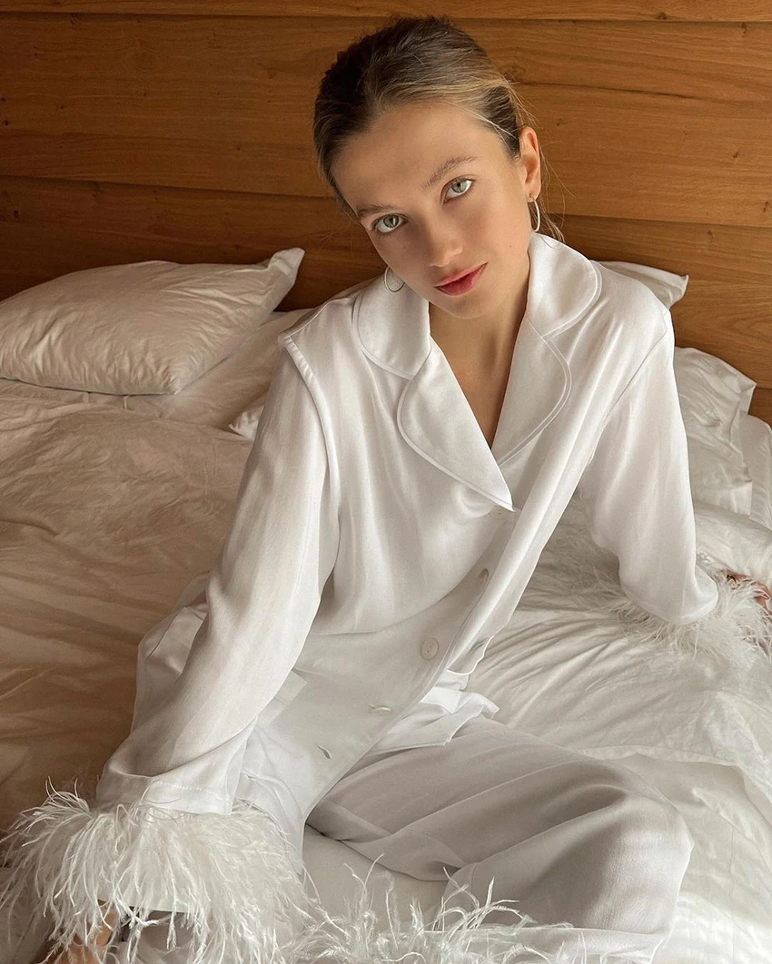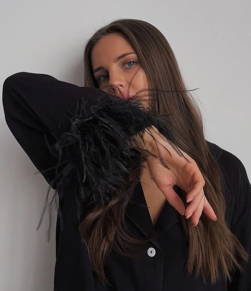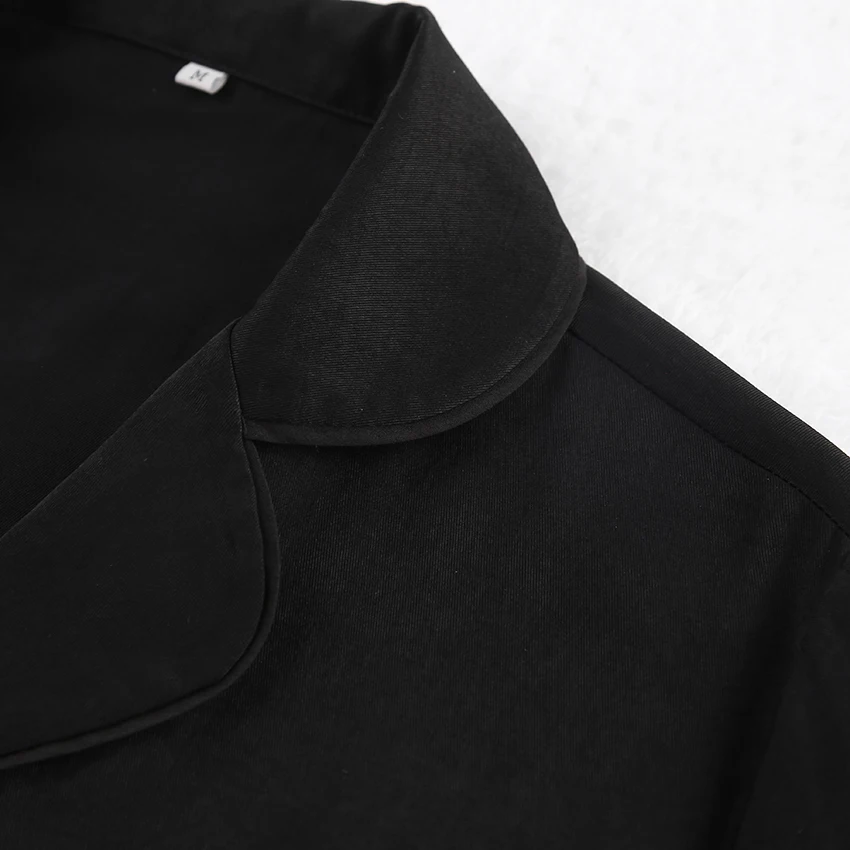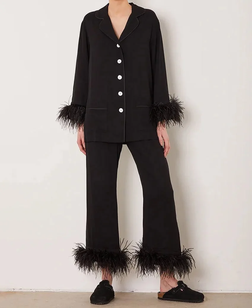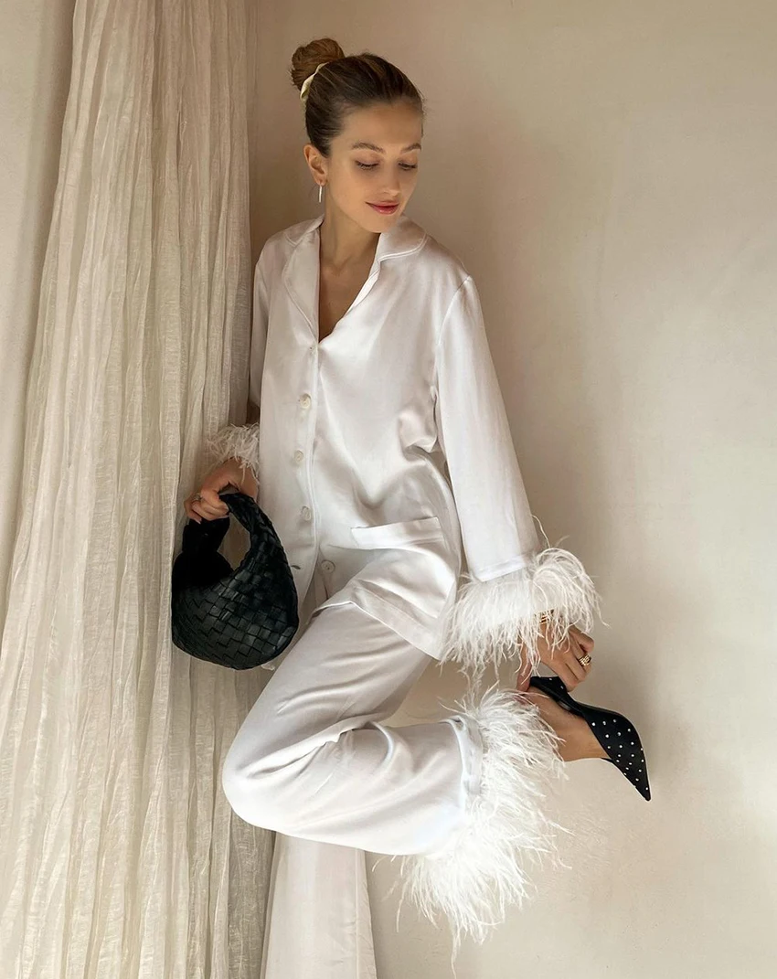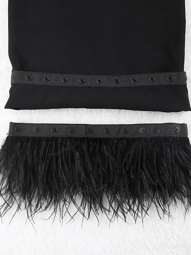 Yipinpay Feather Cuffs Pants Sets Of Two Fashion Pieces For Women Sleepwear Notched Shirts And Wide Leg Pant Homewear Outfits