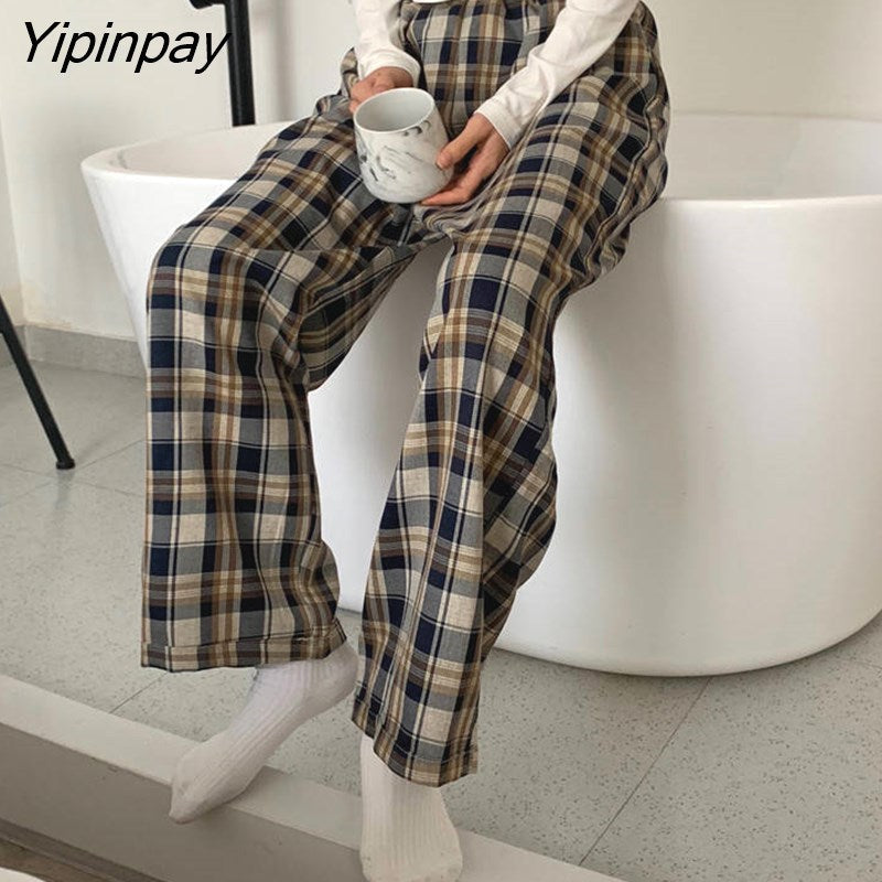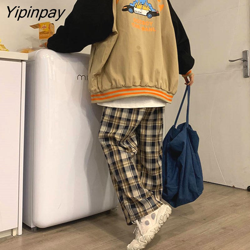Yipinpay Female Sweatpants Hip Hop Streetwear fashion Aesthetic High Waisted Y2k korean Clothing Harajuku Women Pants Plaid