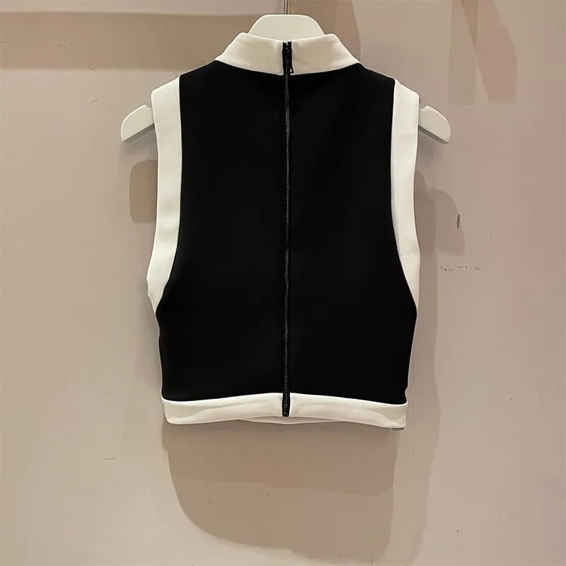 Yipinpay Fit Contrast Zipper Sleeveless Black Woman Tshirts Stand Y2k Top 2023 Fall T Shirt Women Mujer Camisetas Graphic T Shirts