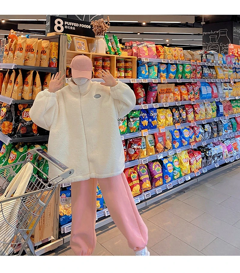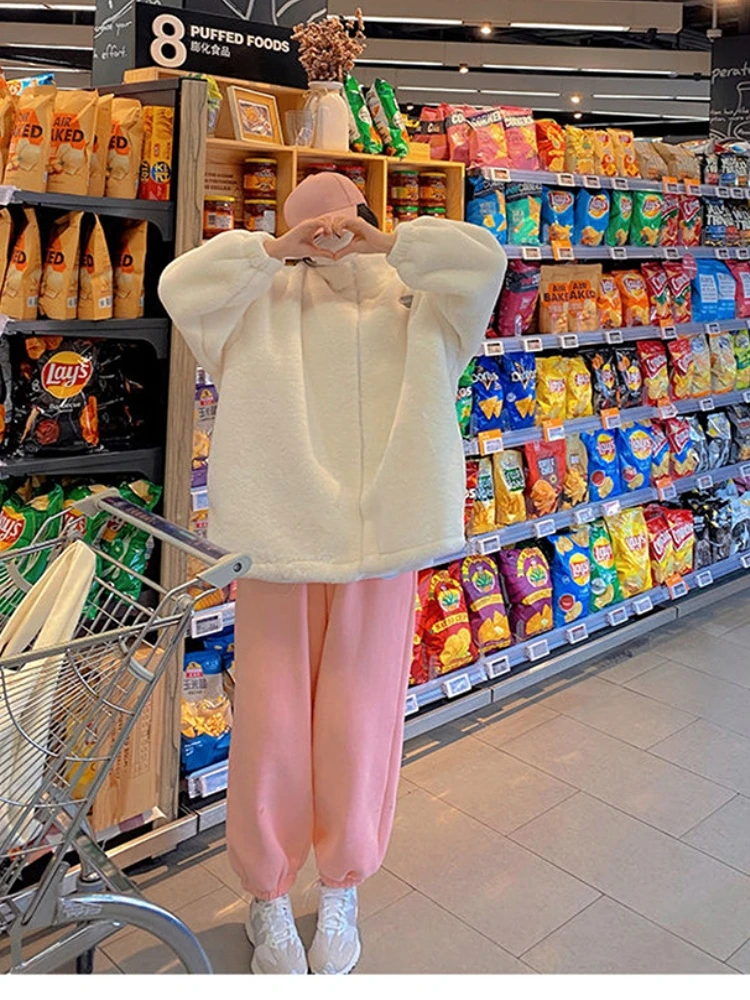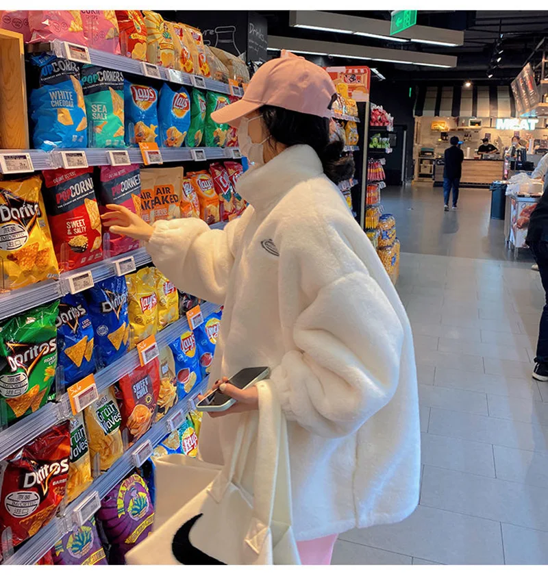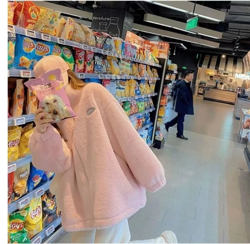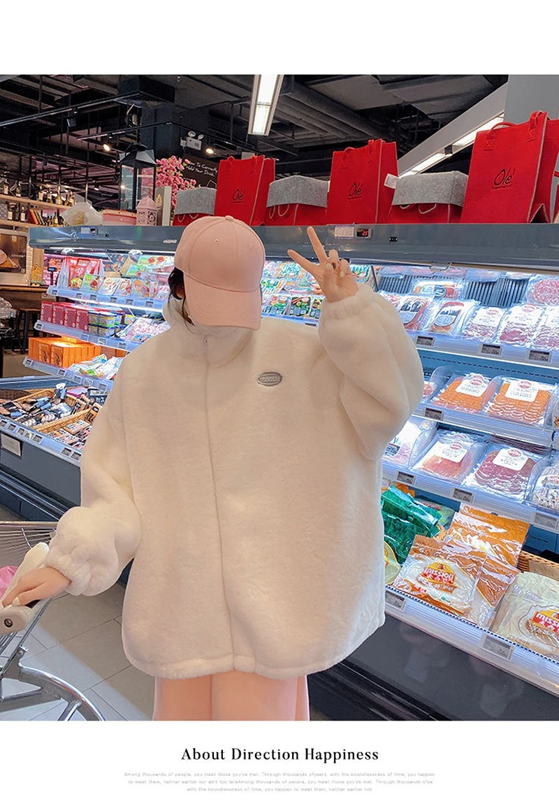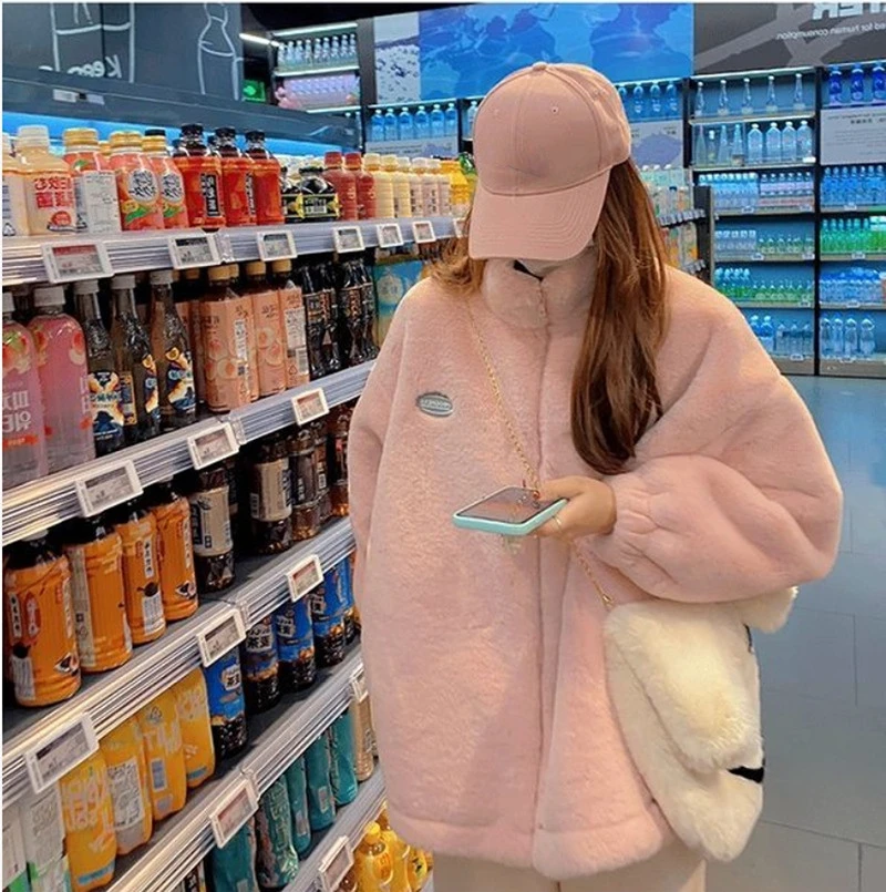 Yipinpay Fleece Fluffy Jacket Oversize Lazy Pink Designer Plush Jacket Streetwear Harajuku Zipper Solid Coat Korean Style Clothes