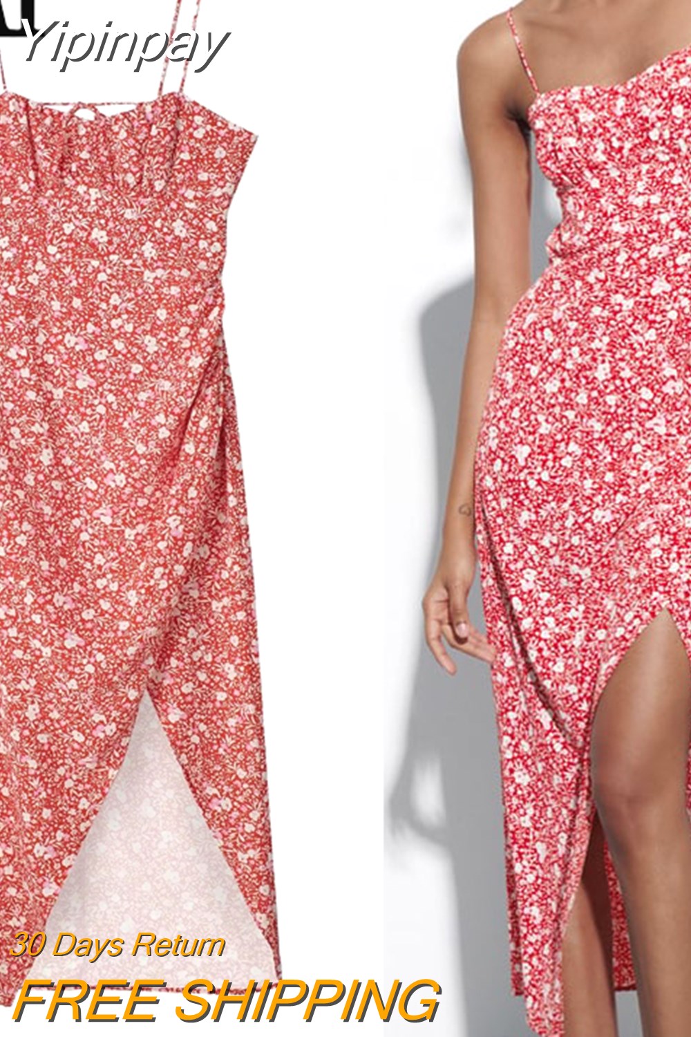 Yipinpay Floral Corset Dress Woman Red Slip Long Dress Women Summer Elegant Party Dresses For Women 2023 Backless Evening Dresses