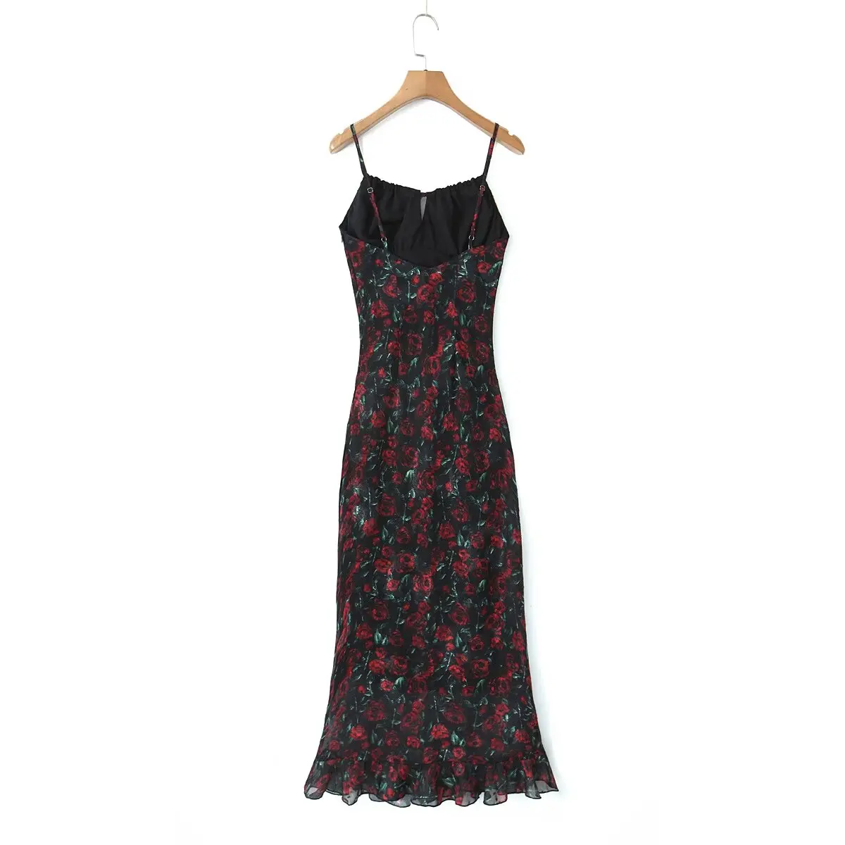 Yipinpay Floral Print Spaghetti Strap Long Dress Sexy Women Sleeveless O Neck Summer Holiday Dresses French Style Robe