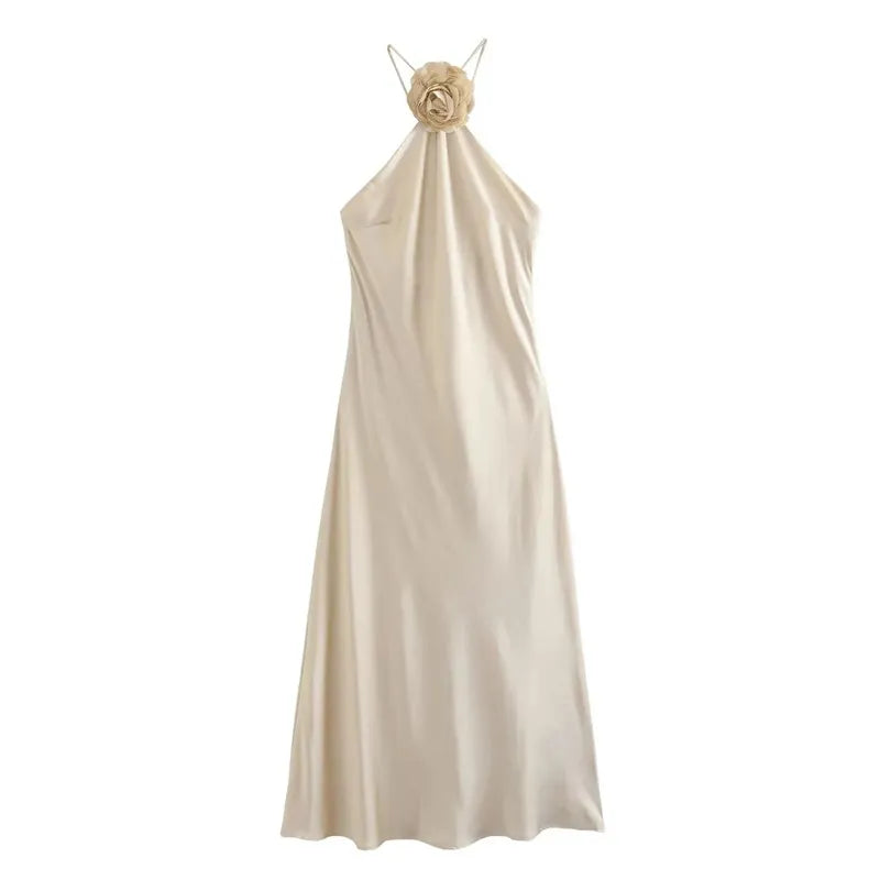 Yipinpay Flower Halter Dress Woman Backless Satin Long Dress Women Summer Elegant Party Dresses Off Shoulder Sexy Evening Dresses
