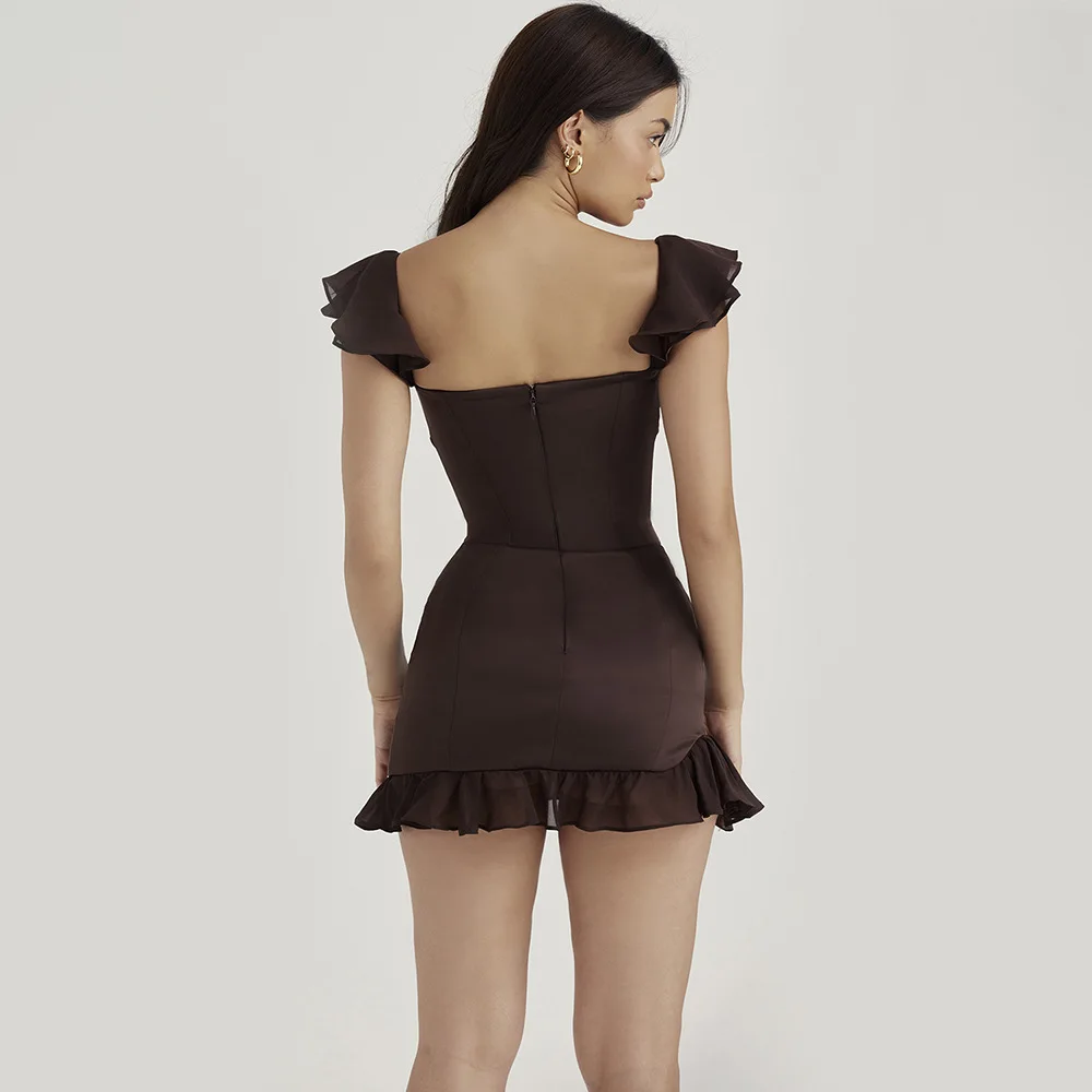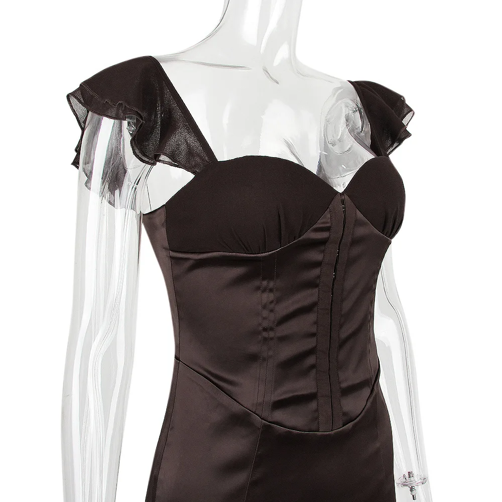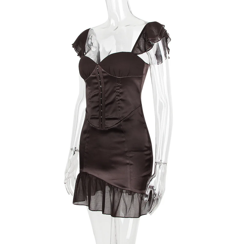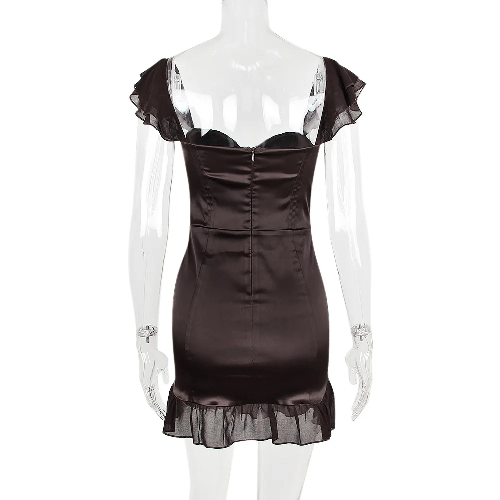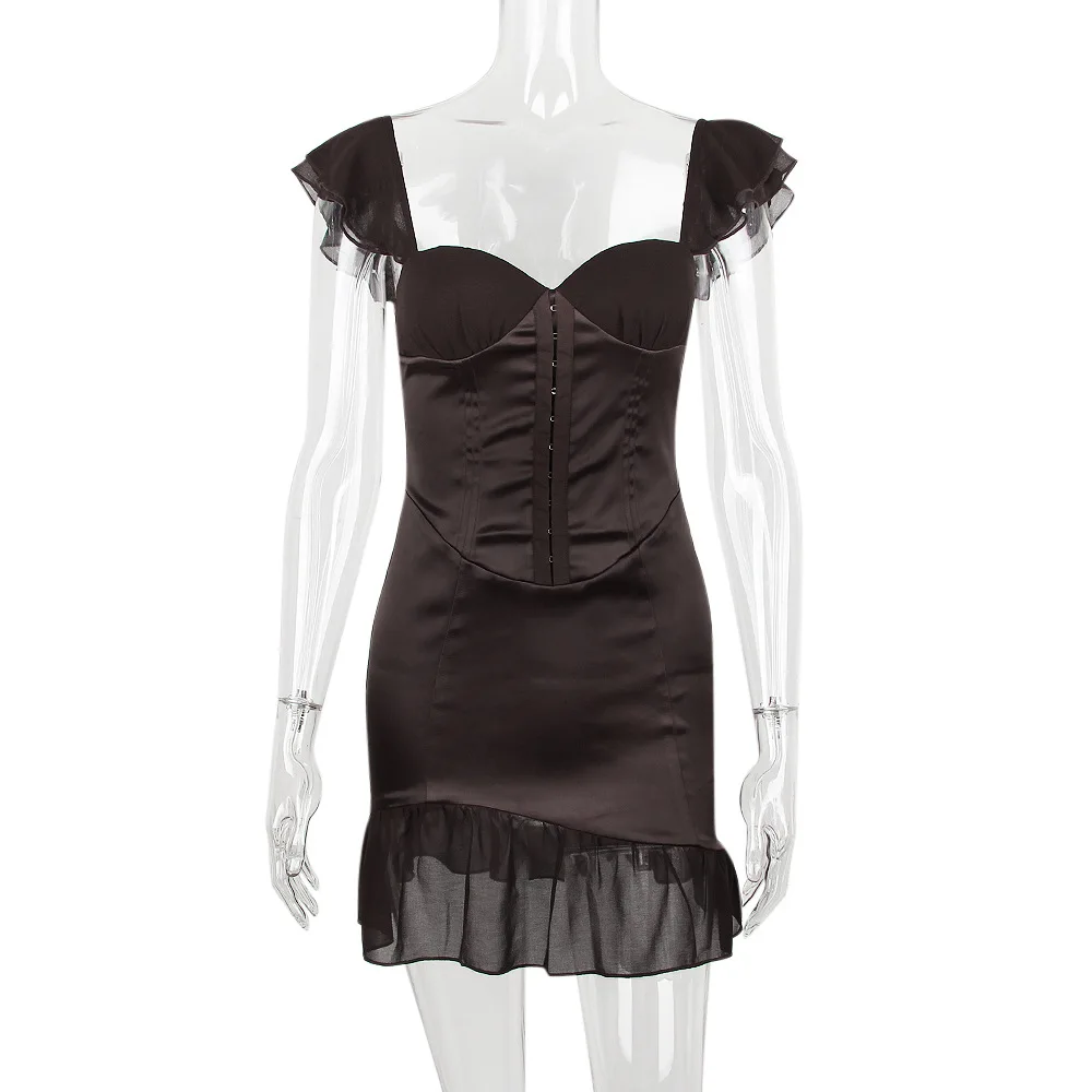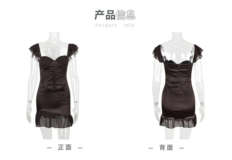 Yipinpay for Women 2023 Summer Night Party Dresses Satin Dress Ruffle Mini Bodycon Dress Chiffon Sleeve Elegant High Quality