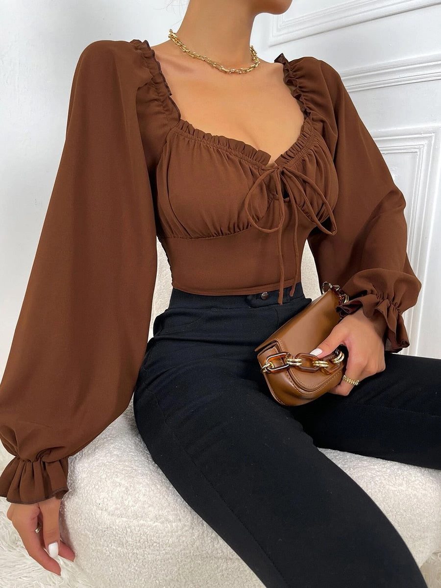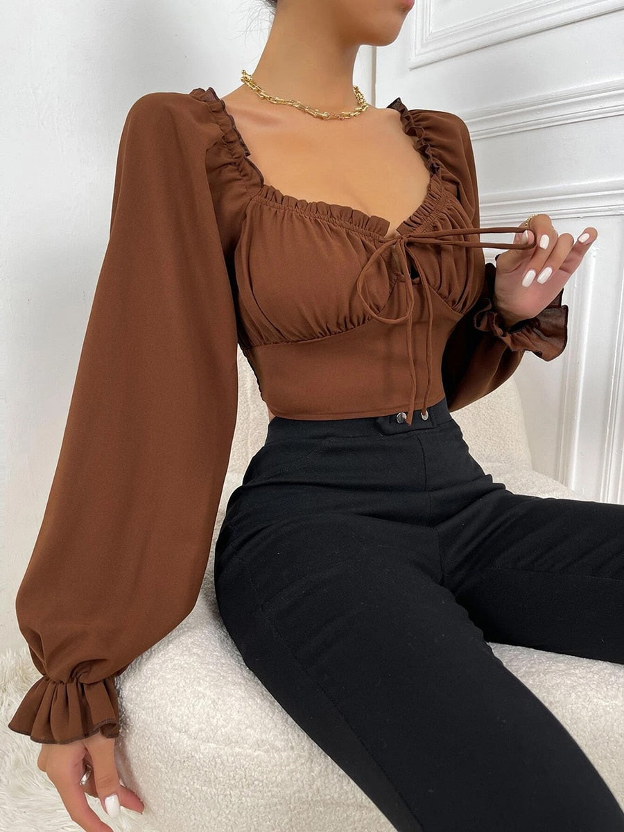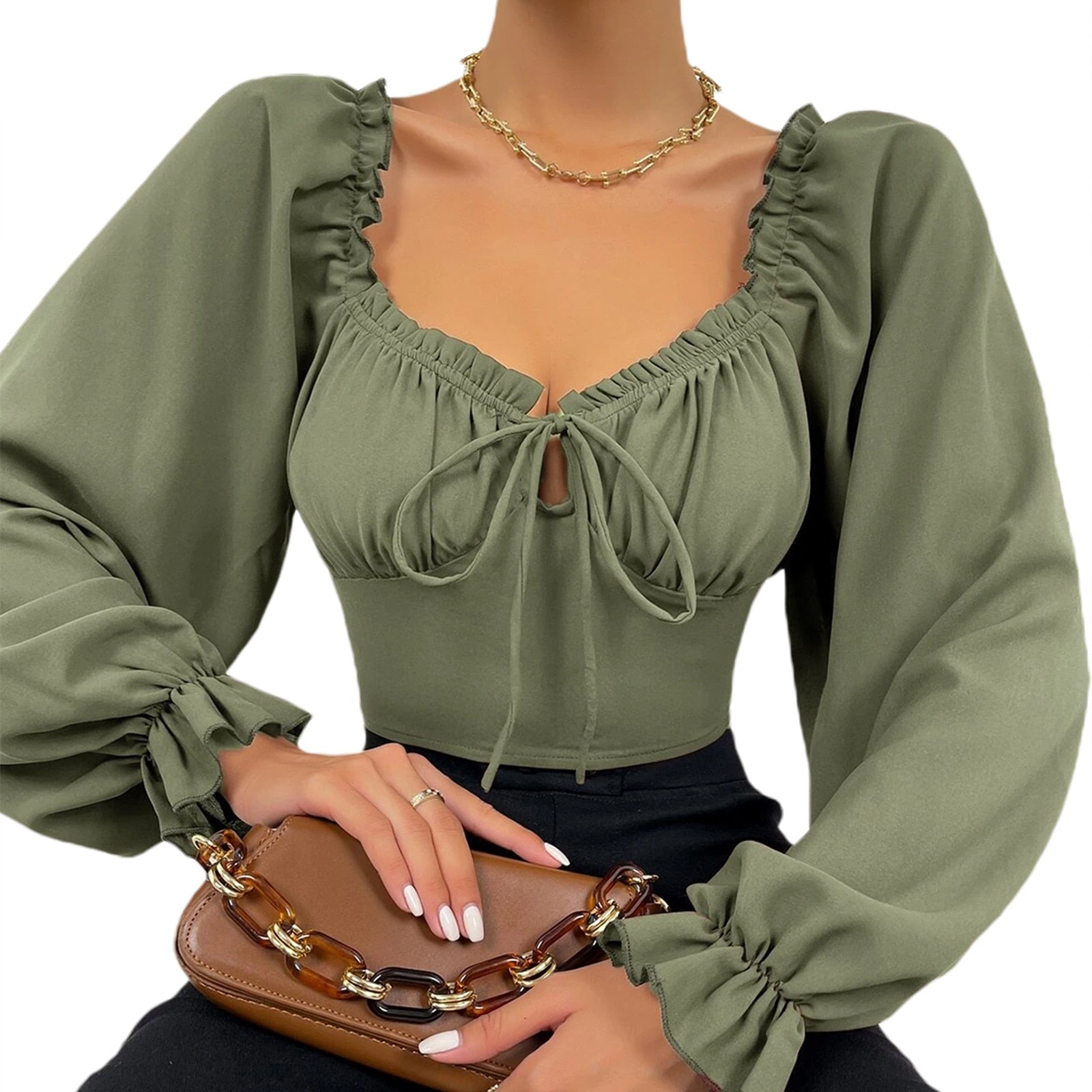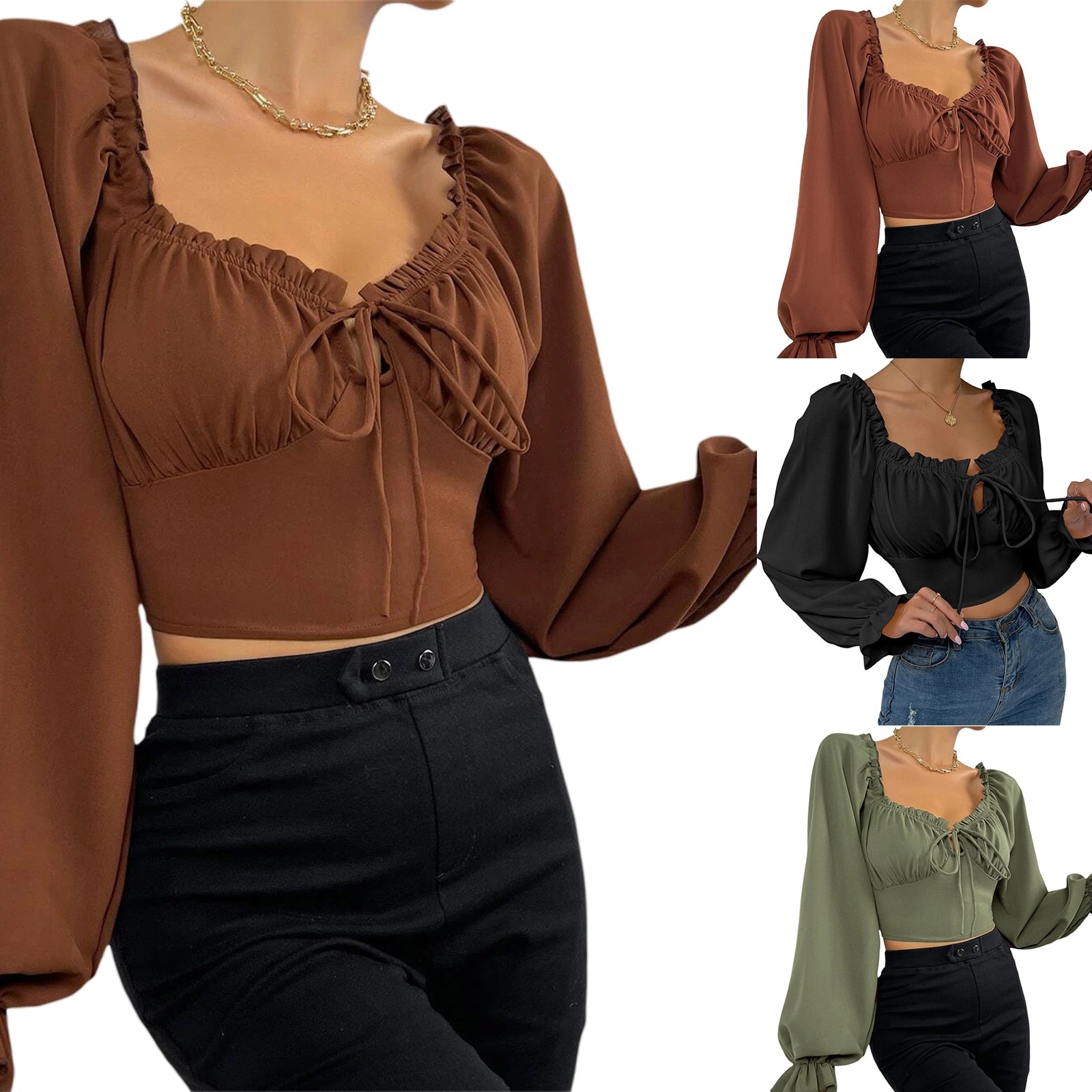 Yipinpay French Chic Blouse Halter Shirts Women Lantern Sleeve Shirt Tops Female Casual Ladies Blouses Autumn&Spring Blusas Dropship