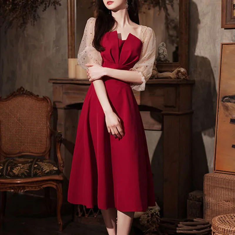 Yipinpay French Elegant Midi Dresses Korean Fashion Evening Party Dress Females Wedding Vintage Sundresses for Women Summer Chic