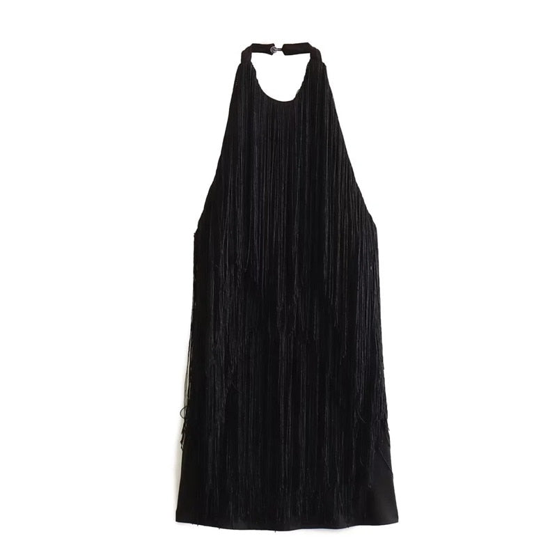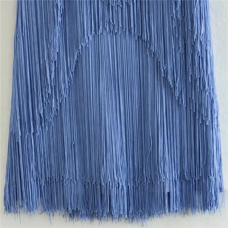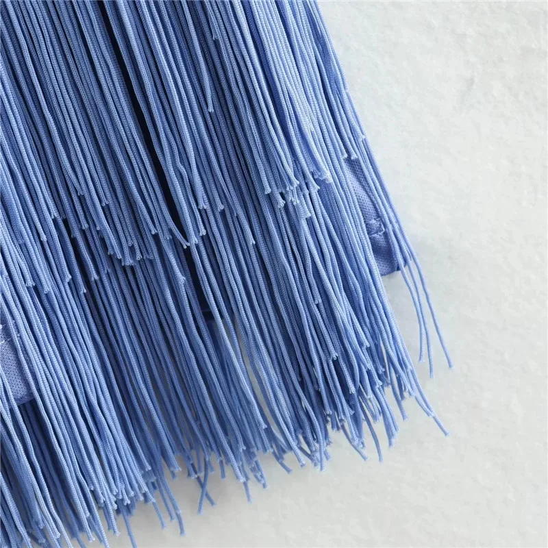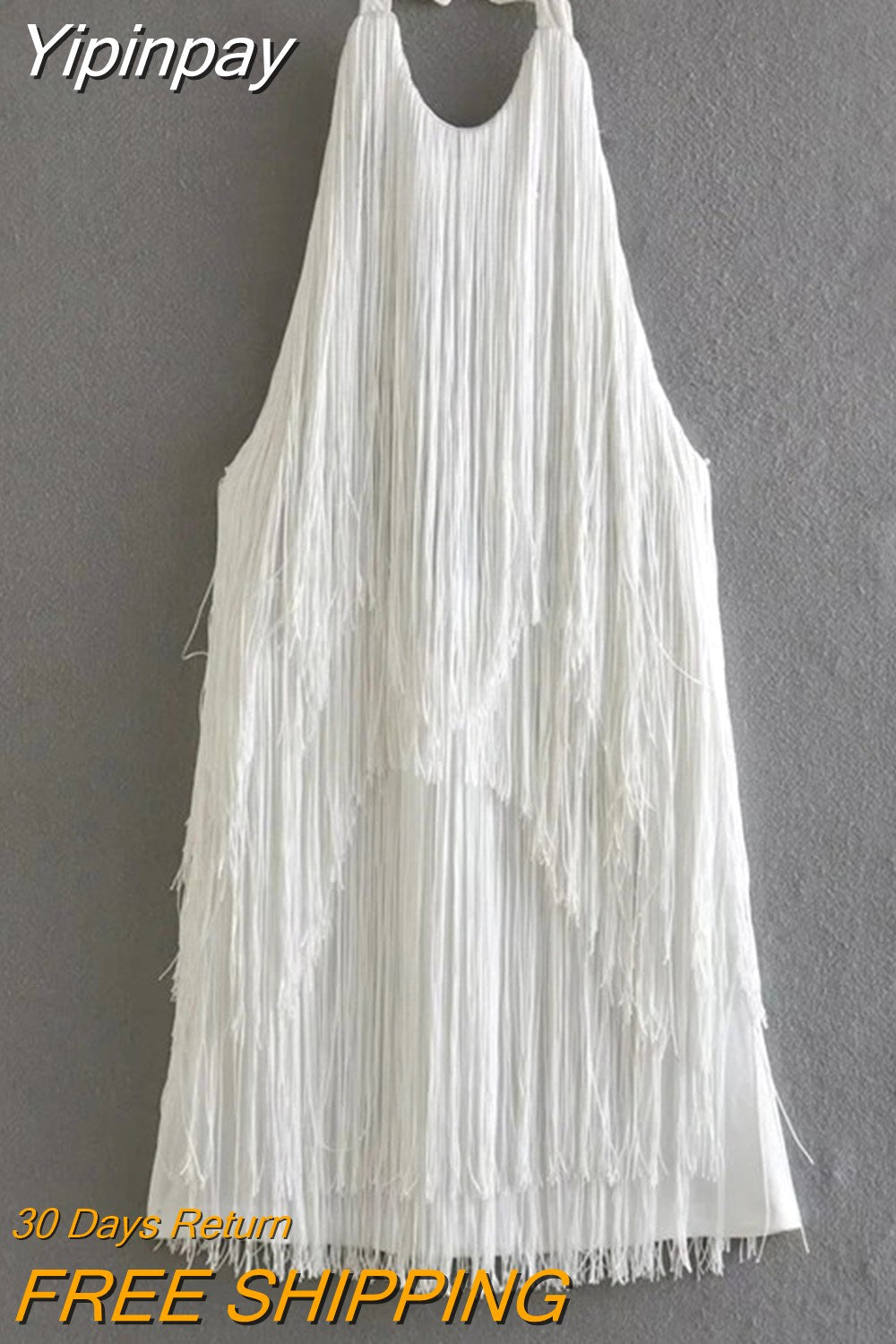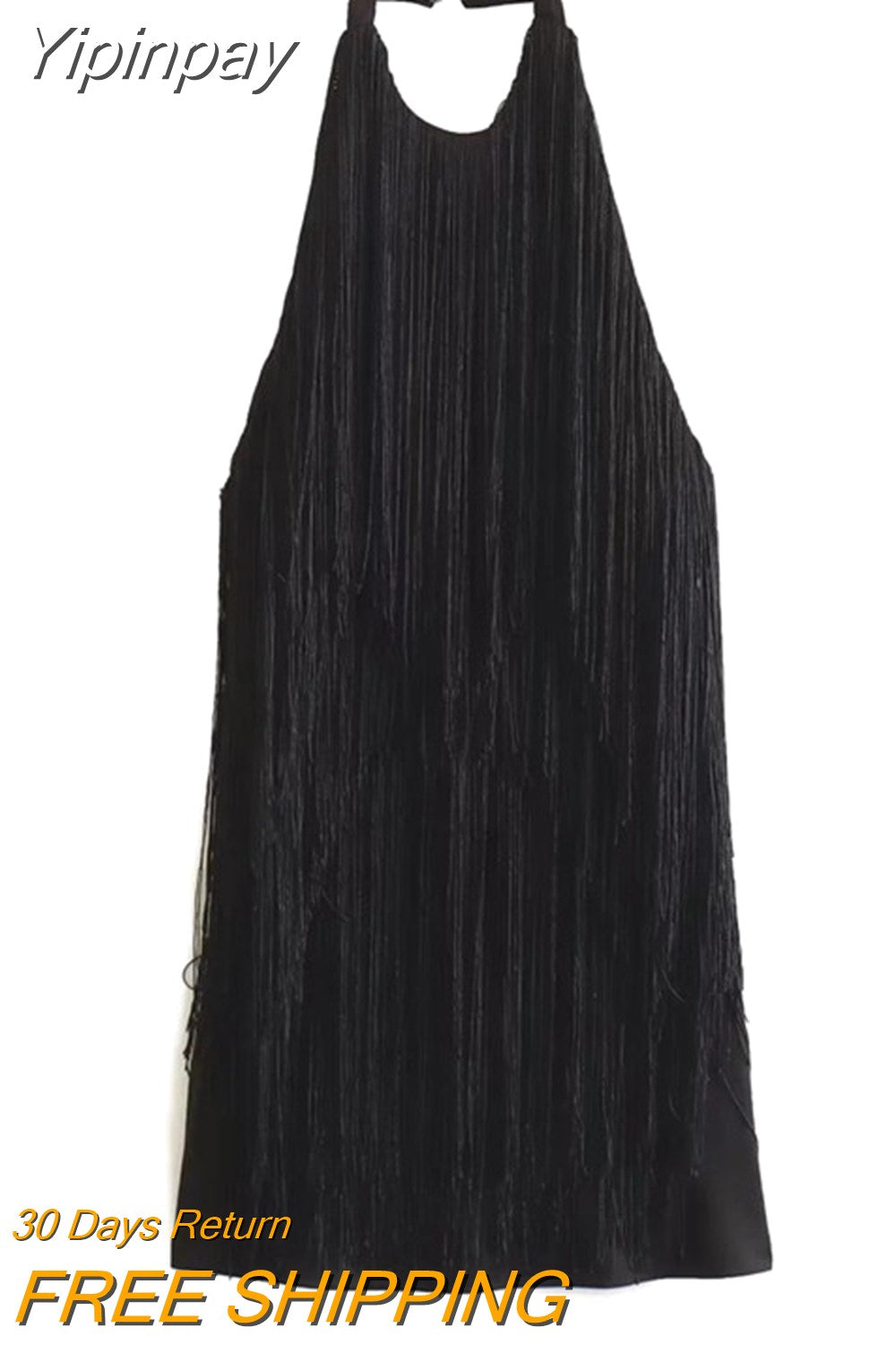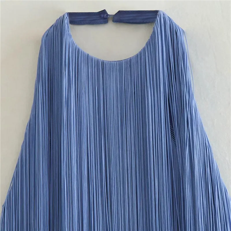 Yipinpay Fringed Halter Short Dresses For Women Blue Backless Mini Dress Woman Sexy Evening Party Dresses For Prom Summer Dress