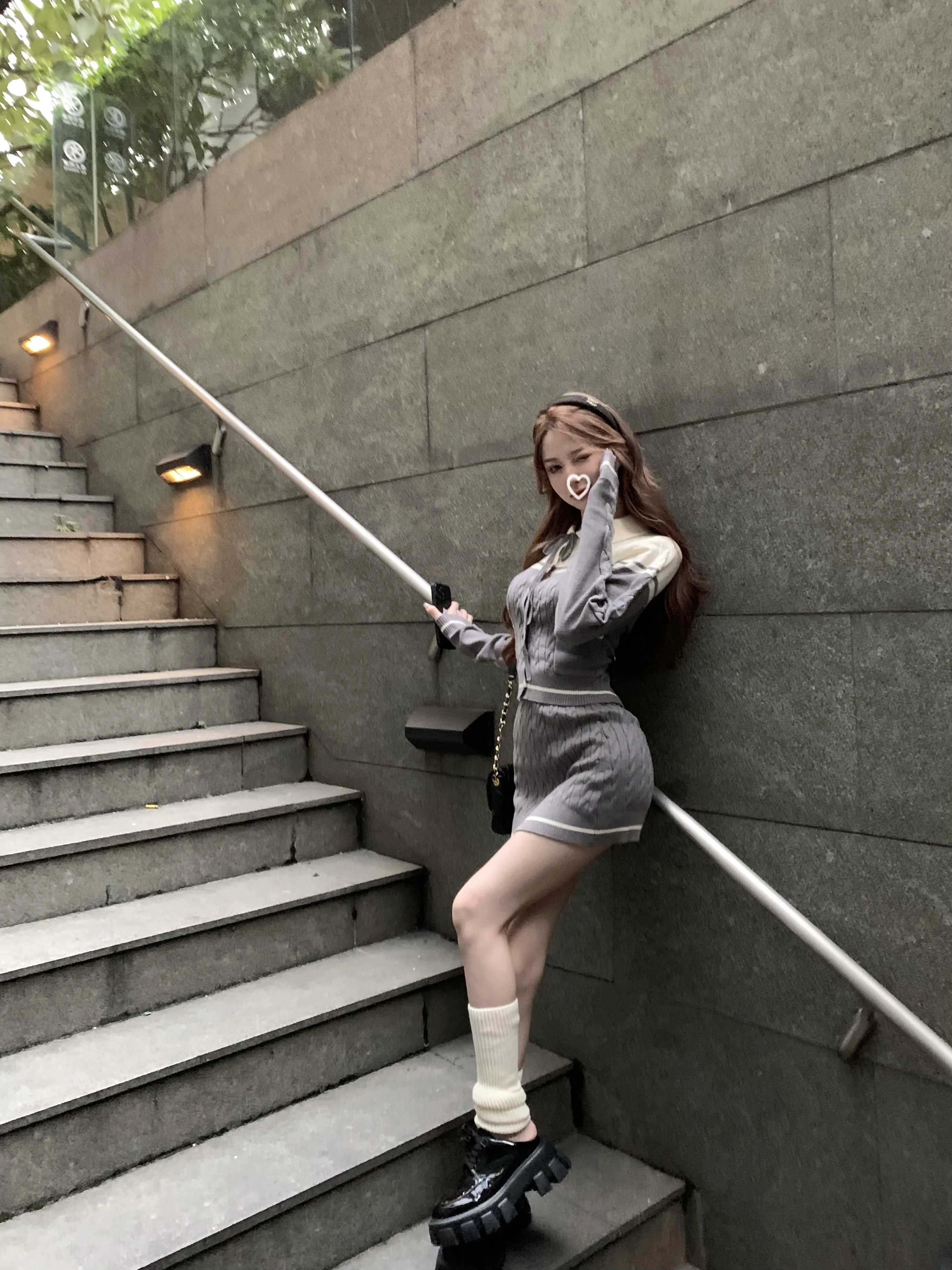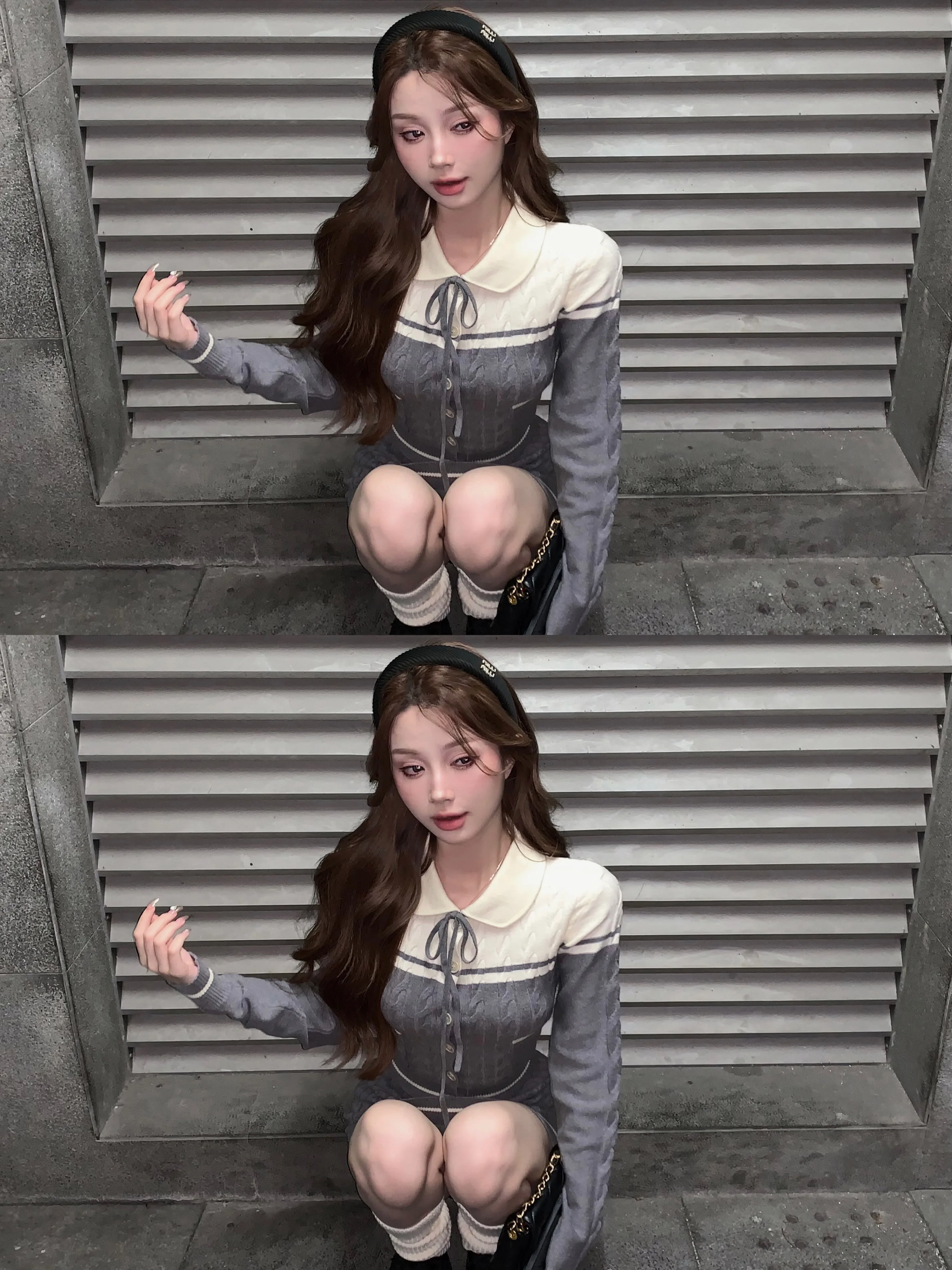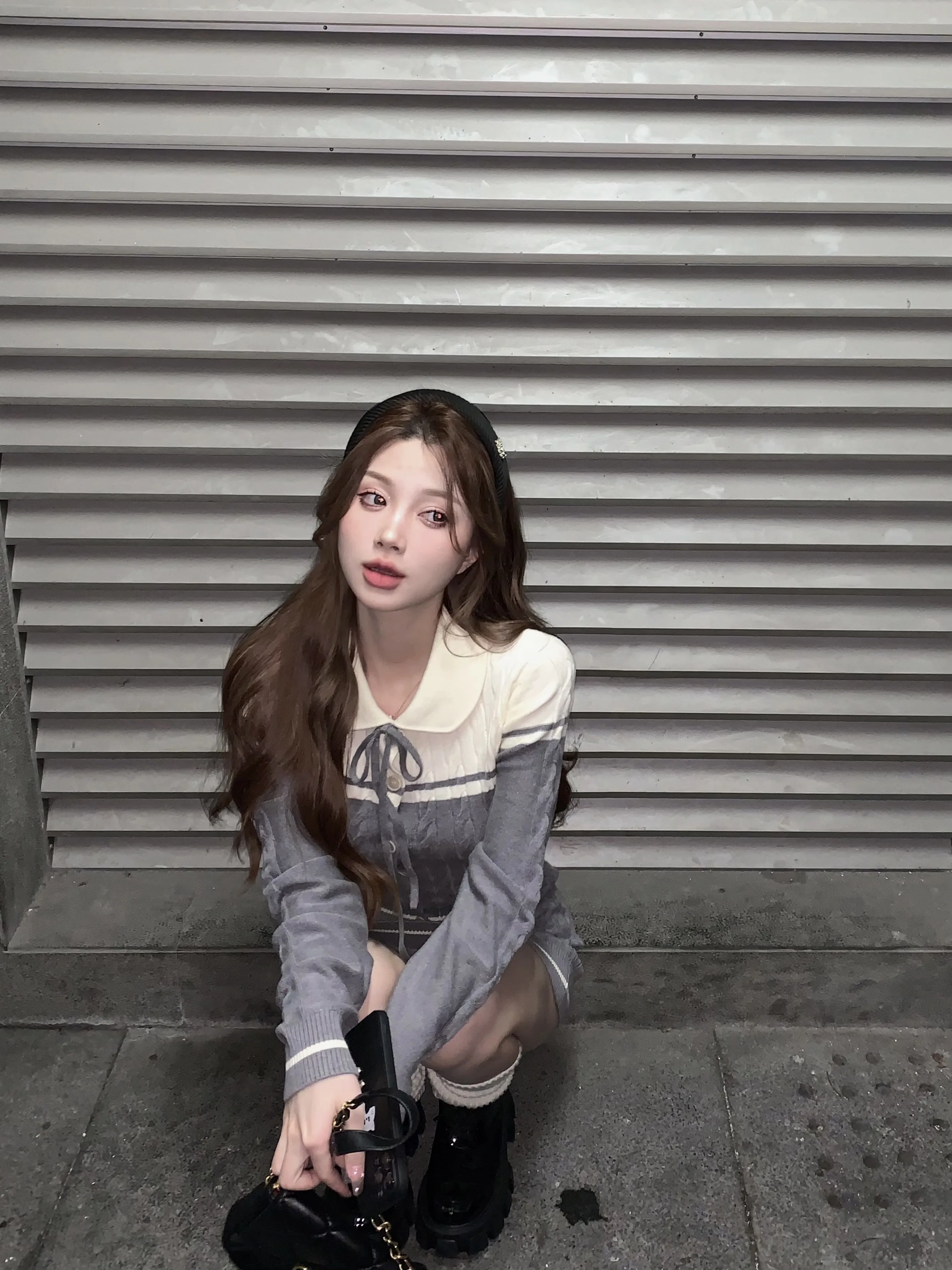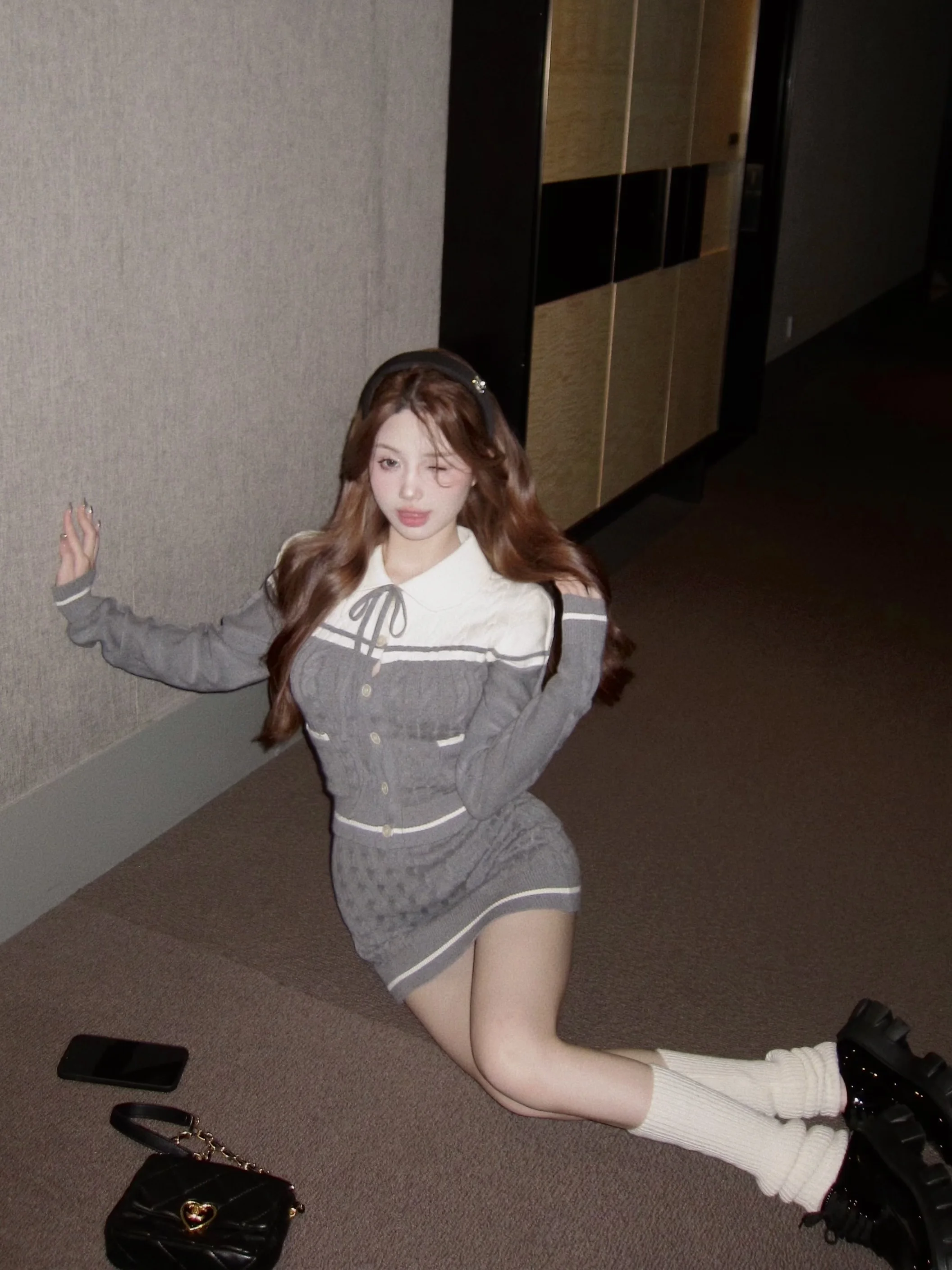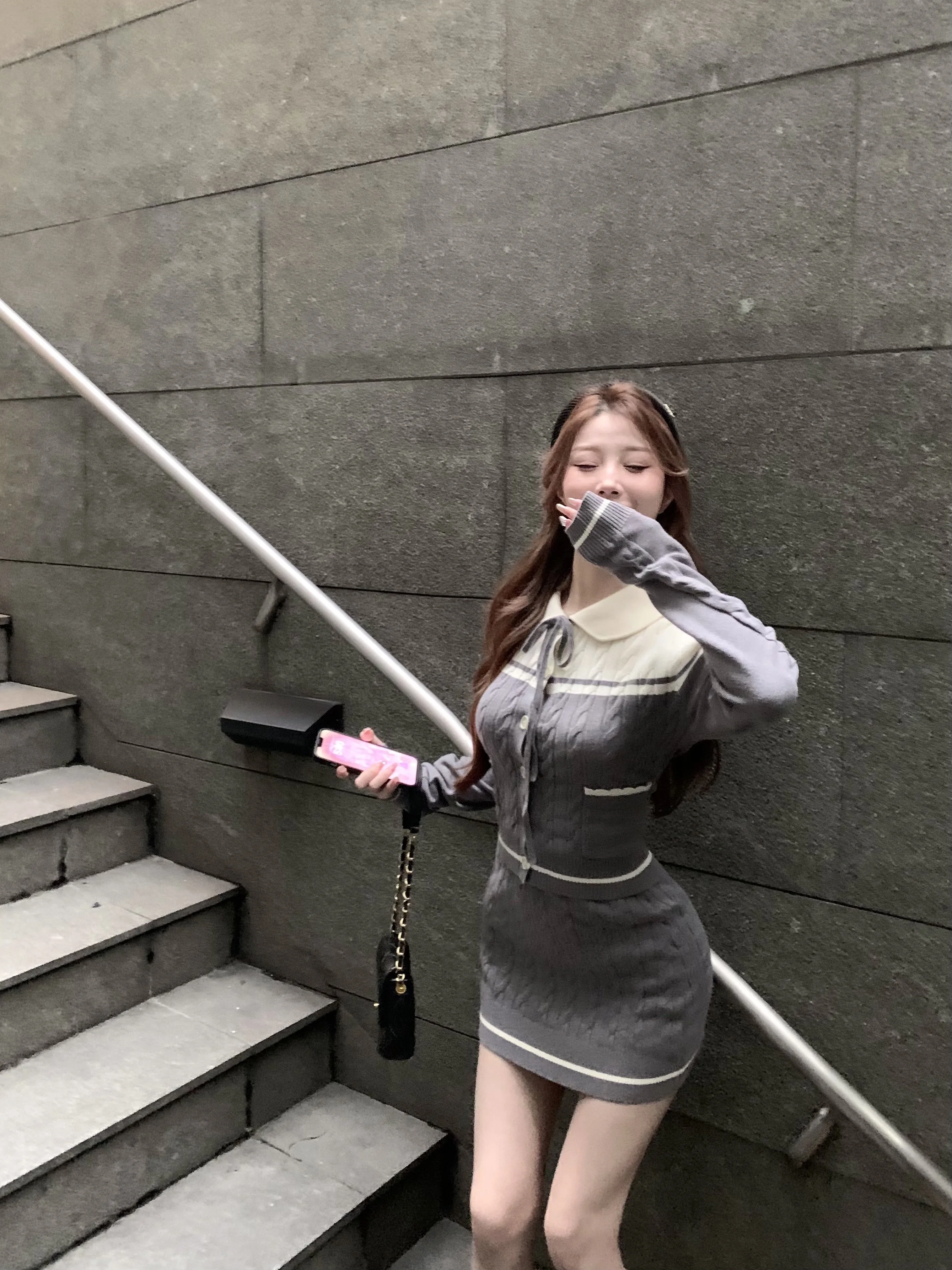 Yipinpay Girl College Style Suit Women's Autumn/Winter Peter Pan Collar Twists Knitted Cardigan Wrap Hip Short Skirt Two-piece Set