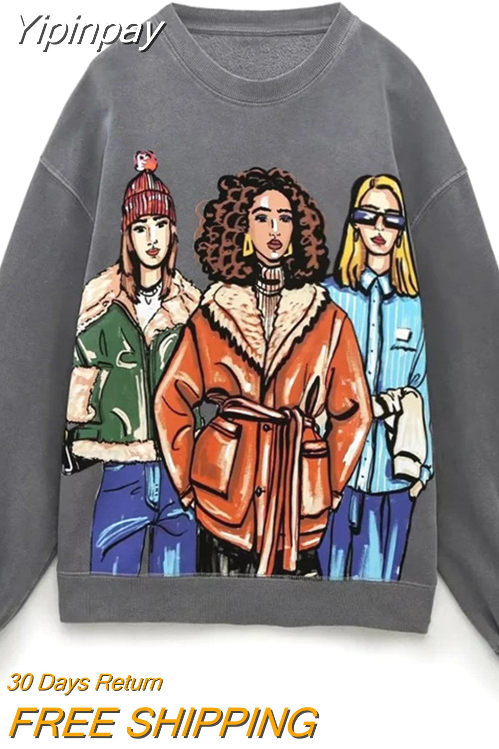 Yipinpay Girls Print Women Sweatshirts Oversize Long Sleeve O Neck Loose Pullovers Streetwear Casual Chic Female Tops Y2K Hoodies