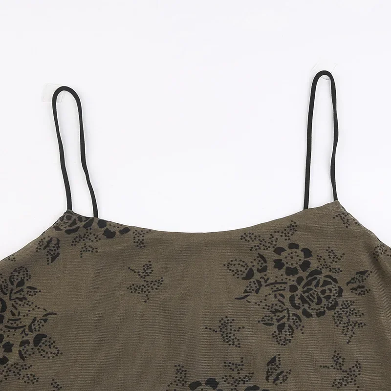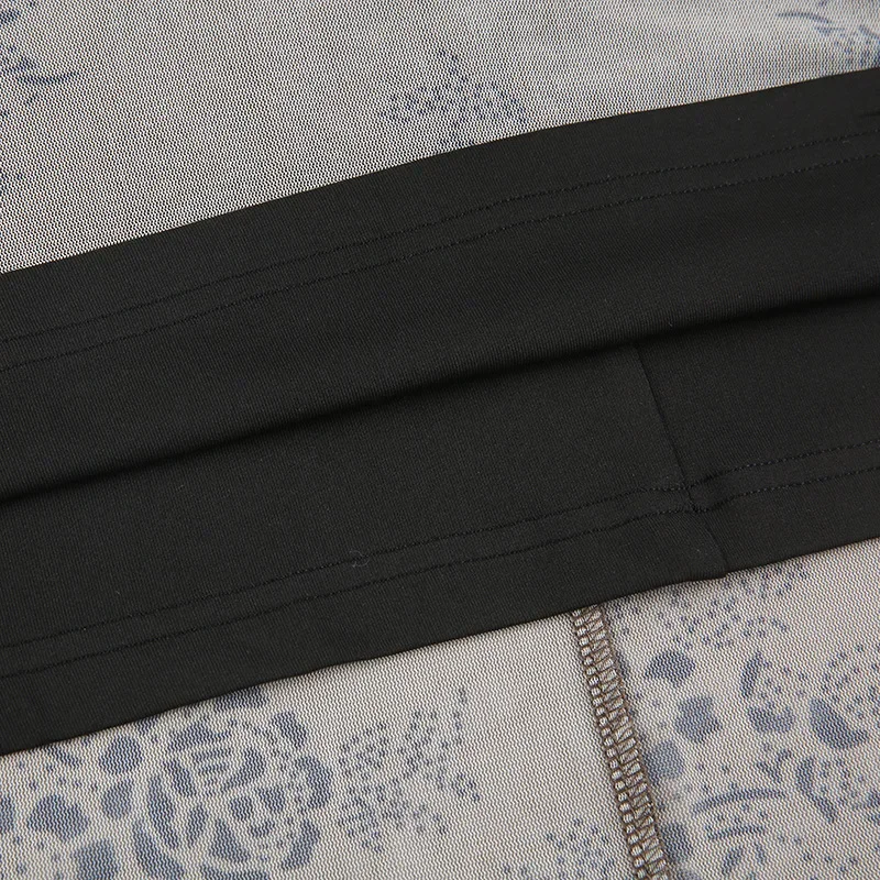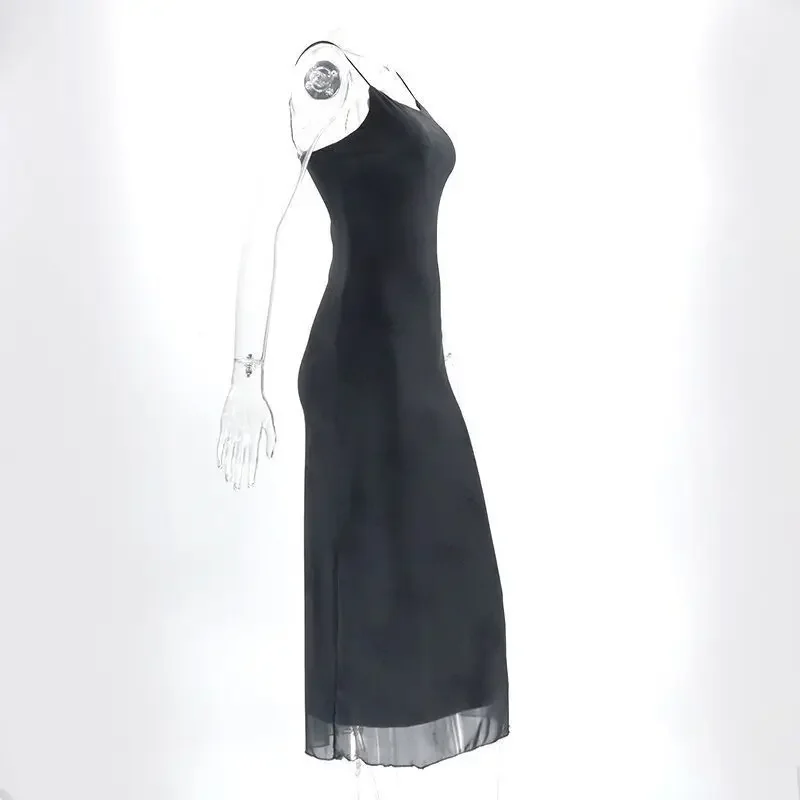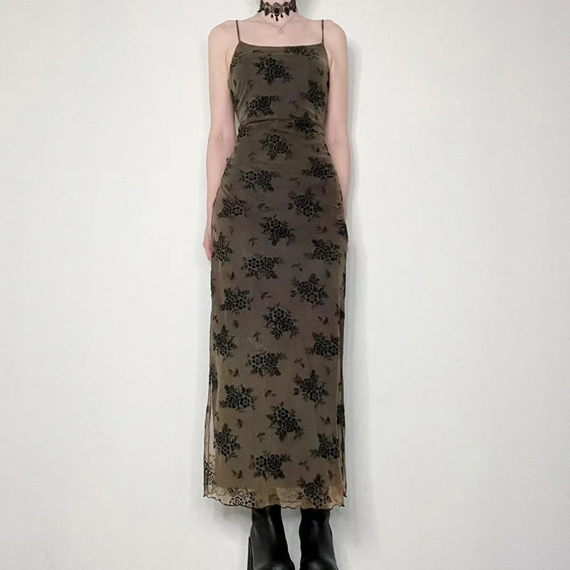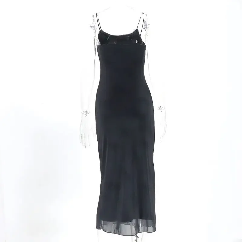 Yipinpay Gothic Black Sexy Dress Women Streetwear Y2k Alt Floral Print Sleeveless Mesh Patchwork Dress Elegant Party Club Dresses