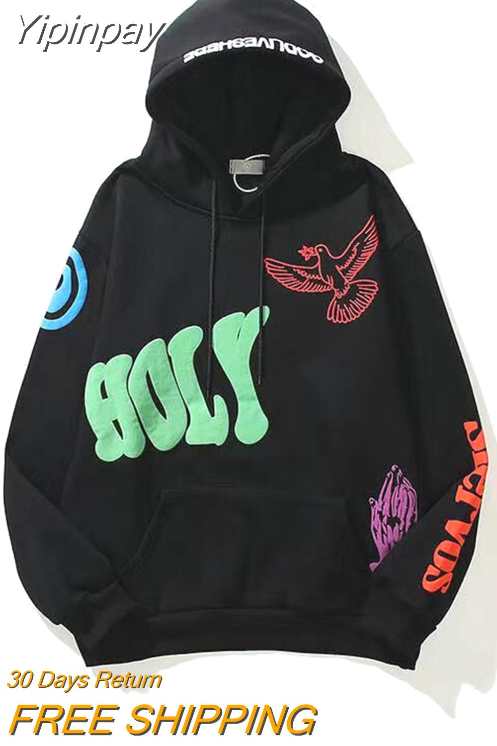 Yipinpay Graffiti Letter Print Hoodies Women Men Casual Loose Hooded Shirt Harajuku Hip Hop Oversized Streetwear Pullover Sweatshirts