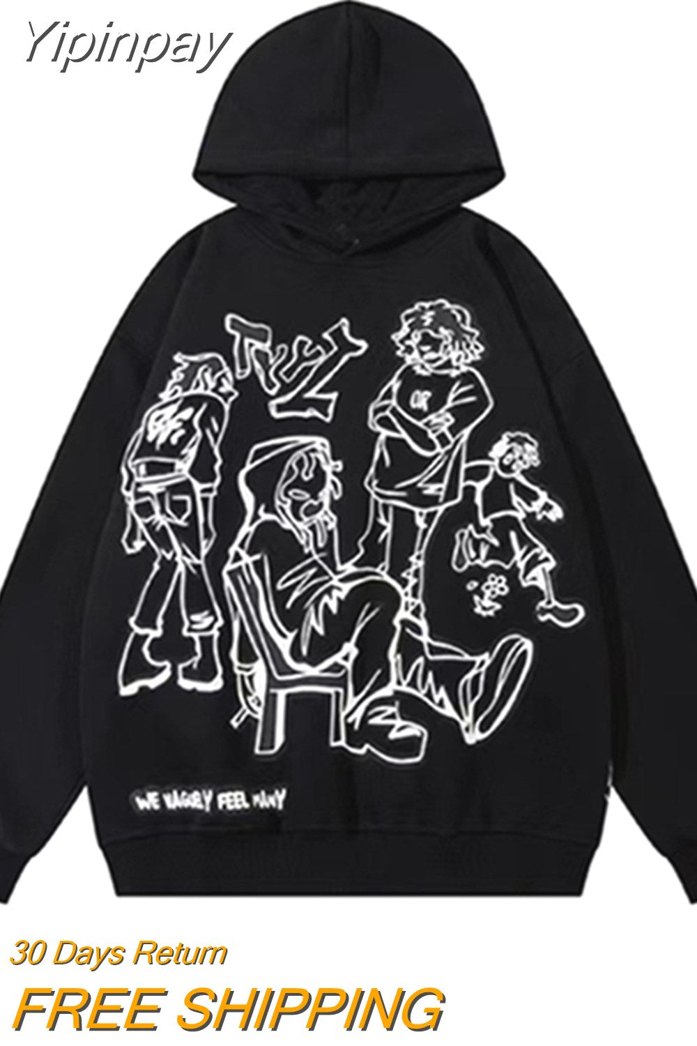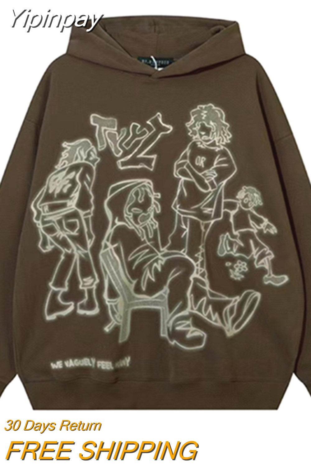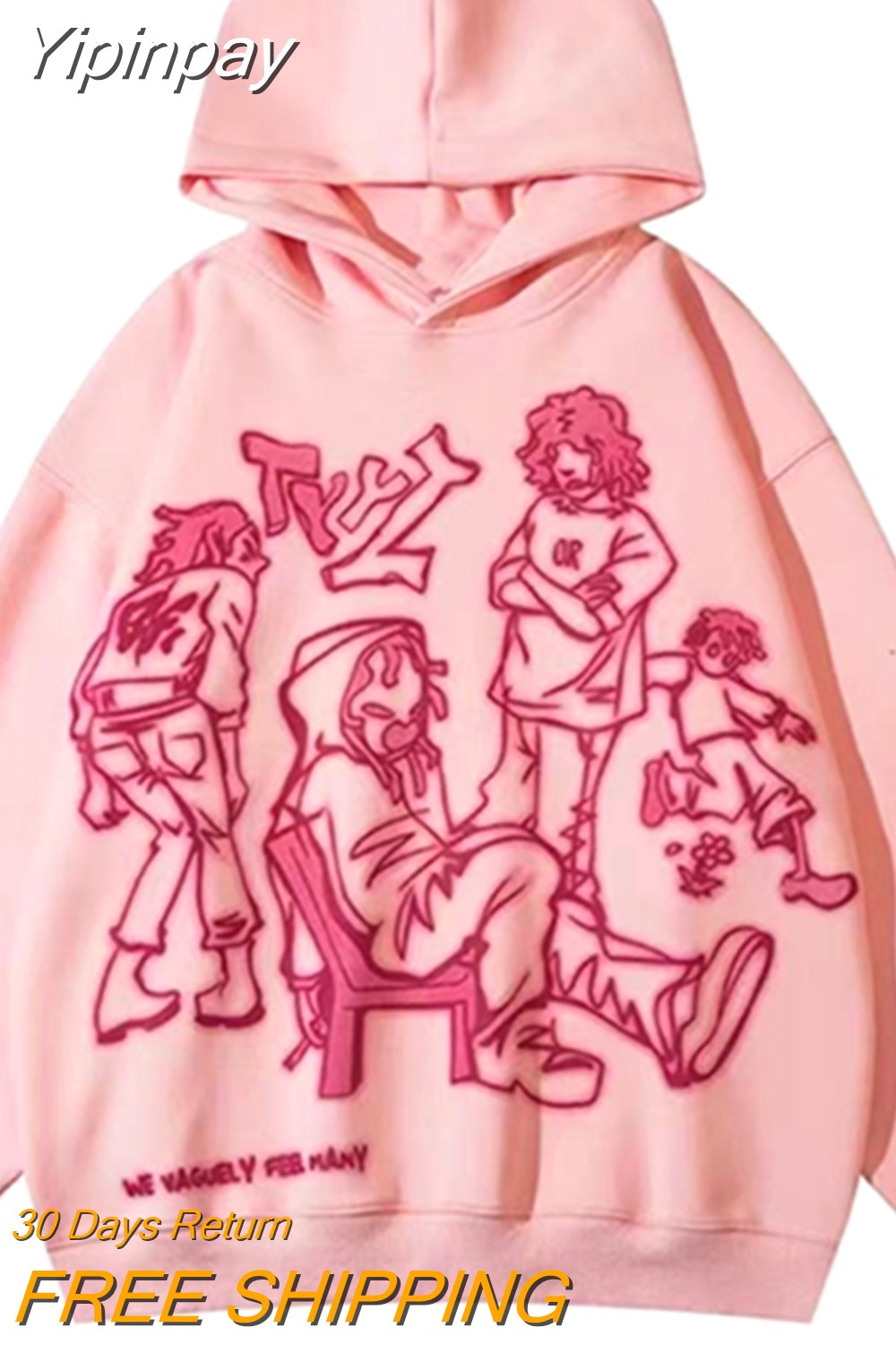Yipinpay Graphic Print Hoodies Women Men Y2K Streetwear Harajuku Long Sleeve Pink Hooded Sweatshirt Vintage Casual Loose Hoodie