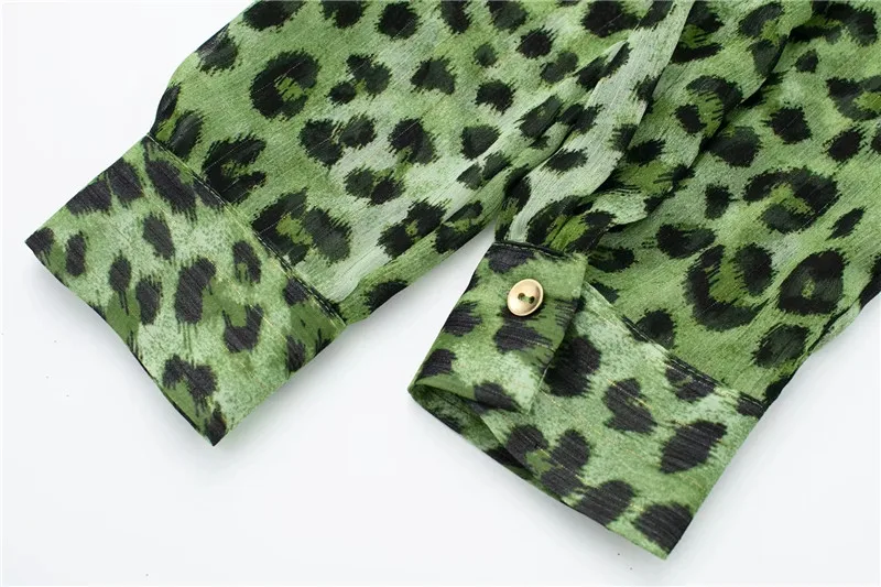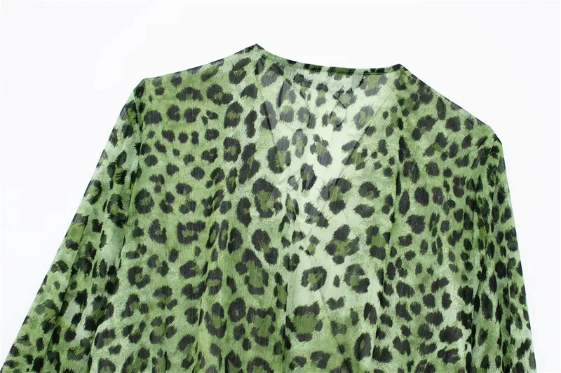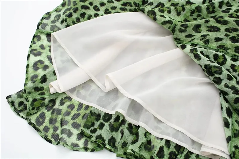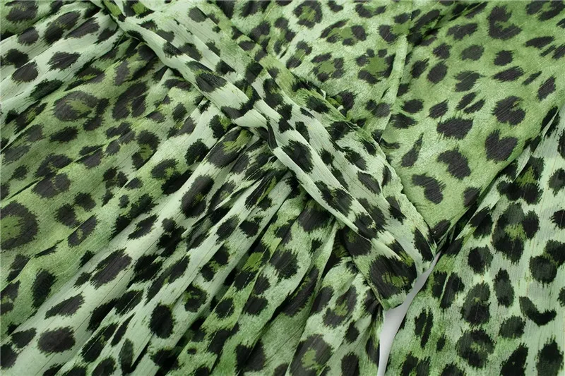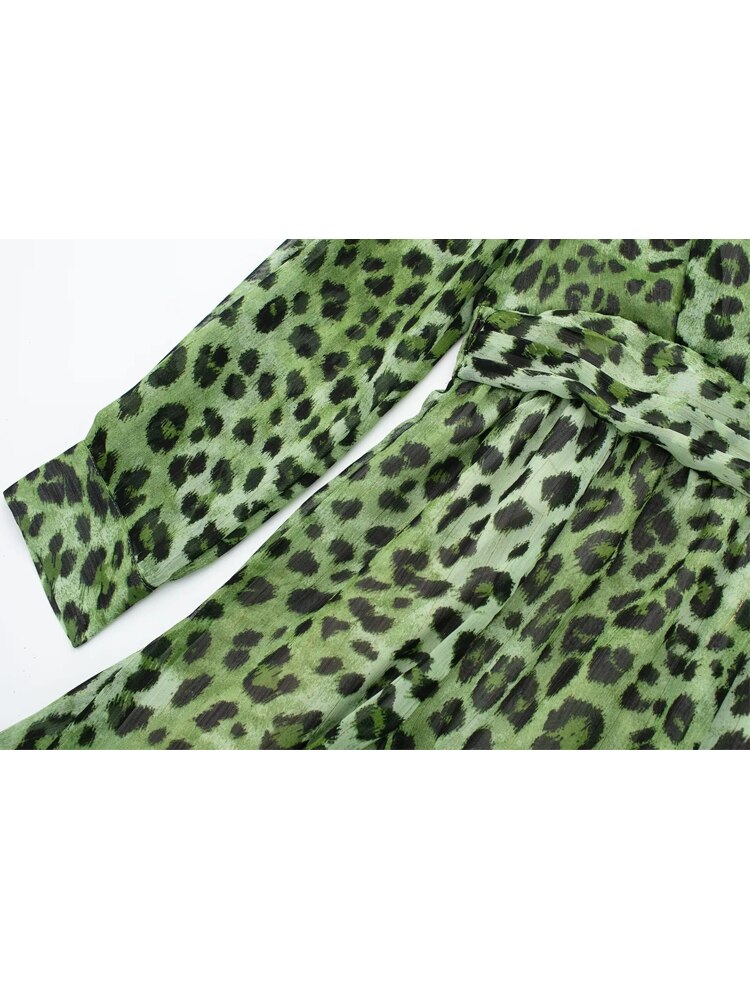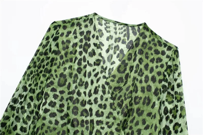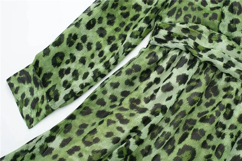 Yipinpay Green Chiffon Dress Woman Leopard Print Vintage Mini Dress Women Long Sleeve Short Dresses 2023 Elegant Chic Women Dresses