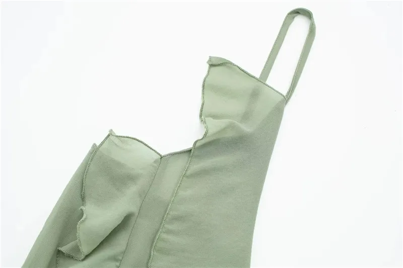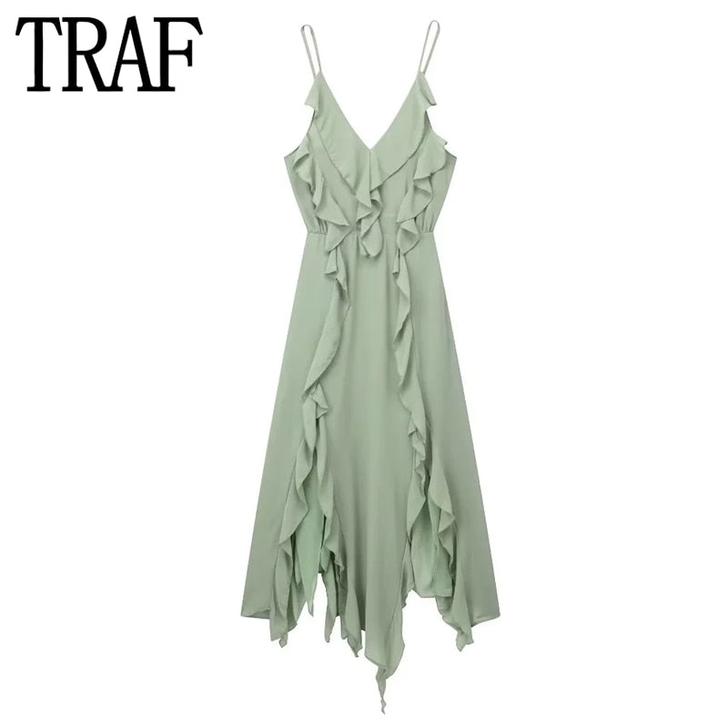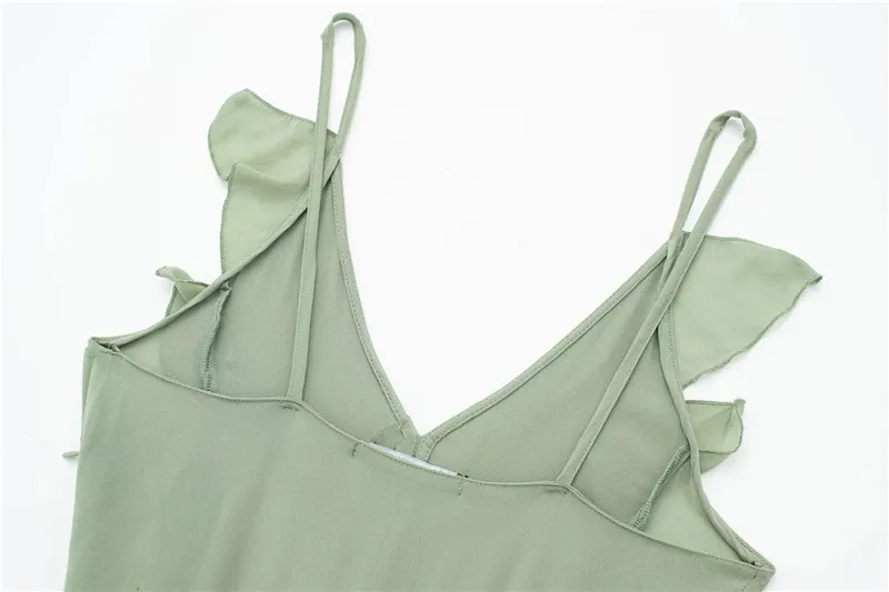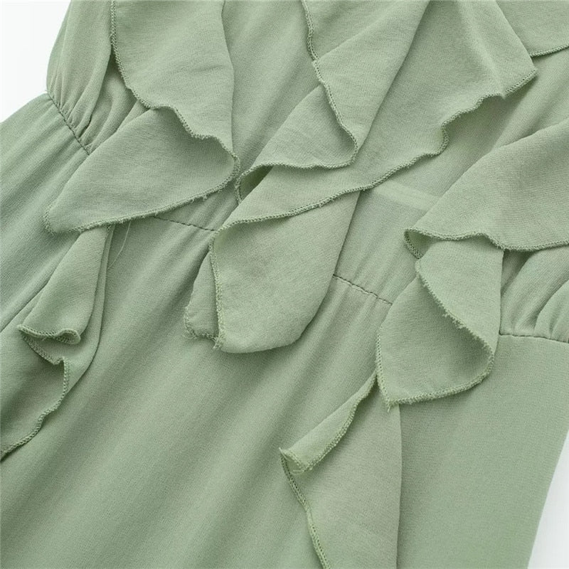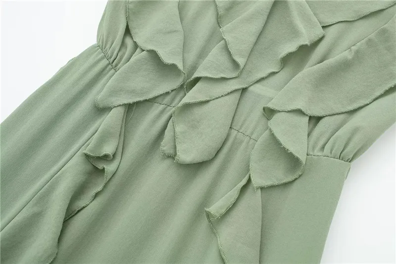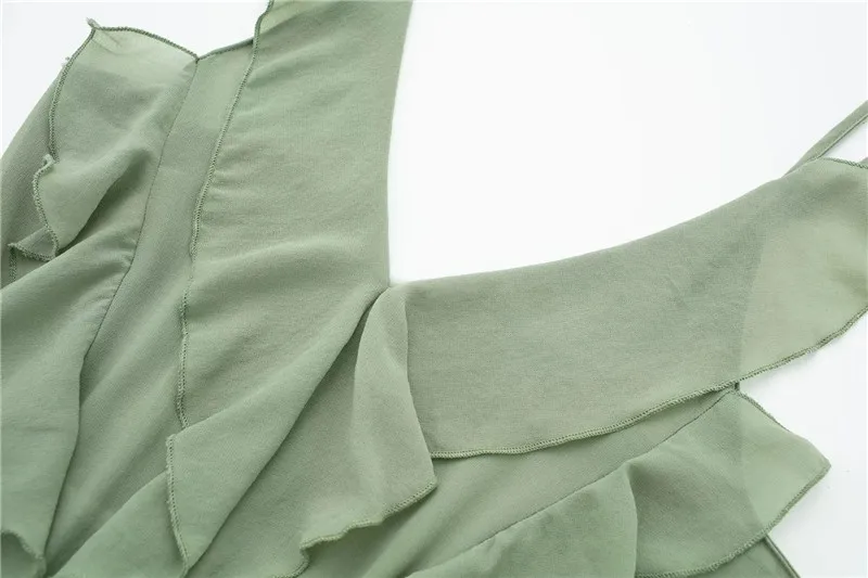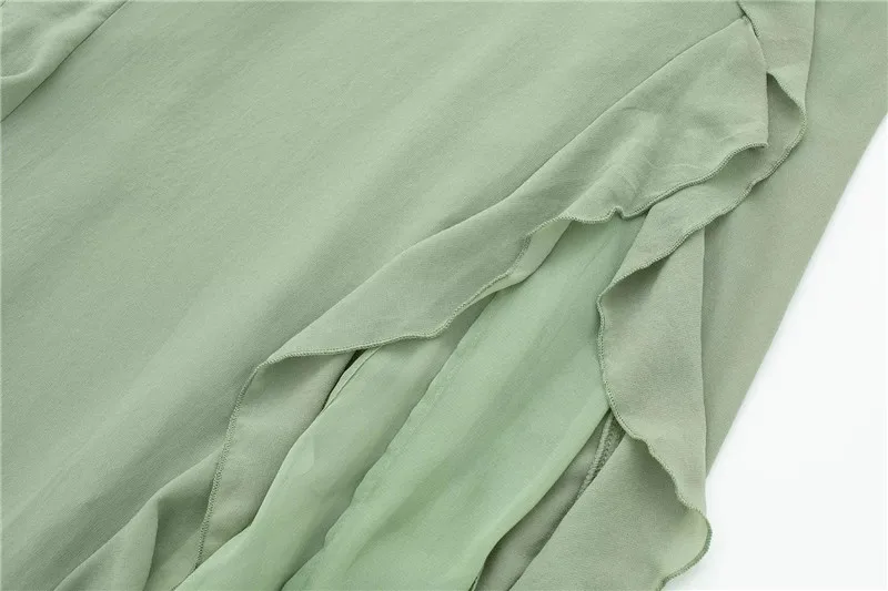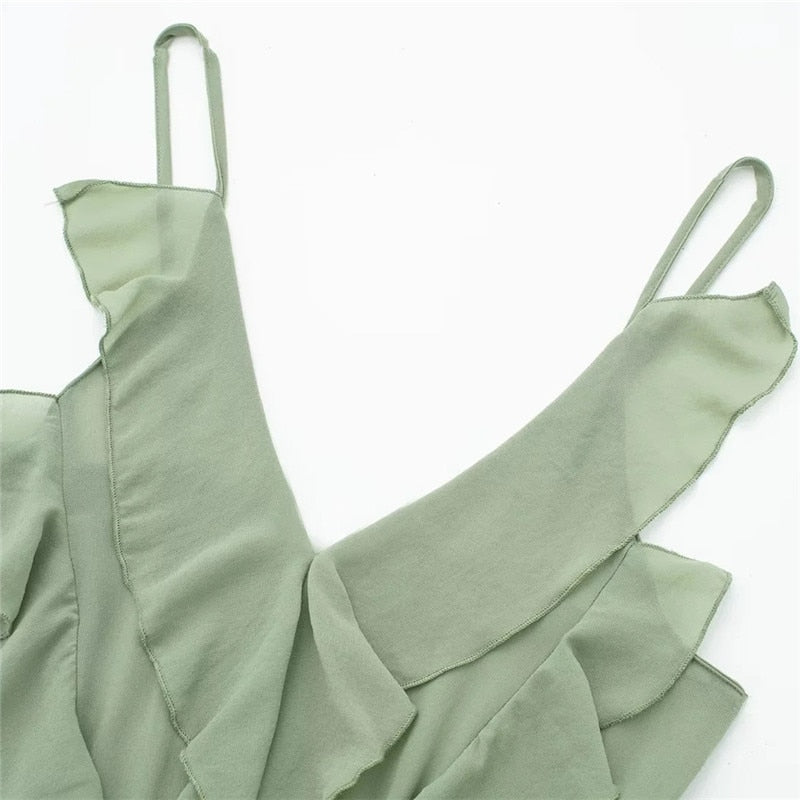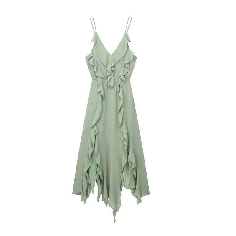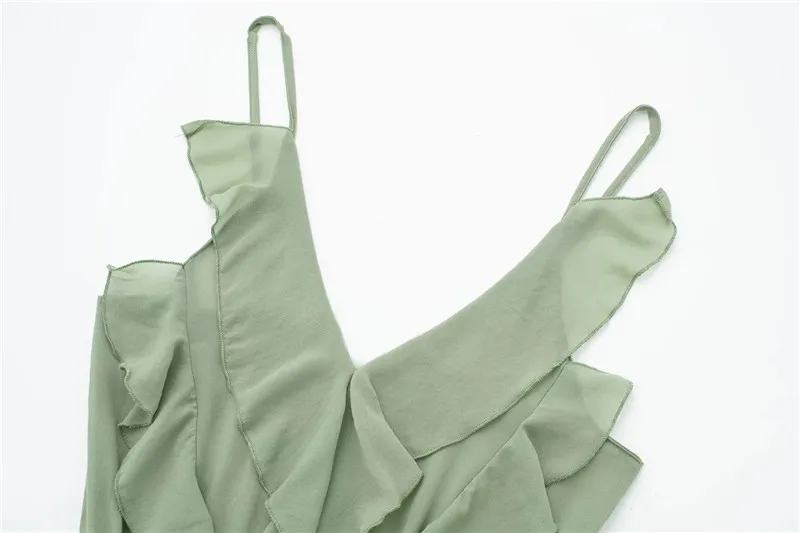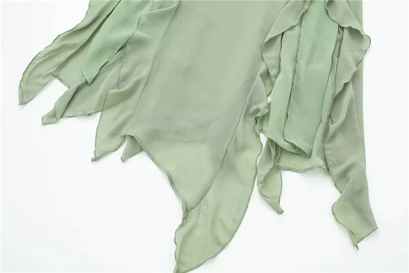 Yipinpay Green Ruffle Dress Woman Chiffon Slip Long Dress Women Asymmetric Backless Sexy Party Dresses Midi Holiday Summer Dresses