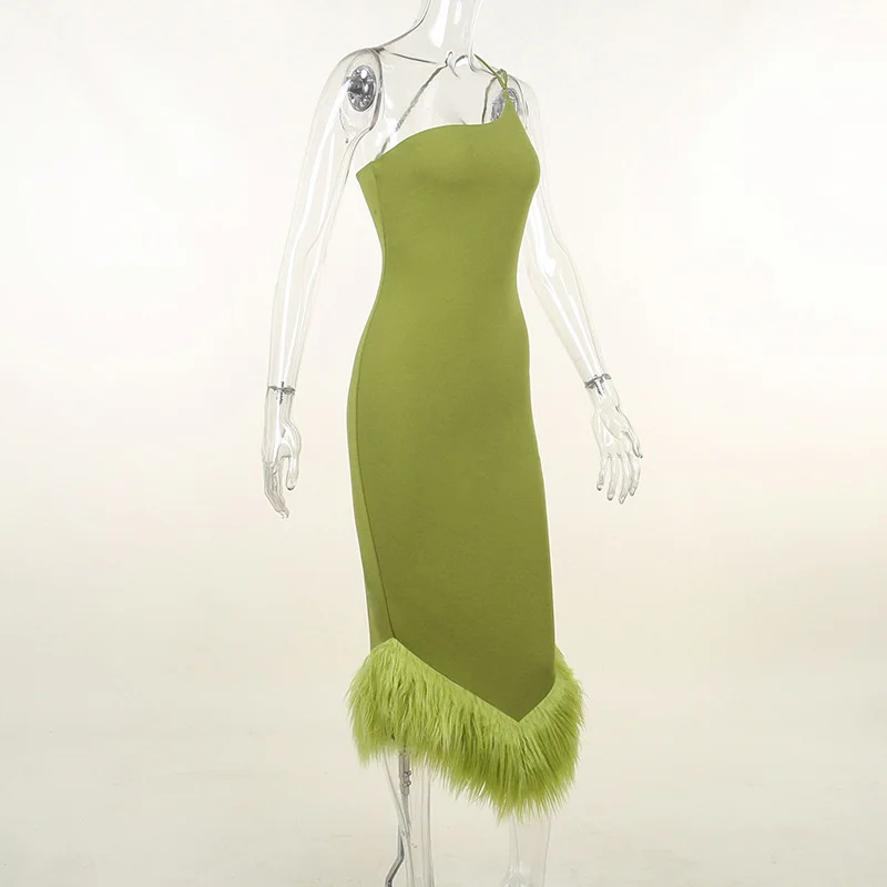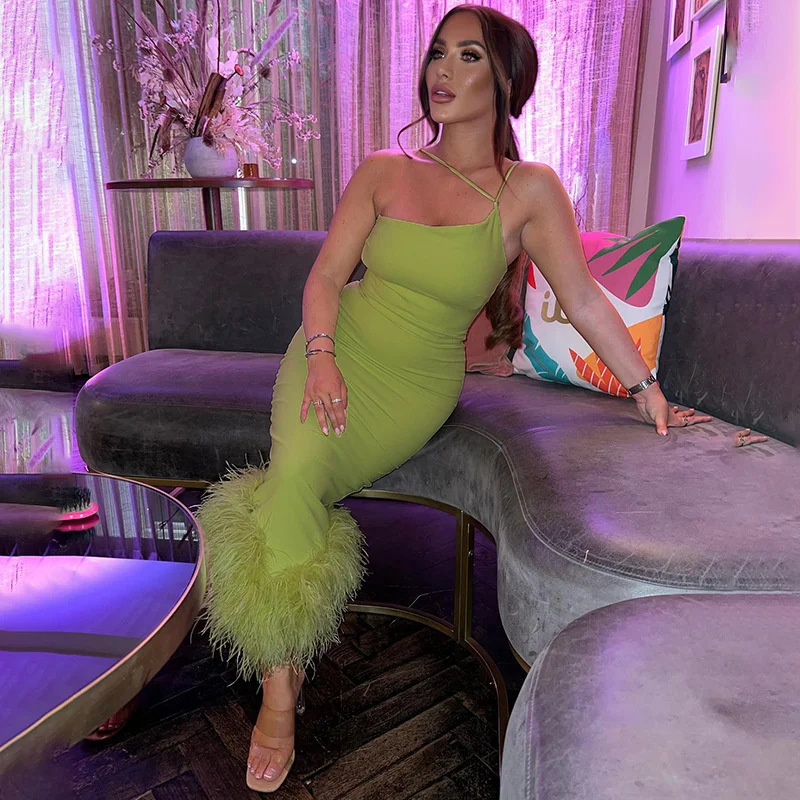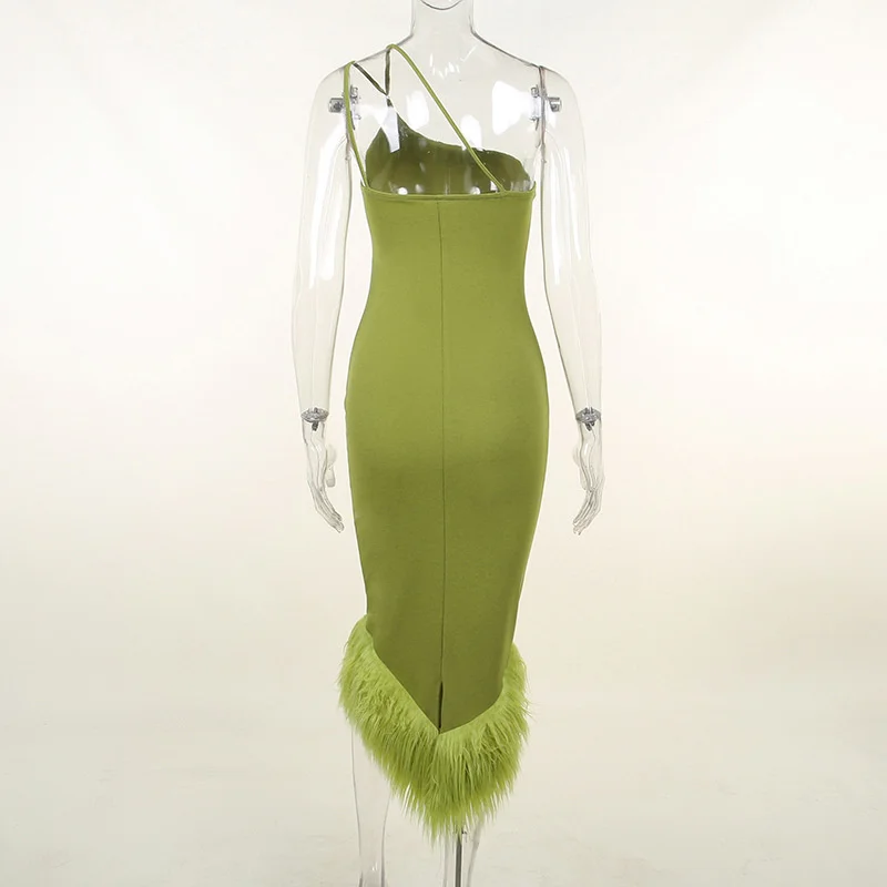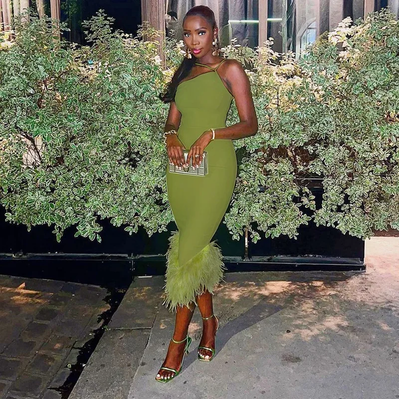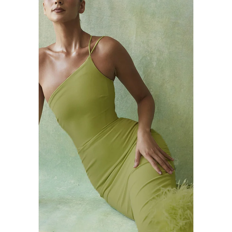 Yipinpay Green Short Cocktail Dresses Crepe Feather One Stripe Shoulder Mermaid dress Backless Prom Homecoming Gowns Dress Clubwear