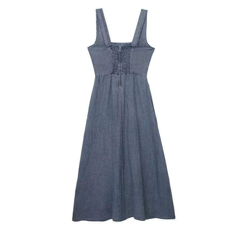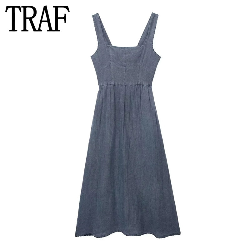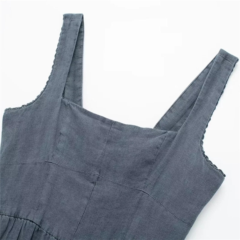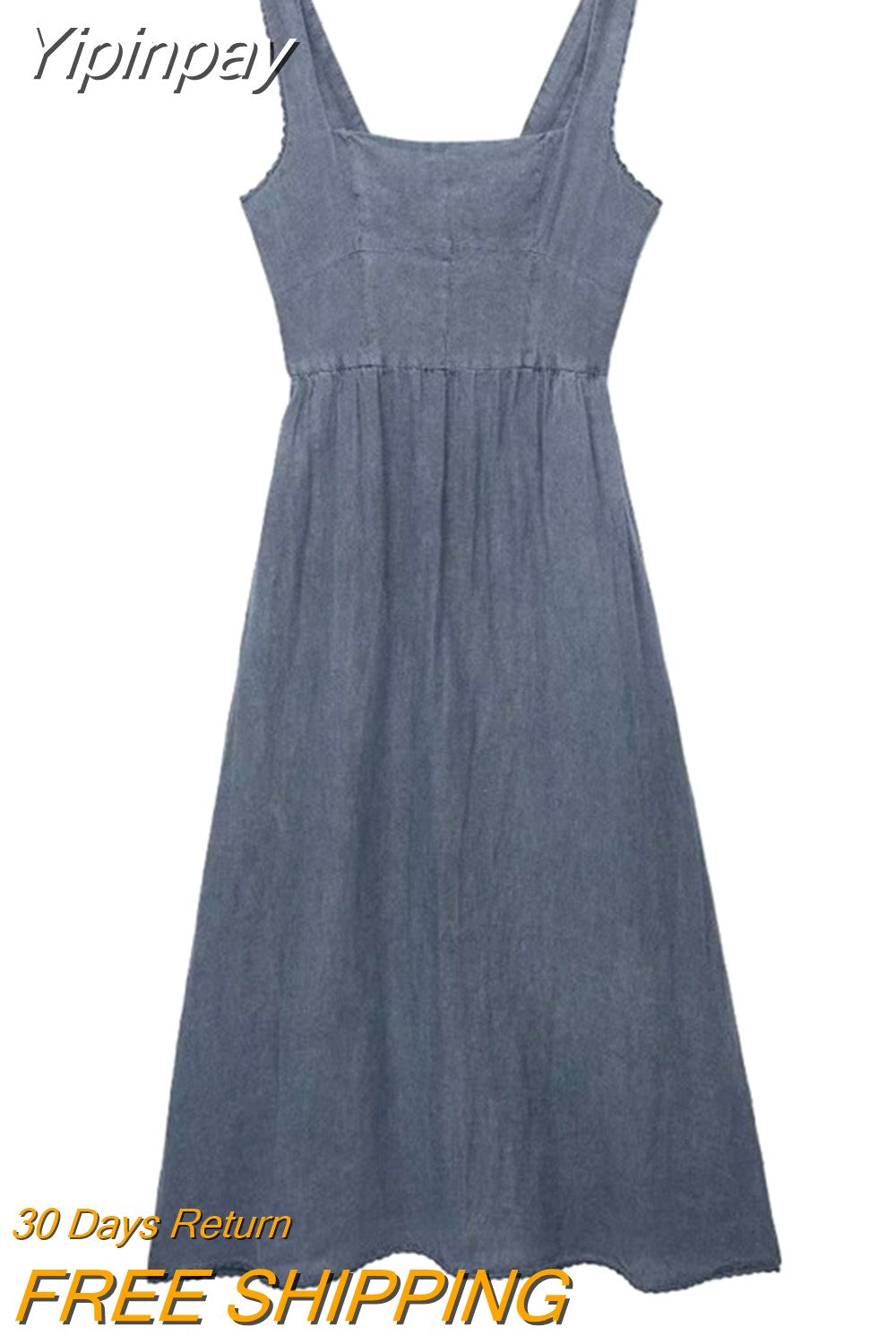 Yipinpay Grey Slip Long Dress Women Straps Midi Summer Dresses Woman 2023 Sleeveless Backless Female Dress Ruched Casual Dresses