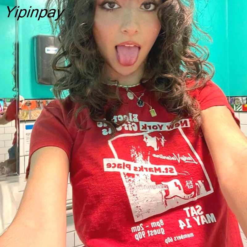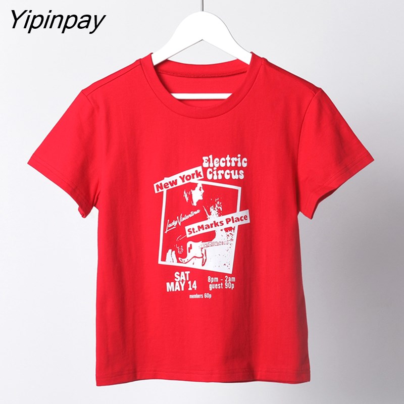 Yipinpay Guitar Graphic Cotton T Shirt Women Summer Harajuku Casual Round Neck Short Sleeve T-shirts Retro Streetwear Y2k Tops